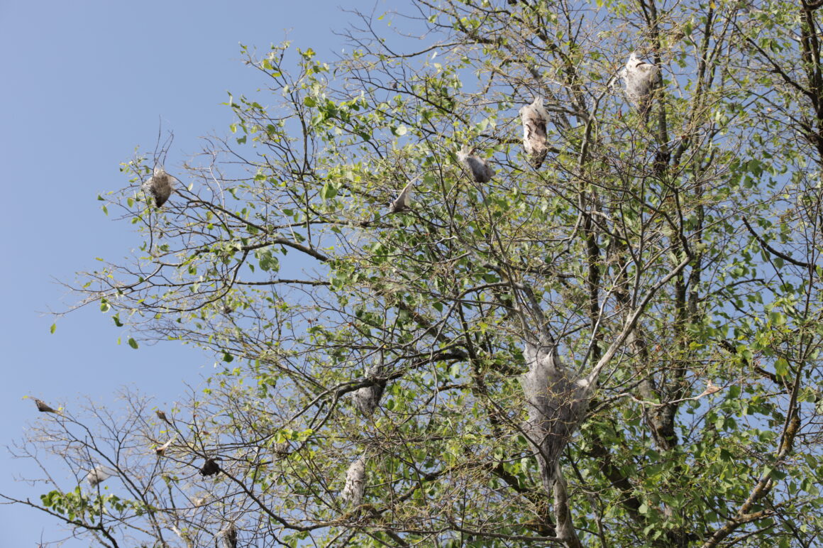 Kelyje Panevėžys – Kupiškis ant šalikelėje augančių lapuočių atsirado lizdų su juose knibždančiais kirminais. I. Stulgaitės-Kriukienės nuotraukos