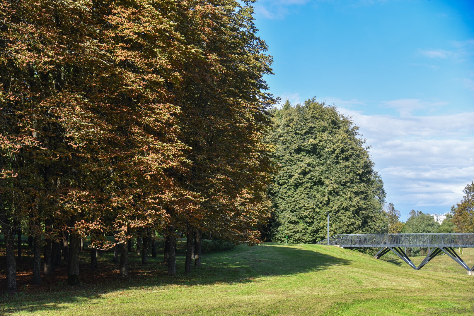 Kenkėjų užpultų ir sveikų medžių spalvų kontrastas ir šį rudenį rėžia akį parkuose. P. Židonio nuotr.