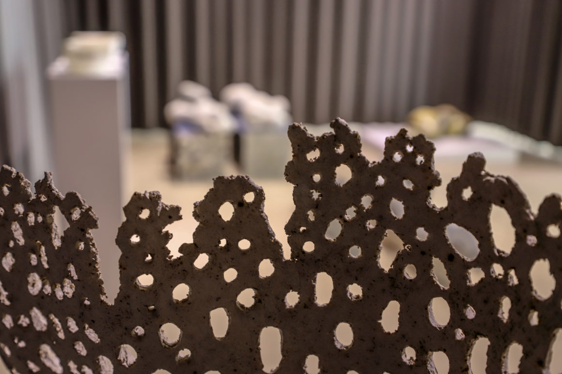 Ir išties, patekęs į mažytę uždarą ne tik sunkiomis užuolaidomis nuo išorinio pasaulio atribotą erdvę, akimirkai pasijunti išnykęs iš miesto šurmulio. Ausis kutenantis vėjo gūsio garsas tik sustiprina jausmą, kad tokia teleportacija įmanoma. Jeigu bent kiek pasiduosime vaizduotei – organiškose kūrinių formose atpažinsime paplūdimyje gulintį poilsiautoją, virš bangų jaukiai besiilsinčius vidurvasario debesis, pajusime akmenėliais ir kriauklytėmis nusėtą pajūrio smėlį. Leisime sau prisiminti, kaip dar būdami vaikais atidžiai apžiūrinėjame, pirštų galiukais čiuopėme jų faktūras, stengdamiesi atrasti kiekvieno jų unikalumą…
