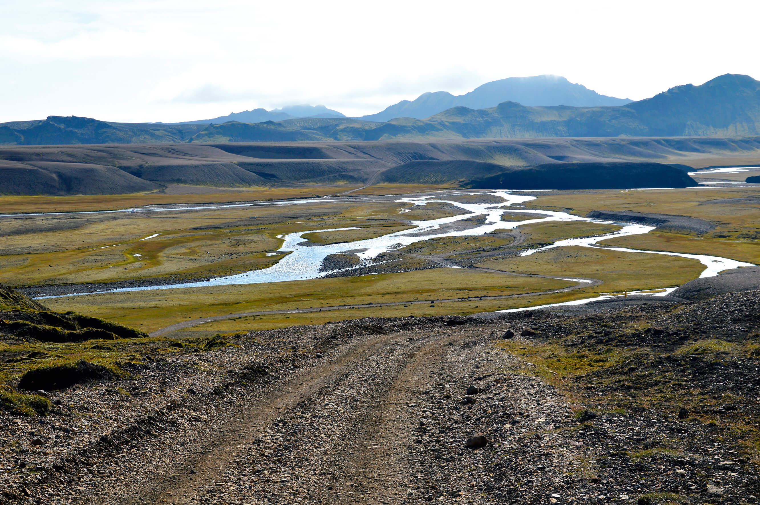 Mintyse pradedu šaipytis iš įspūdžių nuotrupų keliautojų forumuose, kad F210-asis yra klastingas ir kažkam teko pusiaukelėje apsisukti. Tačiau netrukus tenka surimtėti – pasikeičia kraštovaizdis, kelias įgauna ryškesnius kontūrus, ir netrukus suprantu, kad riedu pasroviui upe, kuri kelią pavertė savo vaga. Primena Vaiguvos upę-gatvę Plokščiuose, tik islandiška versija gilesnė, sraunesnė ir ilgesnė.