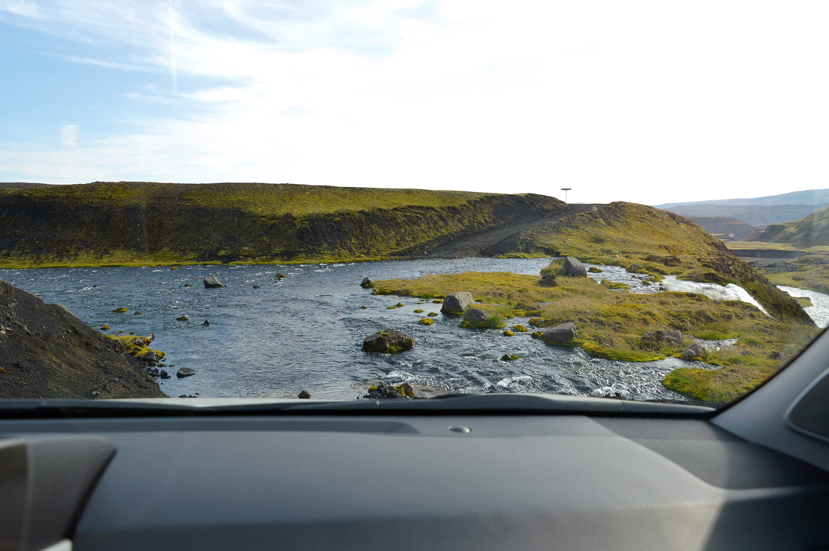 Kirtus kelio vartų liniją, krūtinę kutena malonus virpulys, kad peržengei ribą, už kurios lieka daugelis į Islandiją plūstančių turistų. Supranti, jog ši diena bus išskirtinė, svajoji, kad ji niekada nesibaigtų. Pirmi kilometrai nežada jokių pavojų, ir nors skurdžiuose kitų keliautojų pasakojimuose skaičiau apie dešimtis upių, kurias teks įveikti, pirmos pasitaikiusios kliūtys atrodo juokingos – „Toyota“ be vargo perbrenda siaurius upelius.