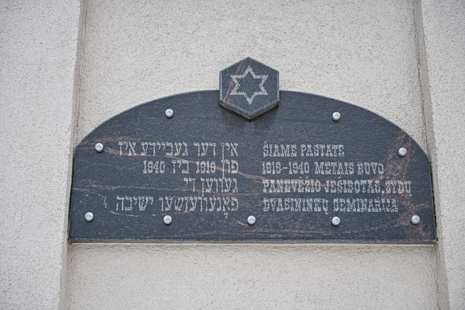 2000 metais ant pastato sienos atidengta atminimo lenta Panevėžio ješivai.
