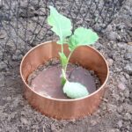 Atkirpkite reikiamo dydžio vario juostos atraižą, sujunkite į žiedą aplink augalą ir įspauskite į žemę. Būtinai patikrinkite, ar augalo lapai nesiekia dirvos paviršiaus. Jei taip, pakelkite juos ir pririškite ar kitaip pritvirtinkite prie stiebo.