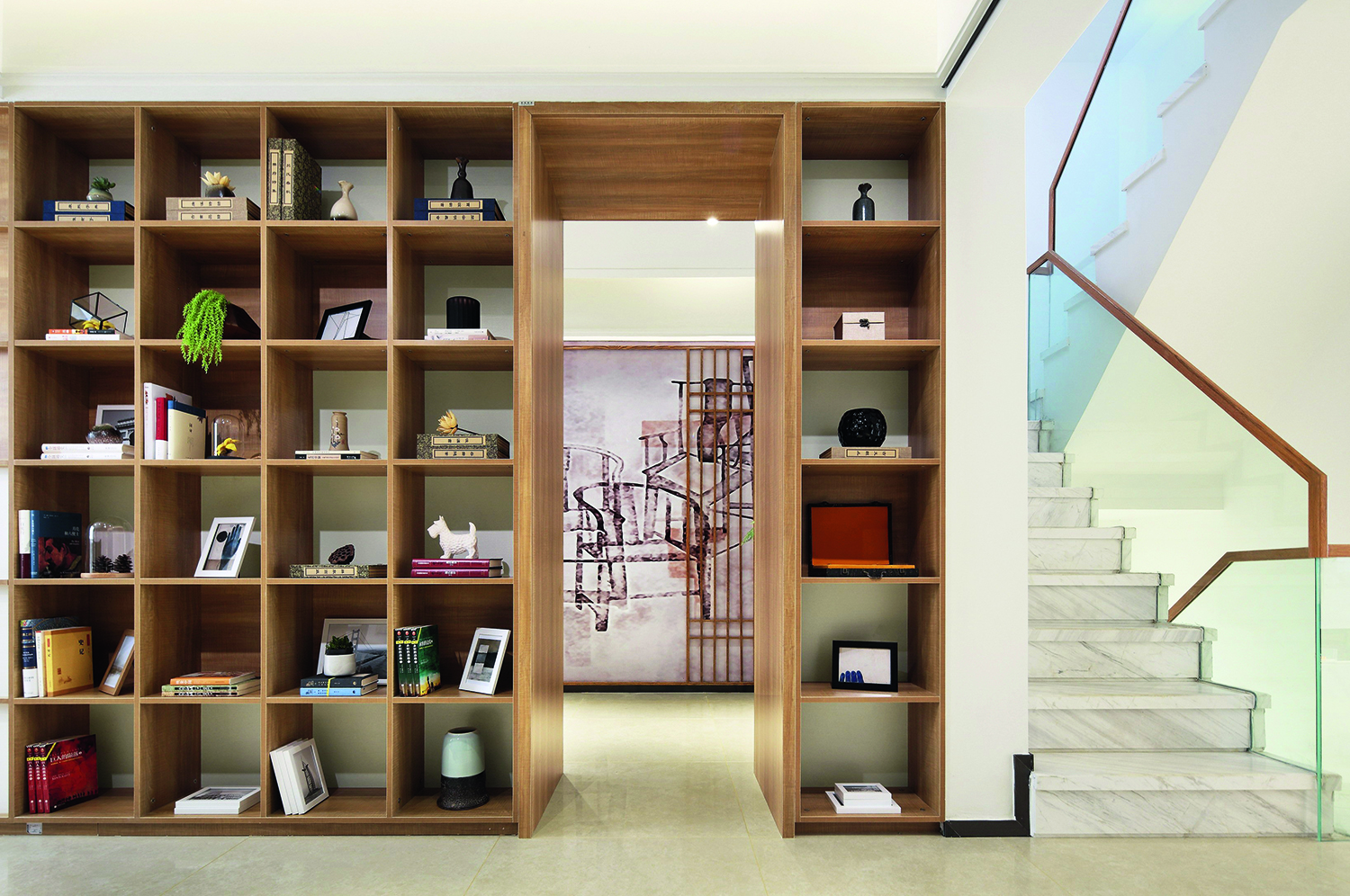 • Daugiafunkcės bibliotekos. Derinti knygas su meno kūriniais ir dekoratyviomis, kartais net buities detalėmis? Gali skambėti keistai, tačiau viskas priklauso nuo išpildymo. Vienas iš sprendimų – į vienodas dalis (lentynas) suskirstyta biblioteka, kurioje yra vietos įvairiausiems vienas kitą papildantiems daiktams. Šiuo atveju svarbu išlaikyti spalvų harmoniją ir proporcingą objektų išdėstymą.