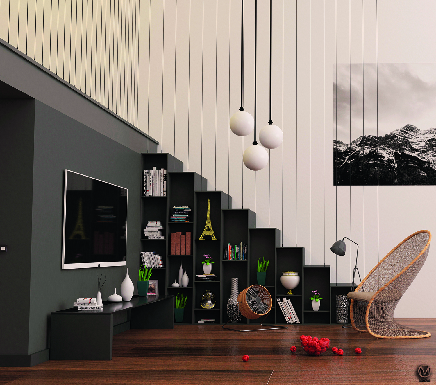 • Biblioteka – meno kūrinys. Vienas iš populiarėjančių baldų – netradicinių formų lentynos. Taisyklė, kad knygoms reikia griežtų, aiškių formų spintų, nebetenka Šiuolaikiniuose interjeruose knygų galima rasti pjaustytuose krėsluose ar nenaudojamuose židiniuose. Spintos banguoja ar skyla į neproporcingas dalis. Jų vaizdas priklauso nuo fantazijos ir polėkio.
