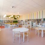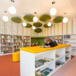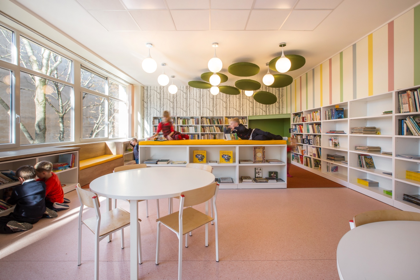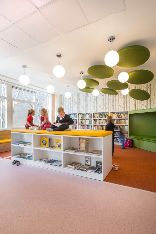 Grįžusi prie darbo architektė davė laisvę fantazijai. Taip niūri, užsukti netraukusi patalpa tapo tylia, šviesia ir spalvinga erdve su jaukiomis skaitymo vietomis bei vaikų fantaziją lavinančiais elementais.