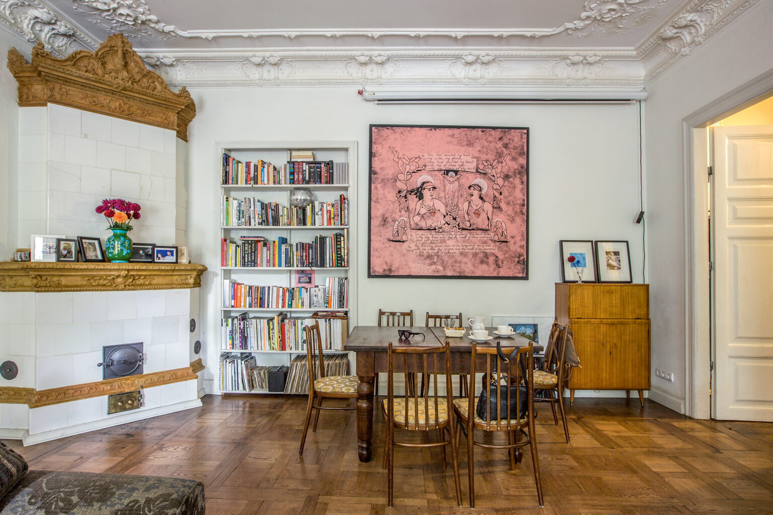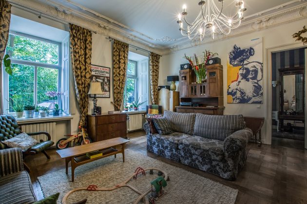 Nuotoliniu būdu būsto ieškojusi jauna pora troško panašaus į nuomotą Londone – senovinio erdvaus buto su išlikusiomis autentiškomis detalėmis, aukštomis sienomis, kur galėtų kabinti didelio formato paveikslus, ir kaimynystėje esančio parko. Visų šių pageidavimų suma lėmė, jog naujaisiais namais tapo būtent šis butas. „Jokių struktūrinių pakeitimų jame neatlikome, – sako Vilius. „Taip, tiesiog atgabenome čia savo baldus ir daiktus, kurių daugumą sudarė knygos ir paveikslai, – priduria Barbora. – Mūsų namus ir mus pačius jie geriausiai ir nusako.“ Abu sutuoktiniai užaugo stilistiškai labai panašiuose, meno ir istorijos kupinuose namuose, tad kitokio gyvenimo formato nė nenorėjo įsivaizduoti.