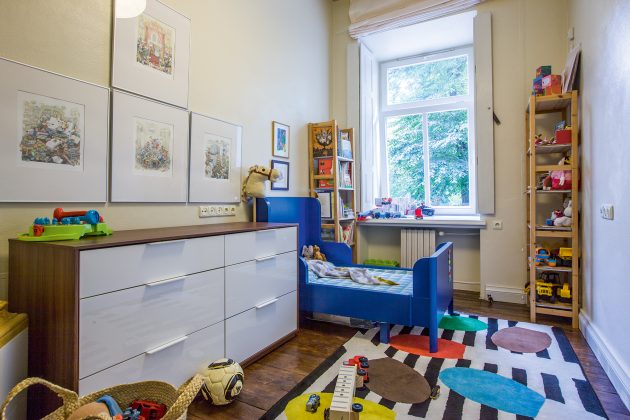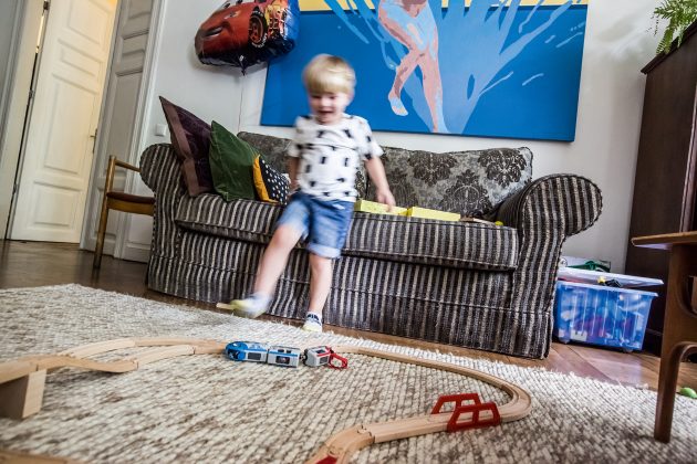 Prieš trejus metus gimus Jonui, šeima įprato namų interjerą koreguoti pagal jį, jo saugumą ir poreikius. Ieškodami visiems patogiausio varianto, Barbora ir Vilius dusyk pirko naujas šeimines lovas, tris kartus kardinaliai perstumdė baldus. „Vaikui pradėjus ropoti, visi daiktai natūraliai „pakyla“, o jam prie jų įpratus galima vėl nuleisti, – pasakoja pašnekovė. – Jonas tik prieš porą mėnesių pradėjo miegoti savo kambaryje ir tai daryti sutiko neprieštaraudamas turbūt todėl, kad prie jo įrengimo aktyviai prisidėjo pats: išsirinko sau patinkančią lovą, dėliojo į lentynas savo žaislus ir knygeles. Namai, atsiradus vaikui, natūraliai keičiasi, bet tai labai smagu“, – šypsosi jauna mama. „Vaikų kambarys, kol vaikai jame nemiega, dažnai būna panašesnis į žaislų sandėlį“, – žmoną papildo Vilius. Kad taip nenutiktų, nebereikalingus daiktus ar žaislus tėvai reguliariai dalija draugams ar atiduoda labdarai. „Londone tai daryti buvo kur kas paprasčiau, nes kone kiekvienoje gatvėje stovėdavo labdarai skirti konteineriai“, – pastebi Barbora.