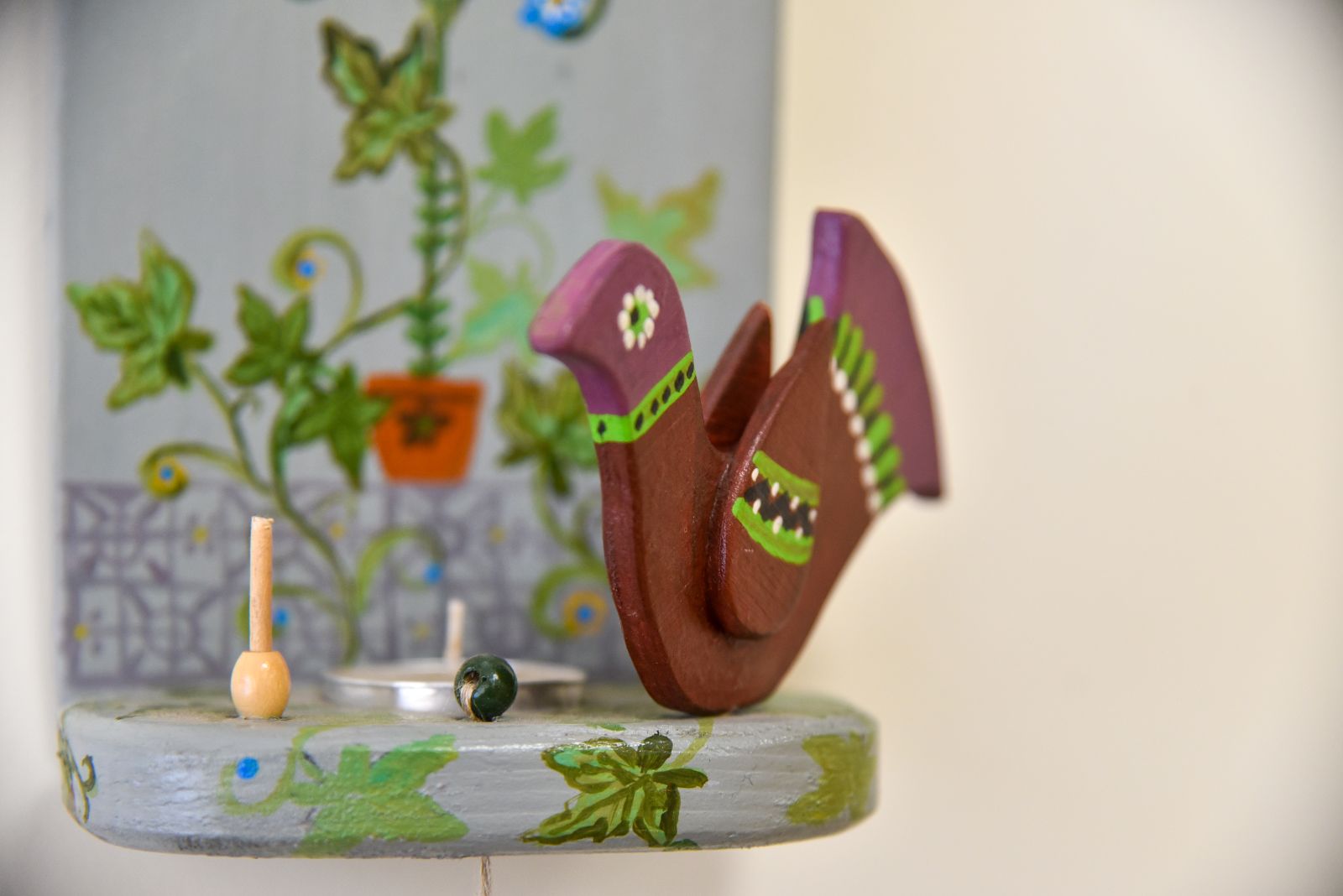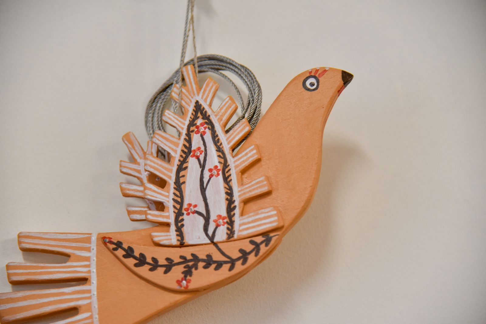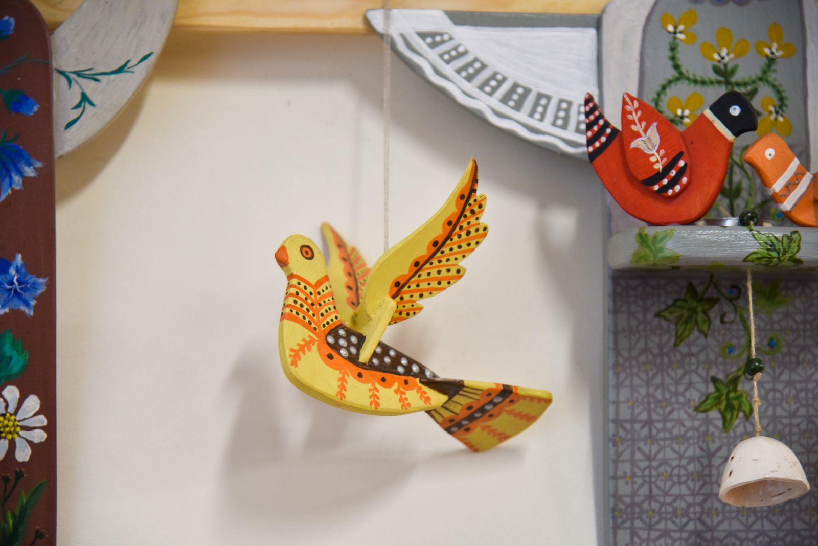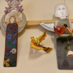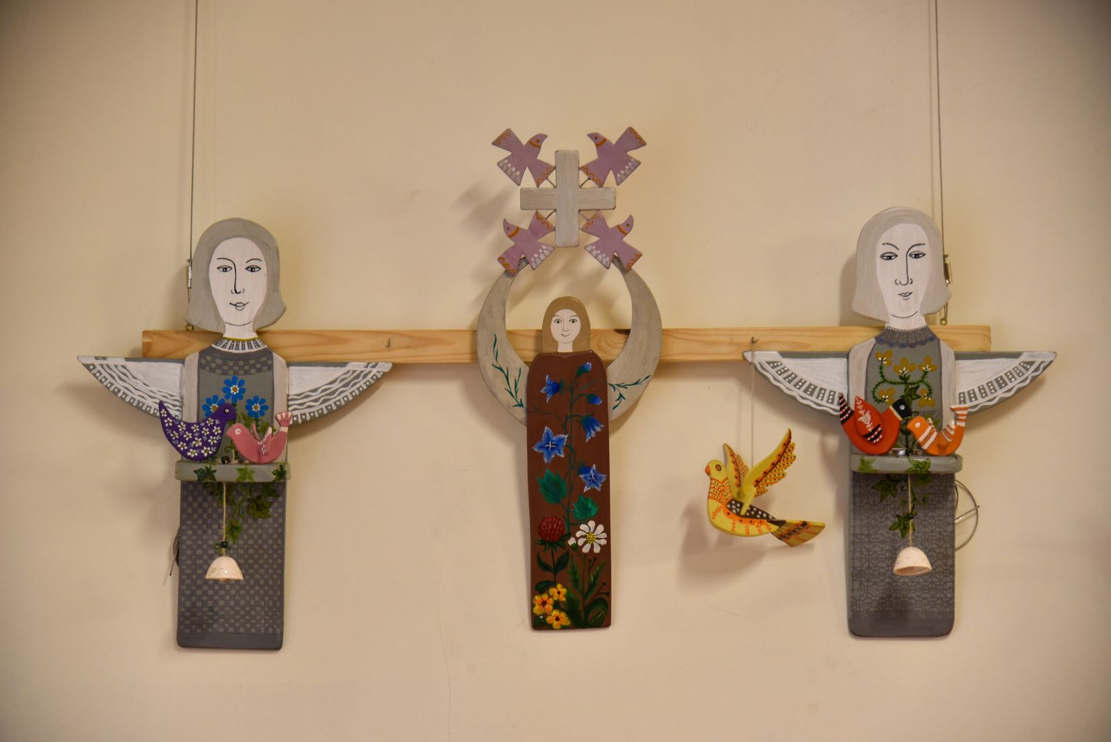 „Tapyti ant medžio sumaniau gana netikėtai – paprašiau vyro, kad pagal mano piešinius išpjaustytų iš faneros paukščių ir angelų figūras. Vyras mielai ėmėsi darbo“, – prisimena tautodailininkė.