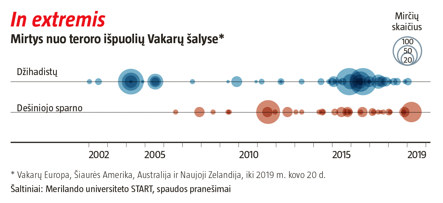 Baltųjų nacionalistų keliama grėsmė nuvertinama iš dalies dėl jų polinkio vengti viešumo. B. Tarrantas – išimtis, kaip ir jo didvyris Andersas Breivikas, 2011 m. Norvegijoje nužudęs 77 žmones. Jie parašė manifestus, siekė daugiau žiniasklaidos dėmesio. Be to, Kraistčerčo žudikas priminė rafinuotas džihadistų organizacijas tiek demonstratyviu nusikaltimo žiaurumu, tiek siekiu supriešinti visuomenę, kad būtų dar daugiau ekstremizmo.