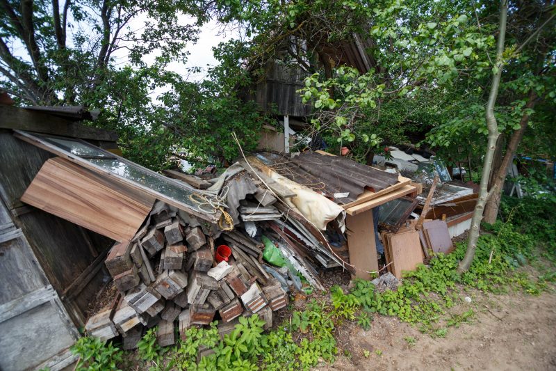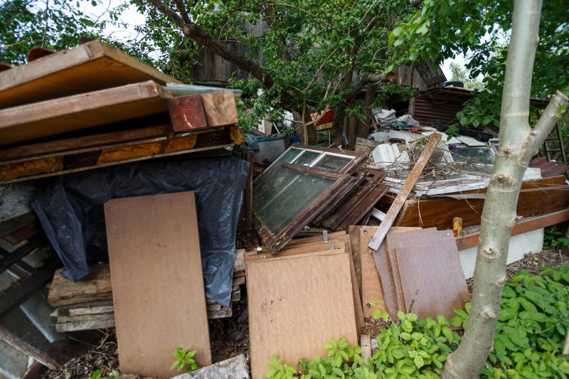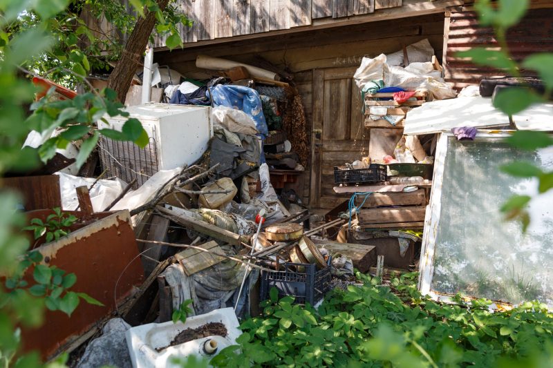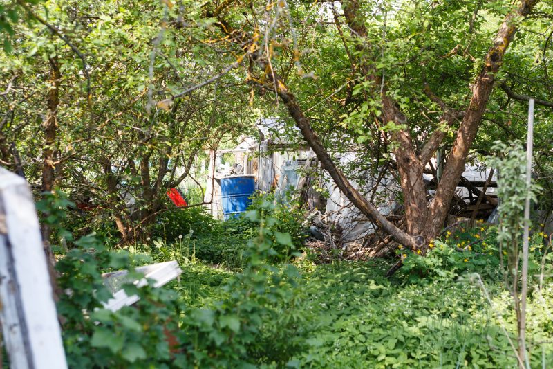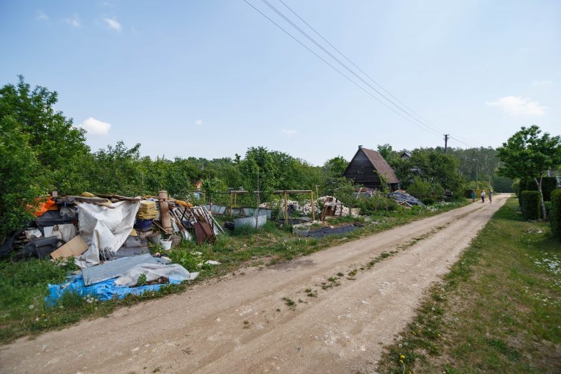 Nemažas sklypas iš tiesų primena sąvartyną, didžiąją jo dalį užima įvairiausios statybinės didžiagabaritės atliekos. Pro suverstą ilgus metus kauptą turtą ir seniai nepjautą žolę bei krūmus vos matyti sodo namelis, taip pat pilnas daiktų. Nors įėjimą į jo vidų žymi siauras takelis, pastate, kaimynų įsitikinimu, seniai niekas nebesilanko.