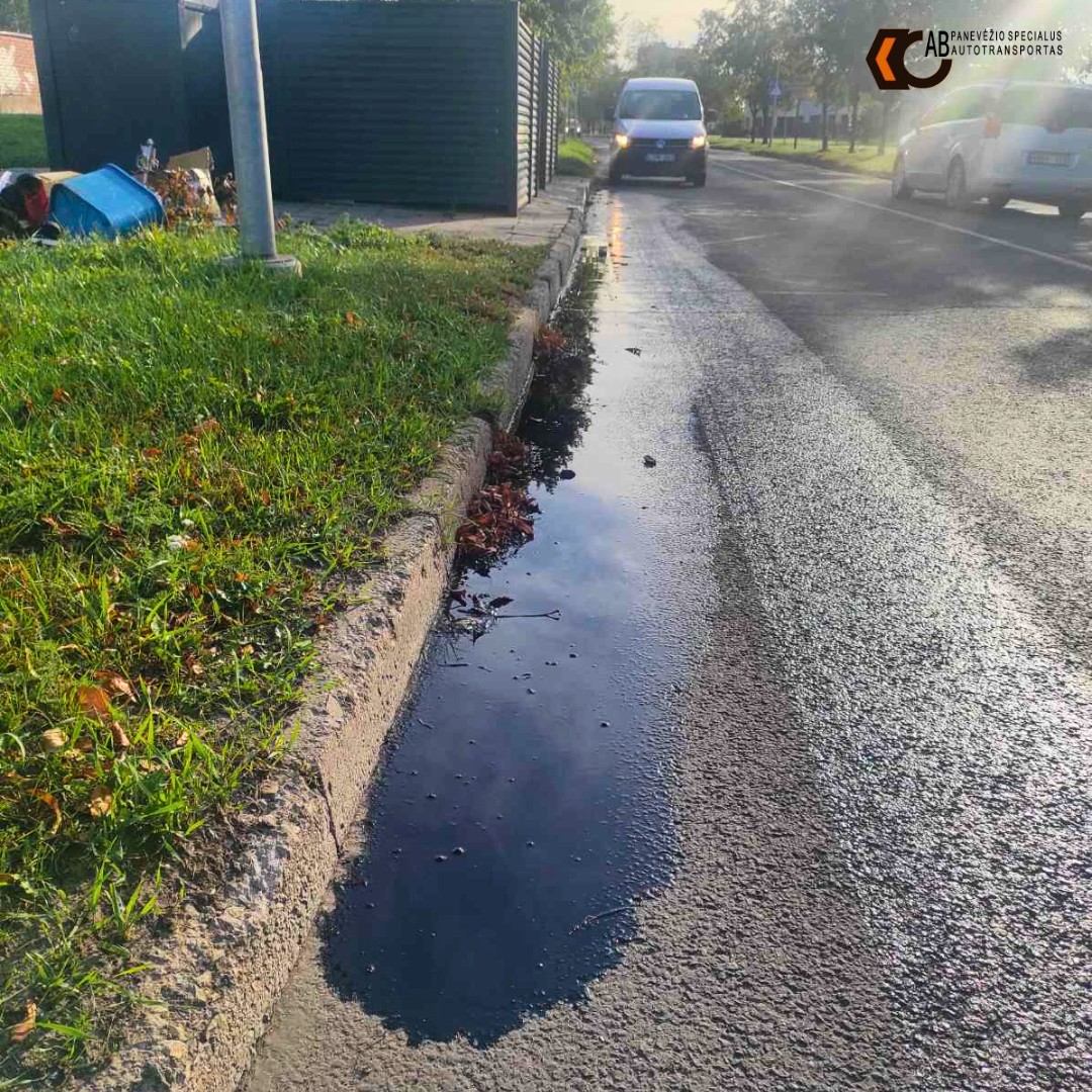 „Panevėžio specialus autotransportas“ darbuotojams teko skubiai reaguoti į situaciją. Siekiant tinkamai ir saugiai sutvarkyti išliejusius iš talpos tepalus, buvo supilta sorbento medžiaga, teritorija išluota ir po to išvalyta vakuumine mašina.