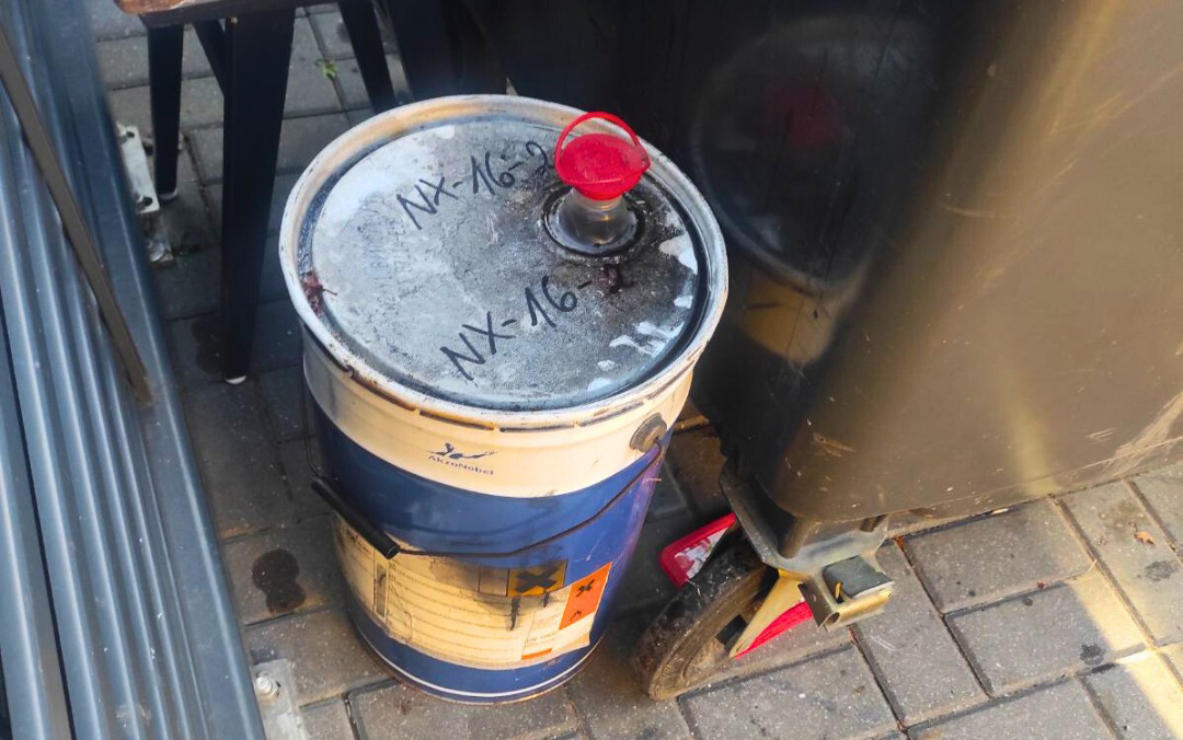 Gyventojai nepasikuklino į mišrių komunalinių atliekų konteinerį išmesti pilną ir nesandarią tepalų talpą, kuri ne tik užteršė atliekų konteinerį, bet ir pačią aikštelę bei gatvę.