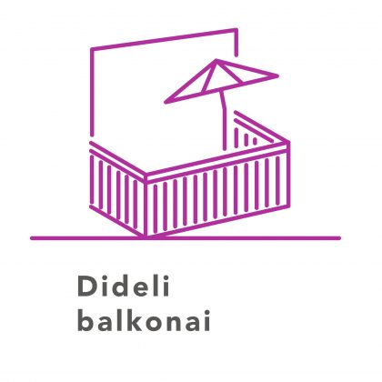 1 kambario butai (nuo 26 m2 iki 36 m2) – tai kompaktiškos studijos su patogiais balkonais. Paprastam ir turiningam gyvenimui. Šie butai visada išliks paklausūs nuomai ar pardavimui.