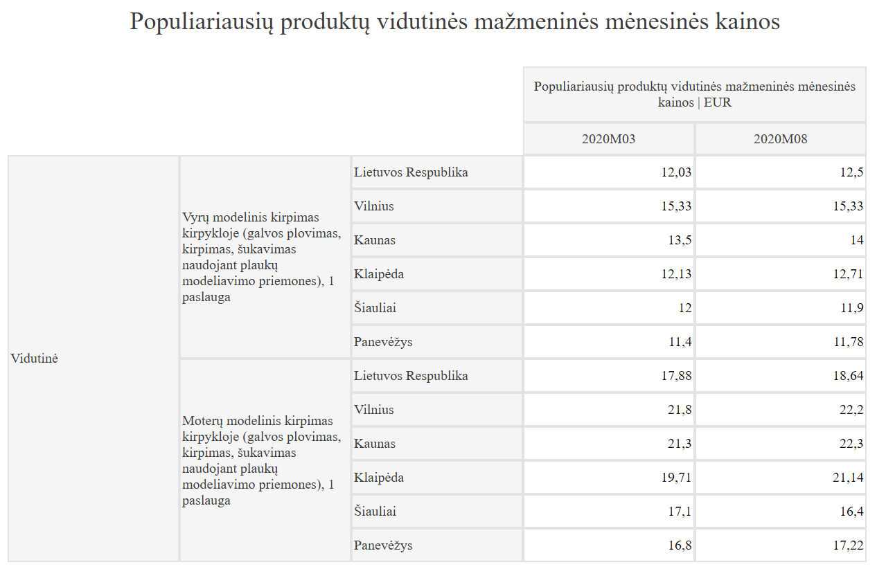 • nesąmonės parašytos- vyro kirpimas kirpimo salone tik mašinėle dabar minimum 12- 14 eurų.Jei kirpyklėlėje „ant kampo” – apie 7- 10 eur.