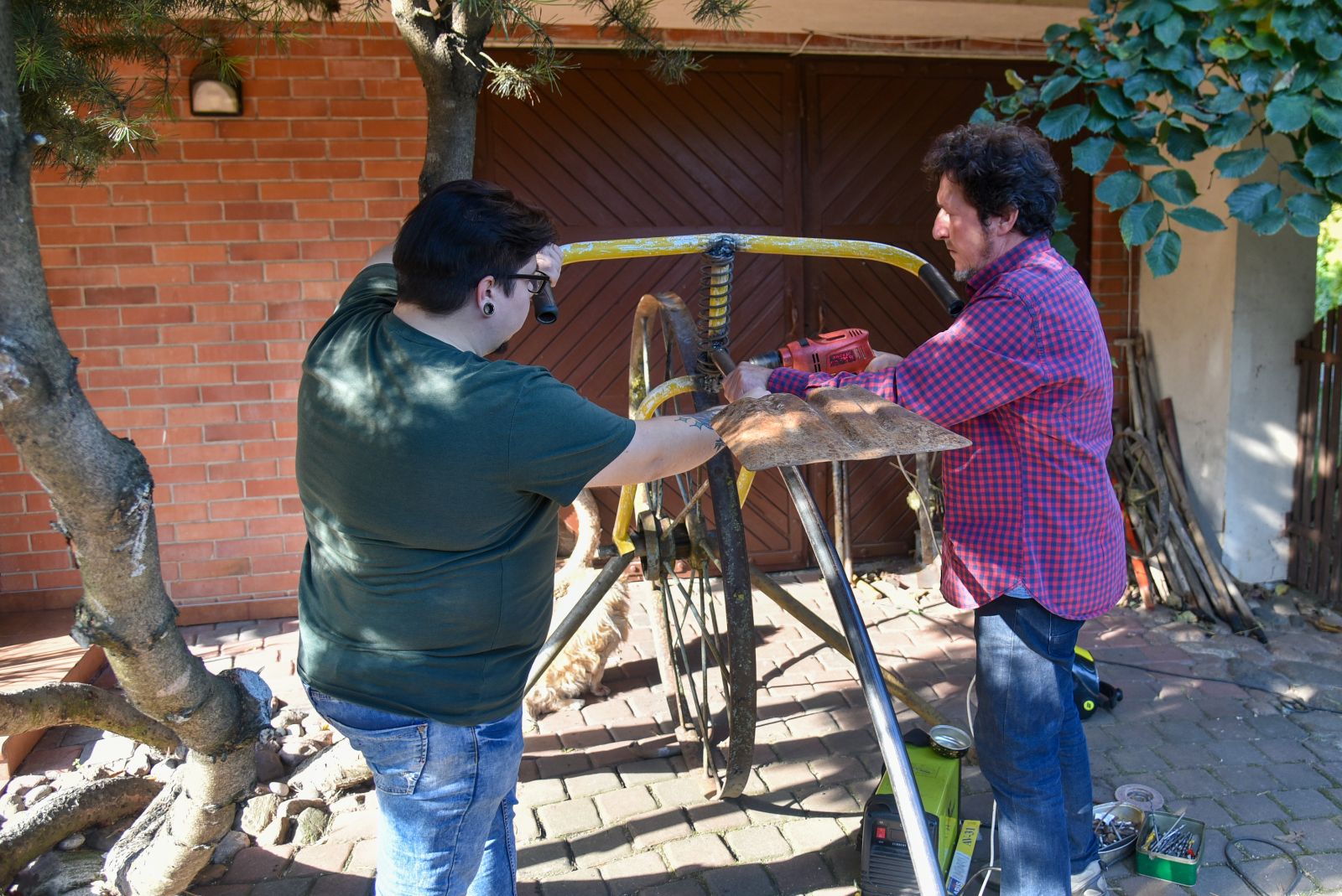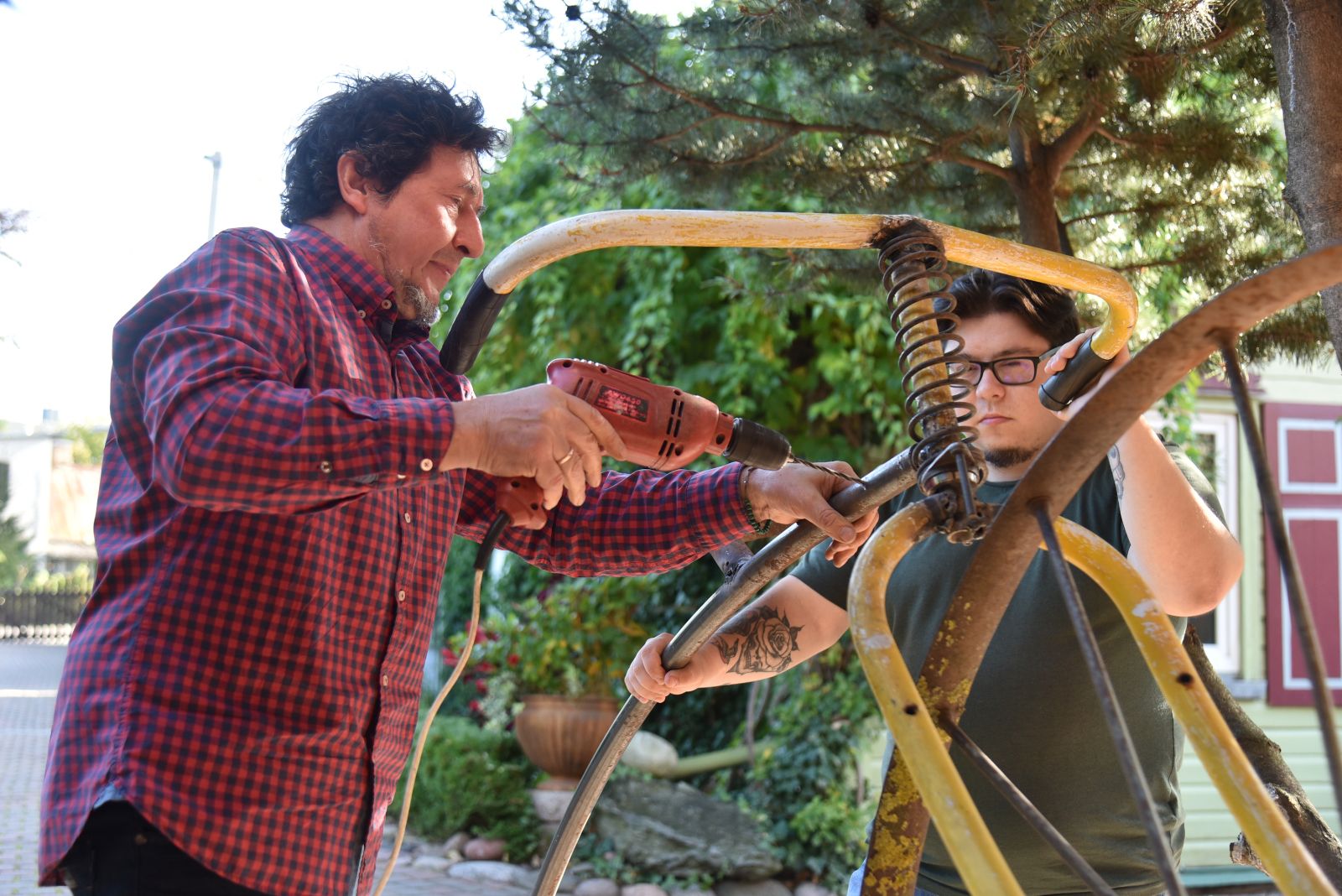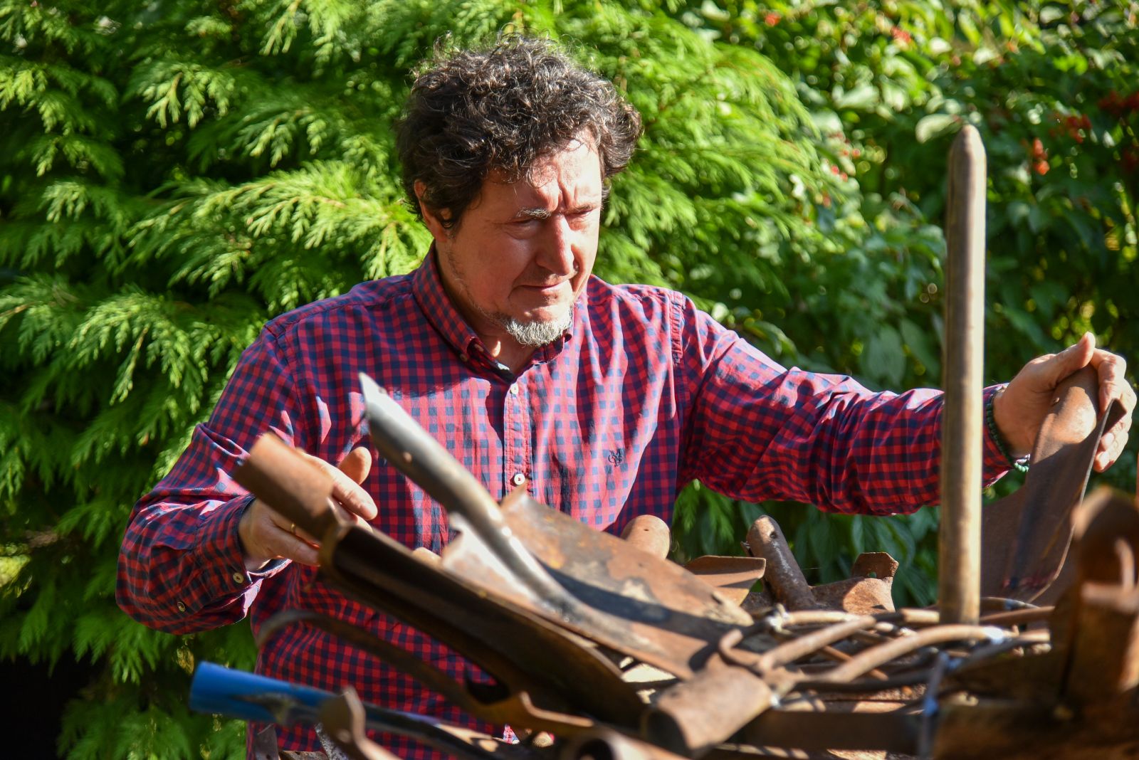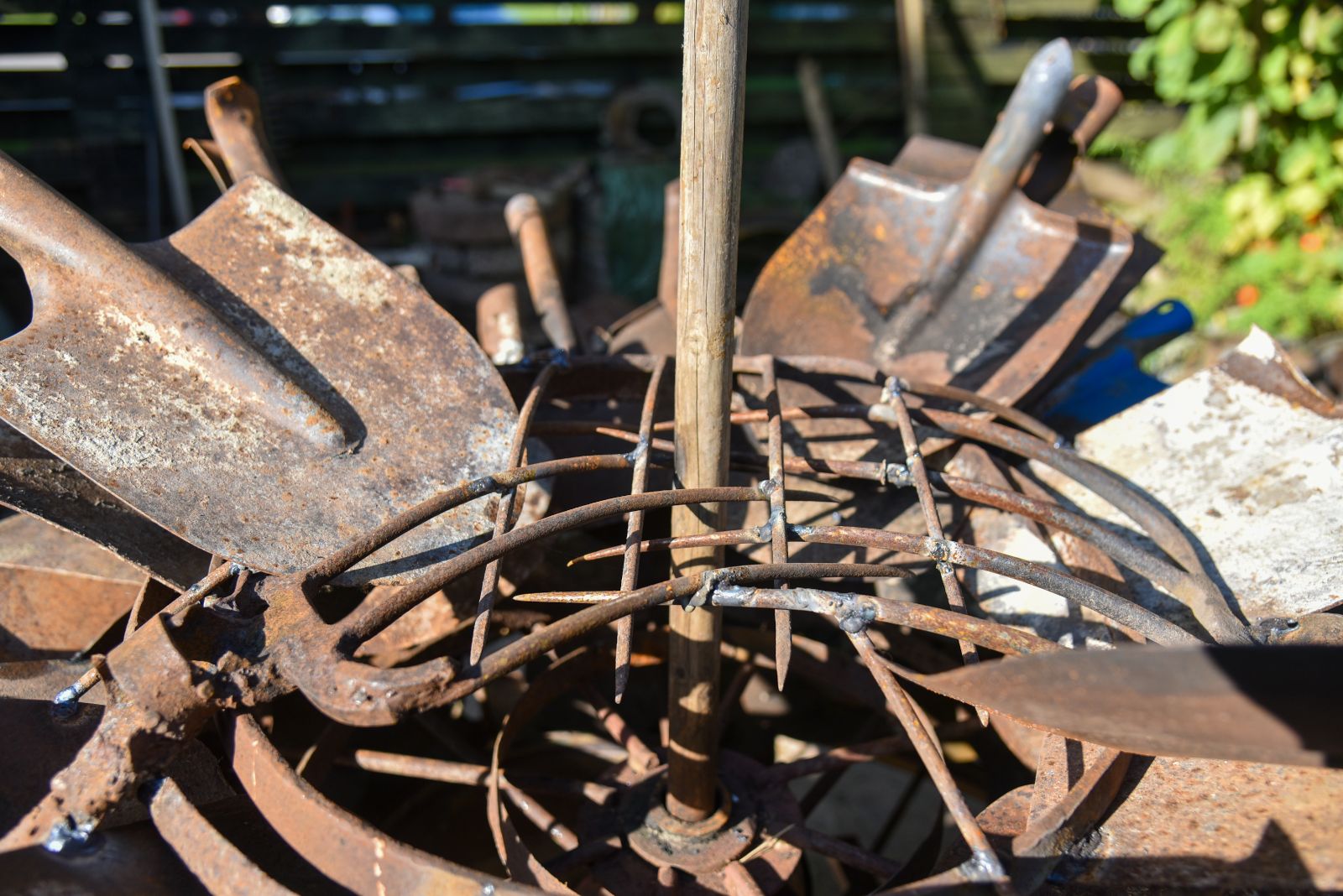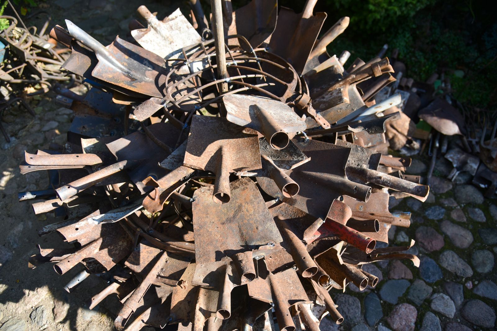 Rimantas nusiteikęs netrukus visiems parodyti, kokį paminklą „koronai“ sumeistravo iš gautųjų gimtadienio dovanų – senų kastuvų, semtuvų ir net šakių.