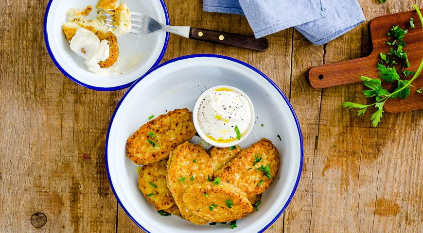 Reikės (6 porcijoms): 1 kg žiedinių kopūstų, 2 kiaušinių, 2 krapo šakelių, 2 petražolės šakelių, 80 g miltų, 3–6 šaukštų aliejaus, druskos.