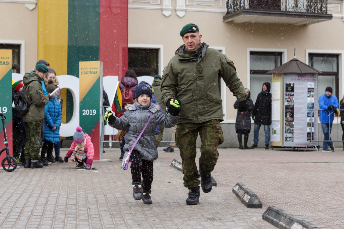 Po iškilmingo minėjimo Laivės aikštėje, tradicinės vėliavos pakėlimo ceremonijos ir šventinių kalbų susibūrę panevėžiečiai ir miesto svečiai iš miesto širdies šventine eisena patraukė link „Cido“ arenos.