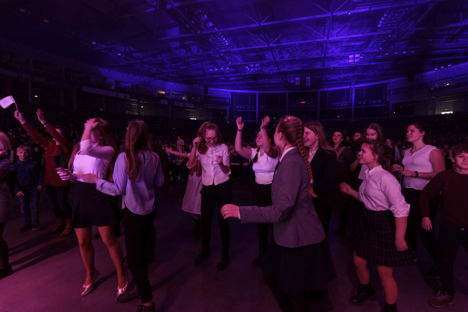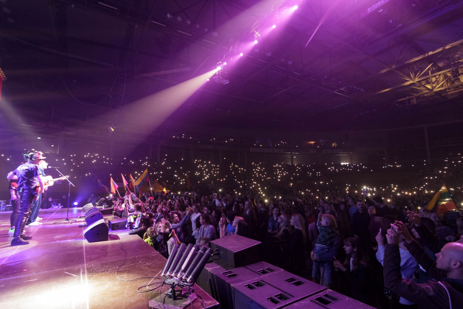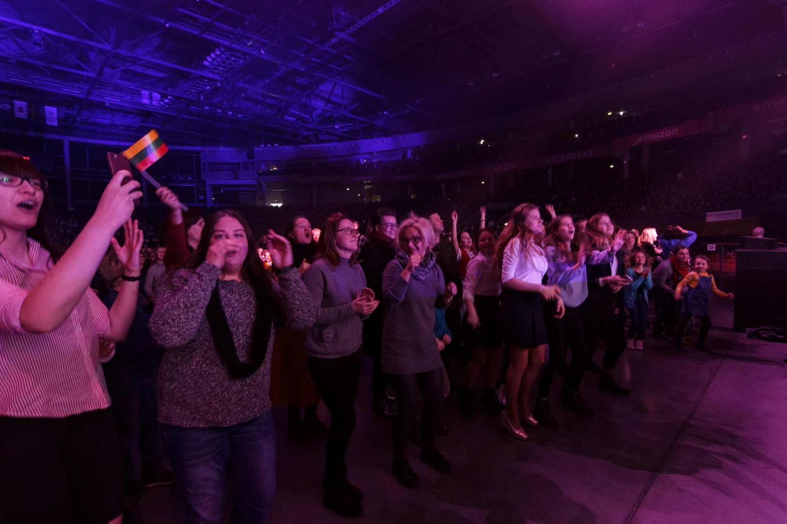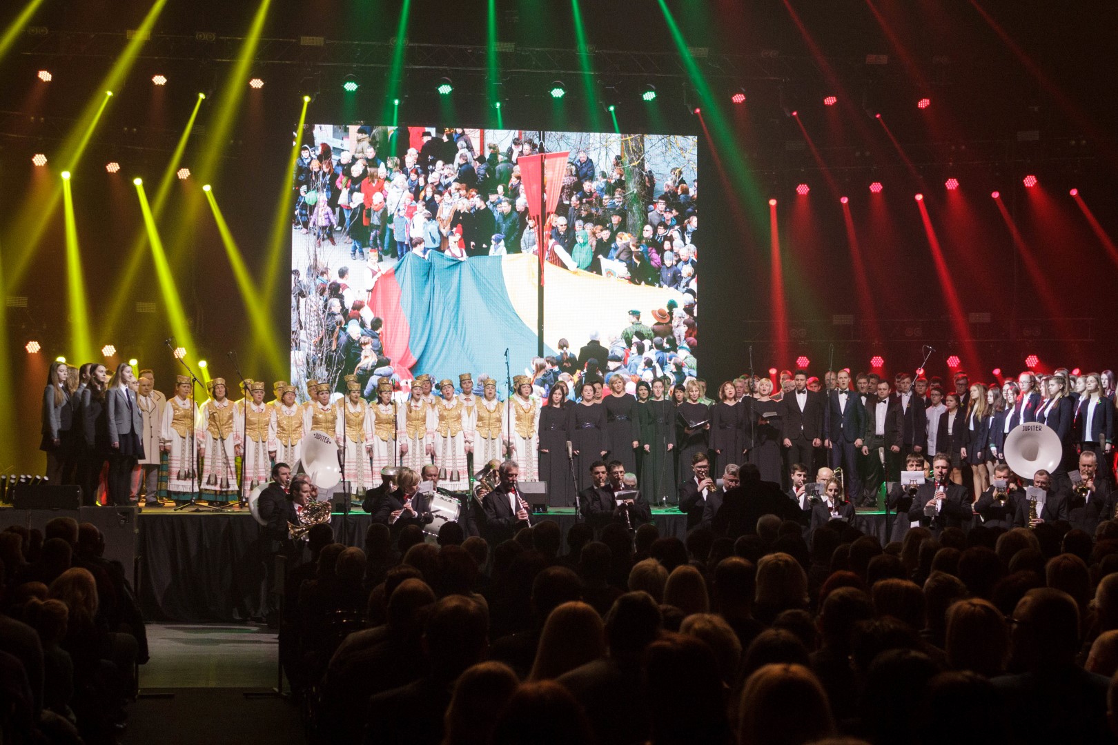 Iš karto po renginio Laisvės aikštėje, į miesto areną ėmė plūsti minios melomanų. 7000 žiūrovų talpinanti arena kaip mat užsipildė švęsti Nepriklausomybės atkūrimo dieną pasiryžusiais žmonėmis. Nemaža dalis buvo pasidabinę tautine simbolika, nešini plevėsuojančiomis vėliavėlėmis.