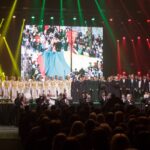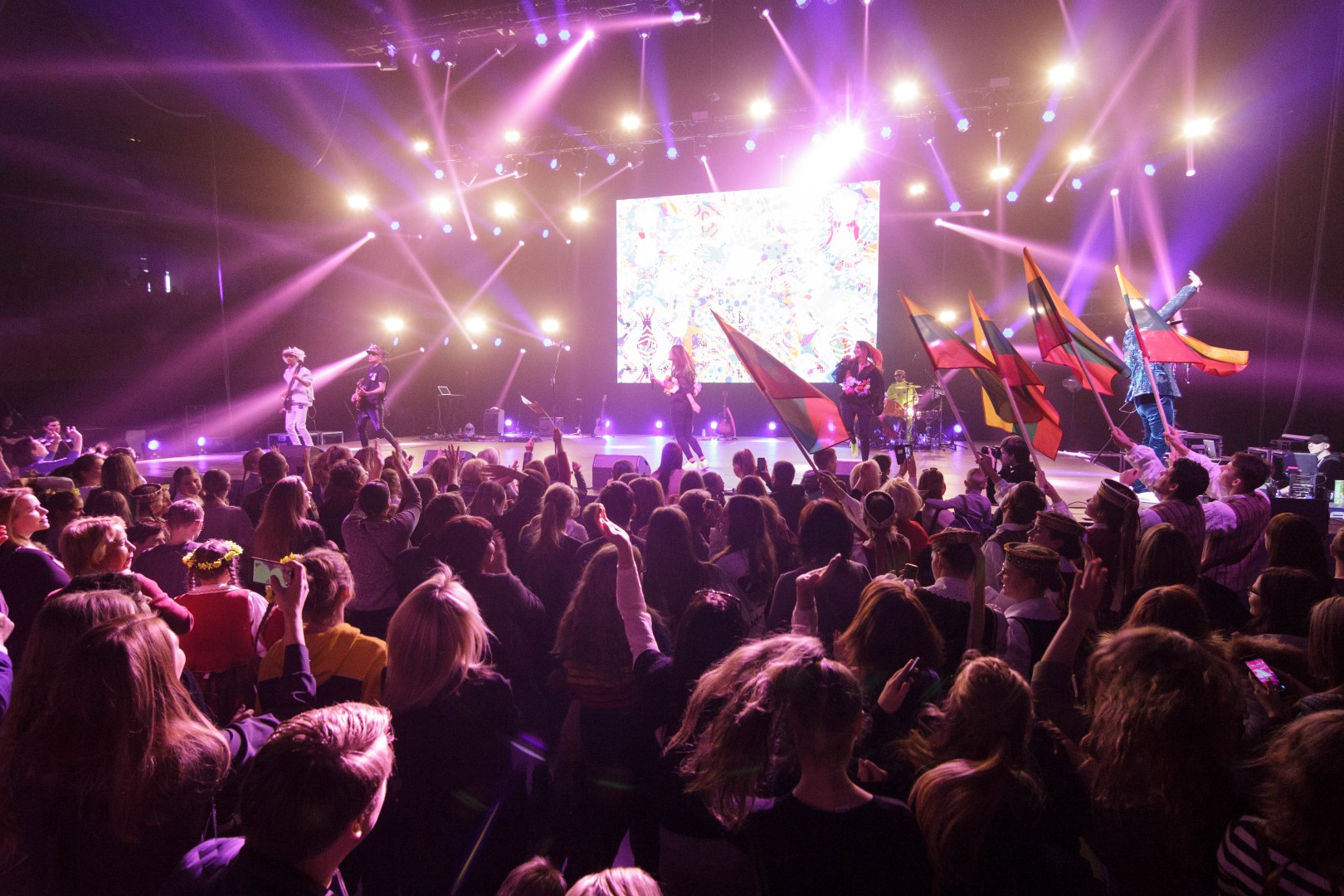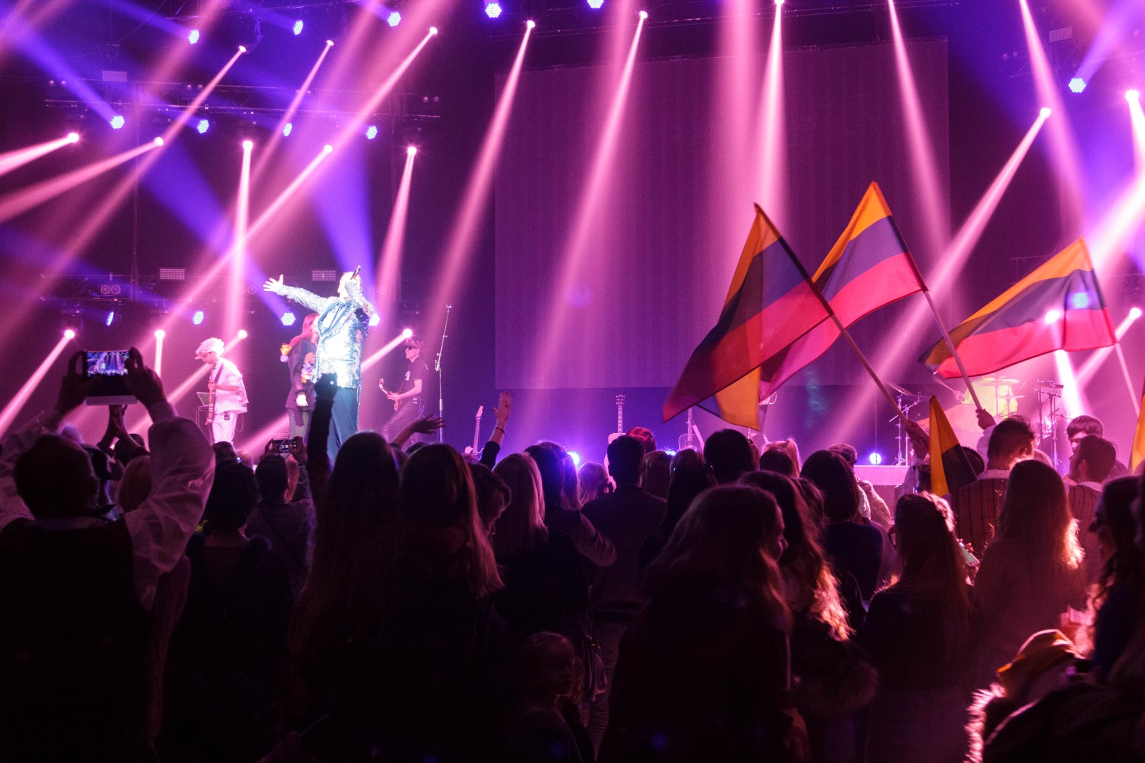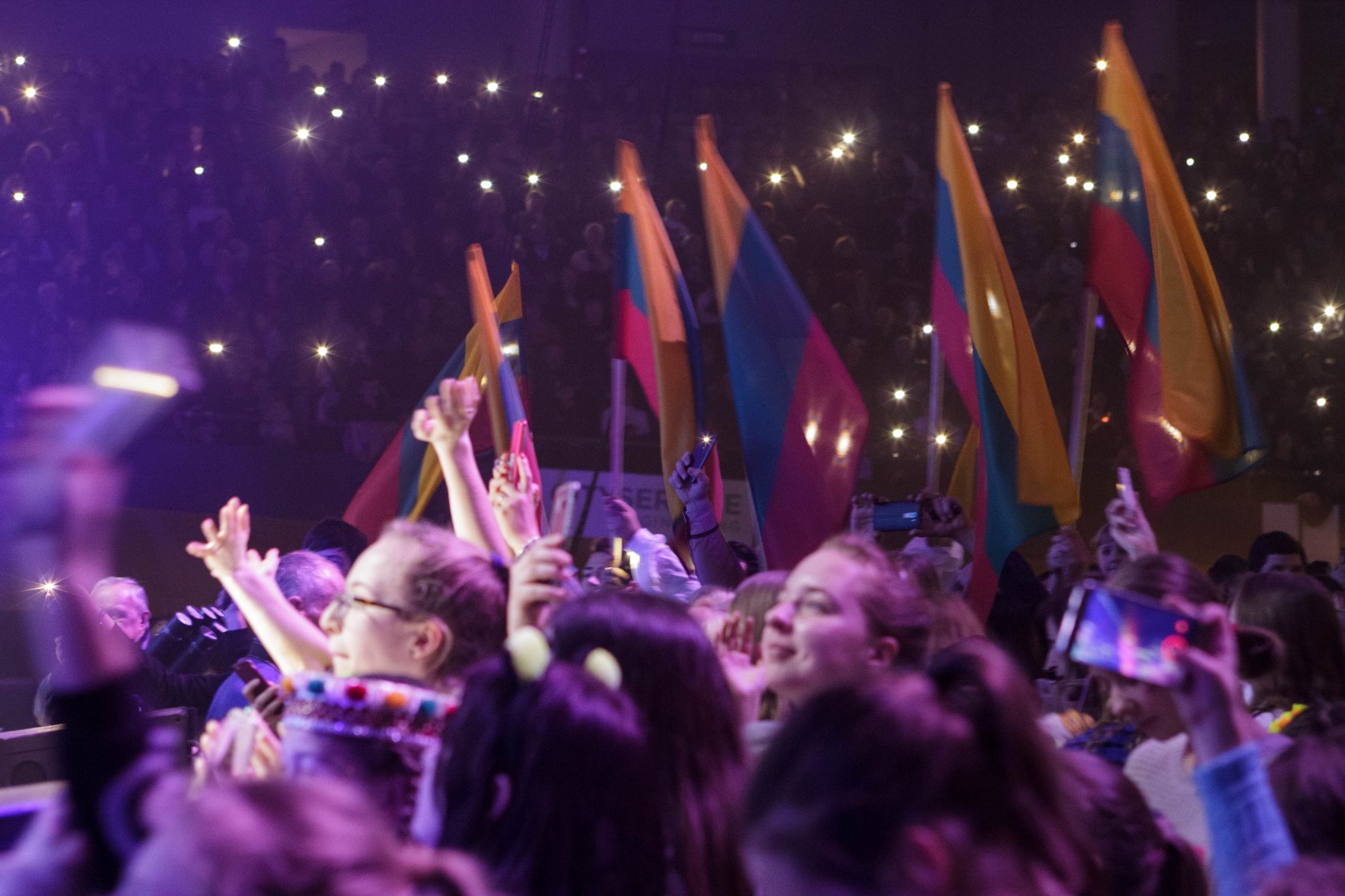 Iš karto po renginio Laisvės aikštėje, į miesto areną ėmė plūsti minios melomanų. 7000 žiūrovų talpinanti arena kaip mat užsipildė švęsti Nepriklausomybės atkūrimo dieną pasiryžusiais žmonėmis. Nemaža dalis buvo pasidabinę tautine simbolika, nešini plevėsuojančiomis vėliavėlėmis.