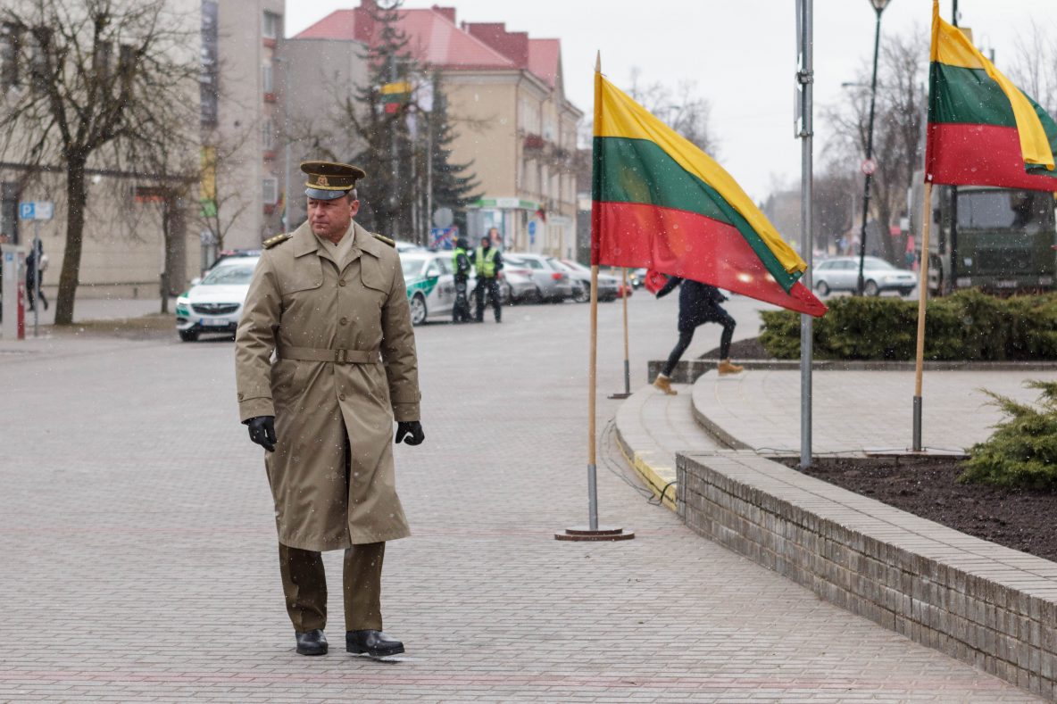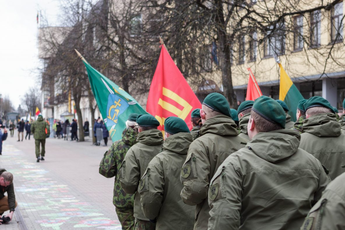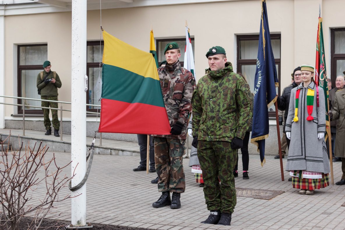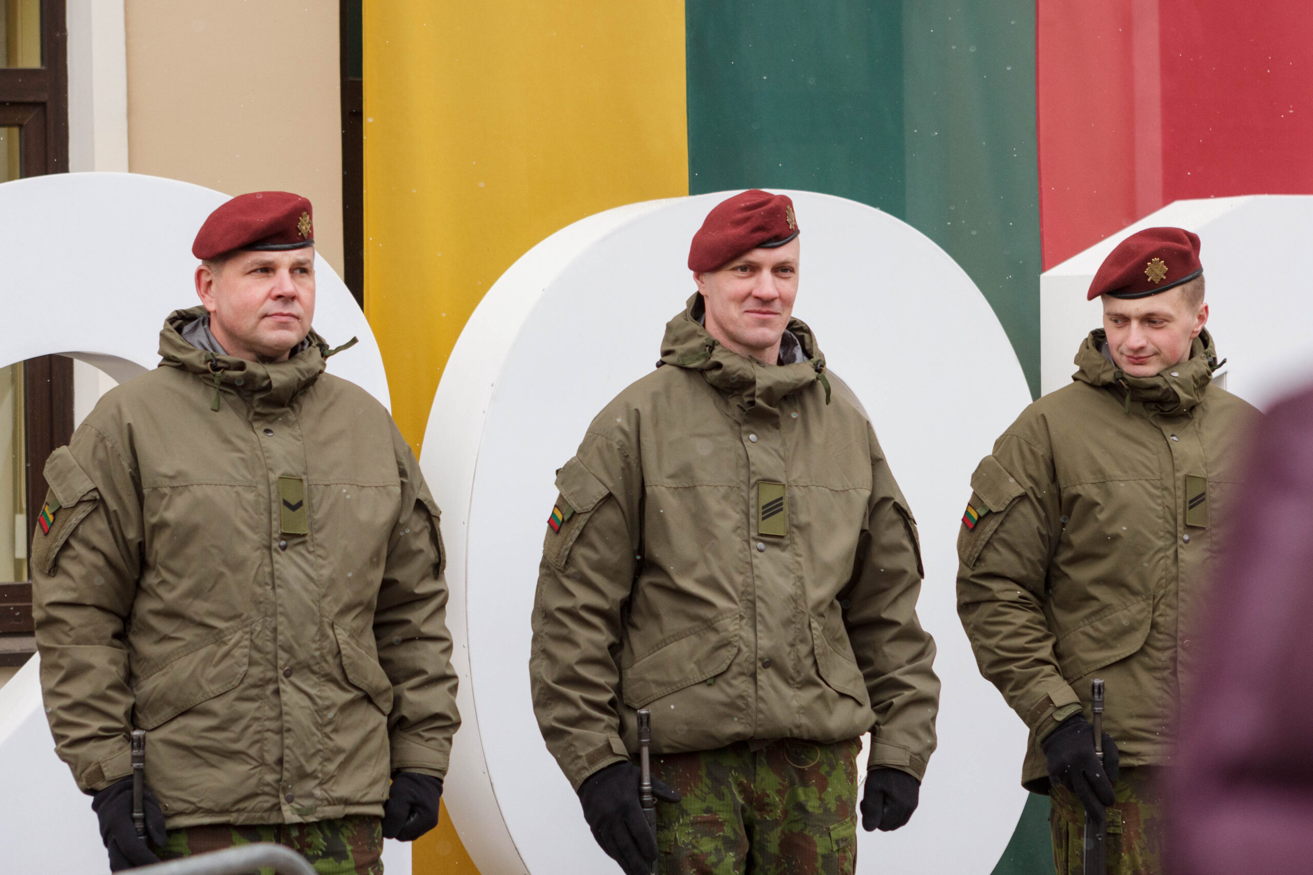 Paskutinieji Laisvės aikštę apibėgo kariai – iš karto po jų bėgimo prasidėjo iškilminga vėliavos pakėlimo ceremonija.