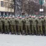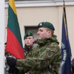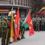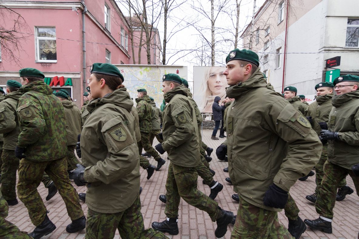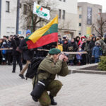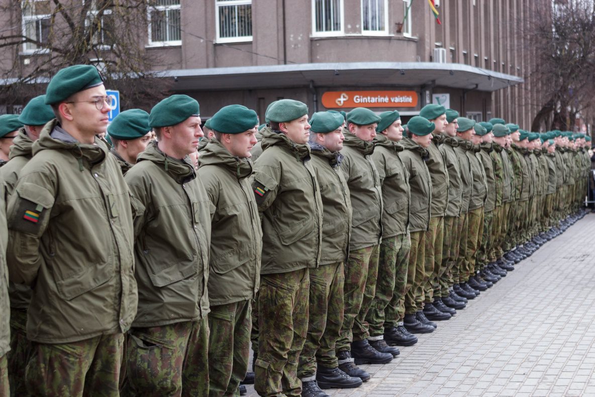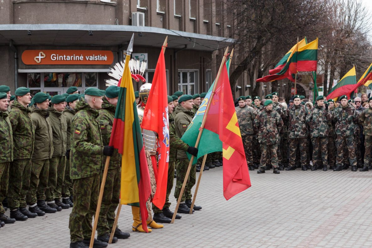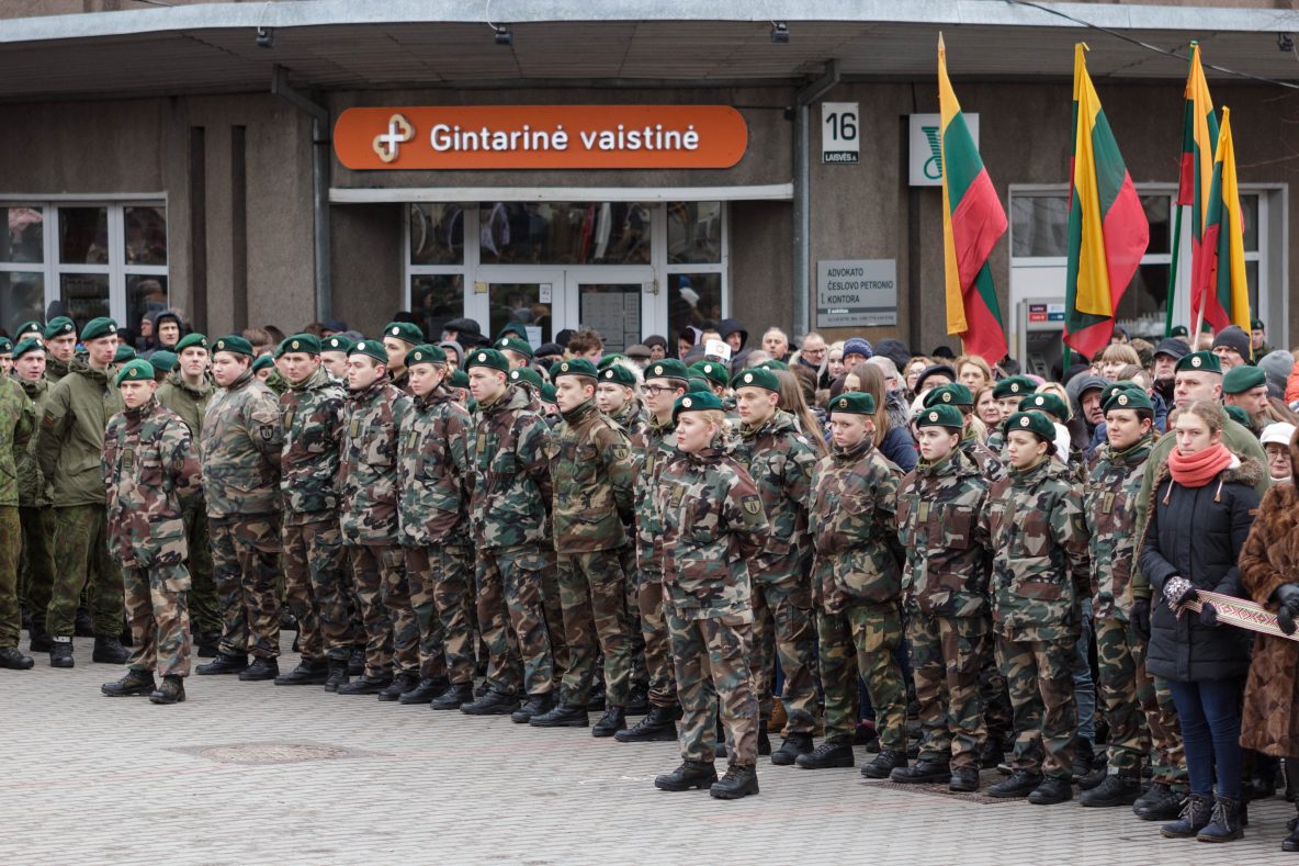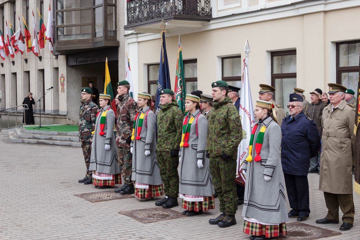 Paskutinieji Laisvės aikštę apibėgo kariai – iš karto po jų bėgimo prasidėjo iškilminga vėliavos pakėlimo ceremonija.