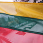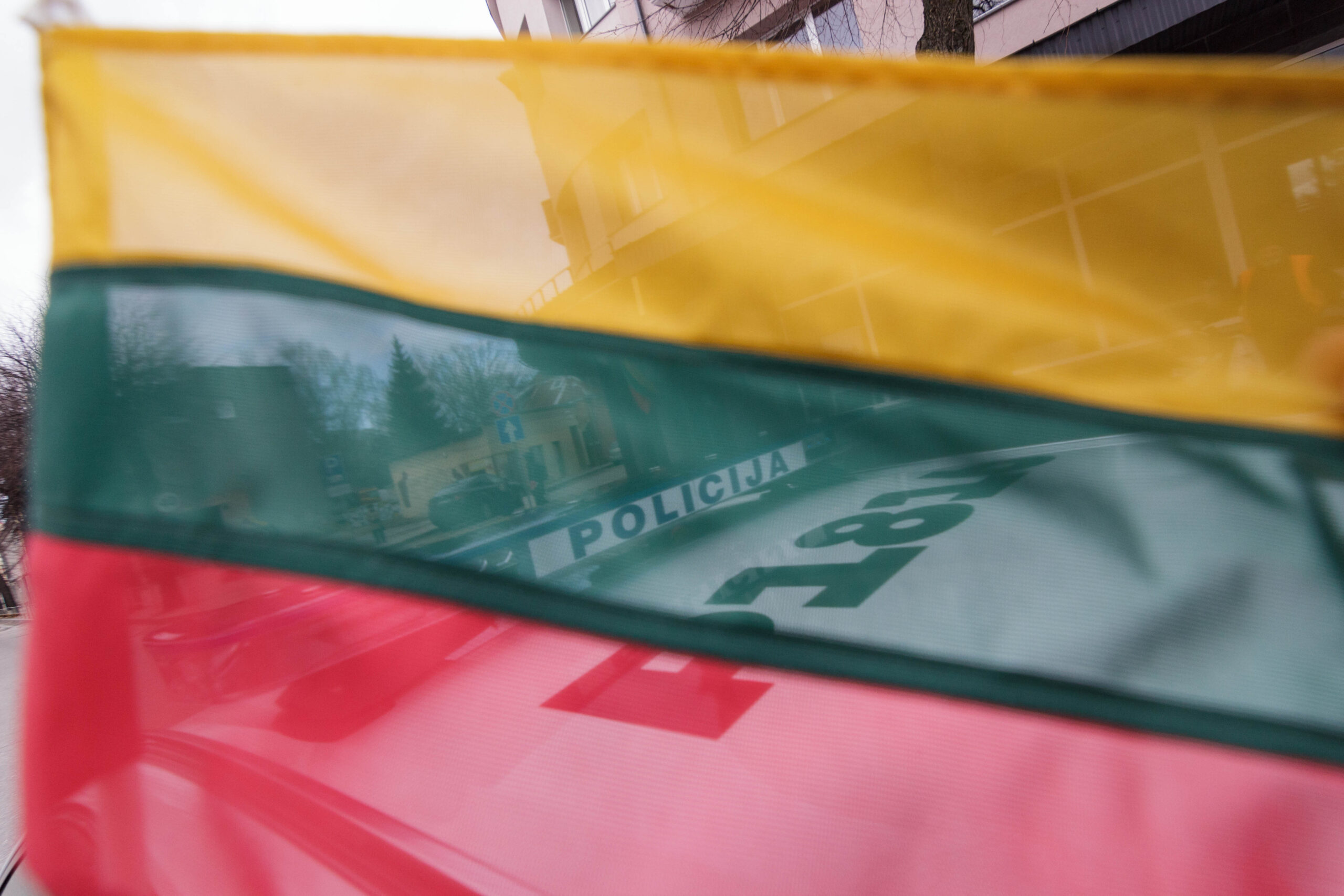 Į minėjimą miesto centre panevėžietis Kęstutis atskubėjo papuošęs savo paltą trispalve vėliavėle.