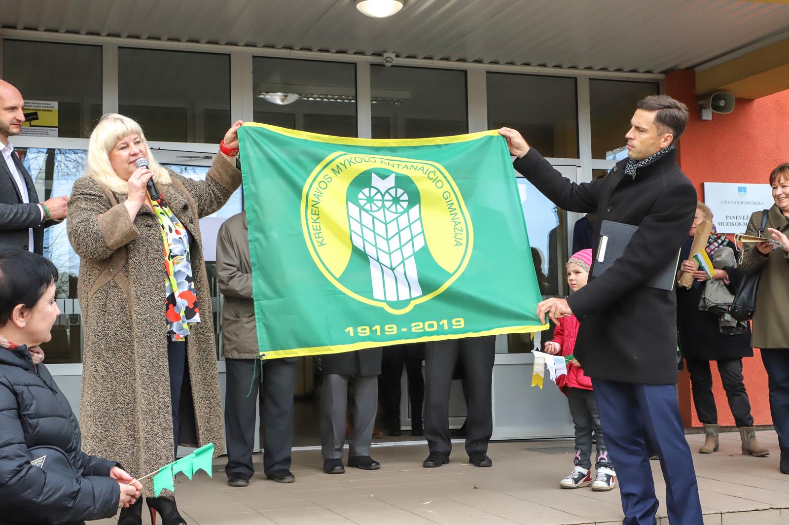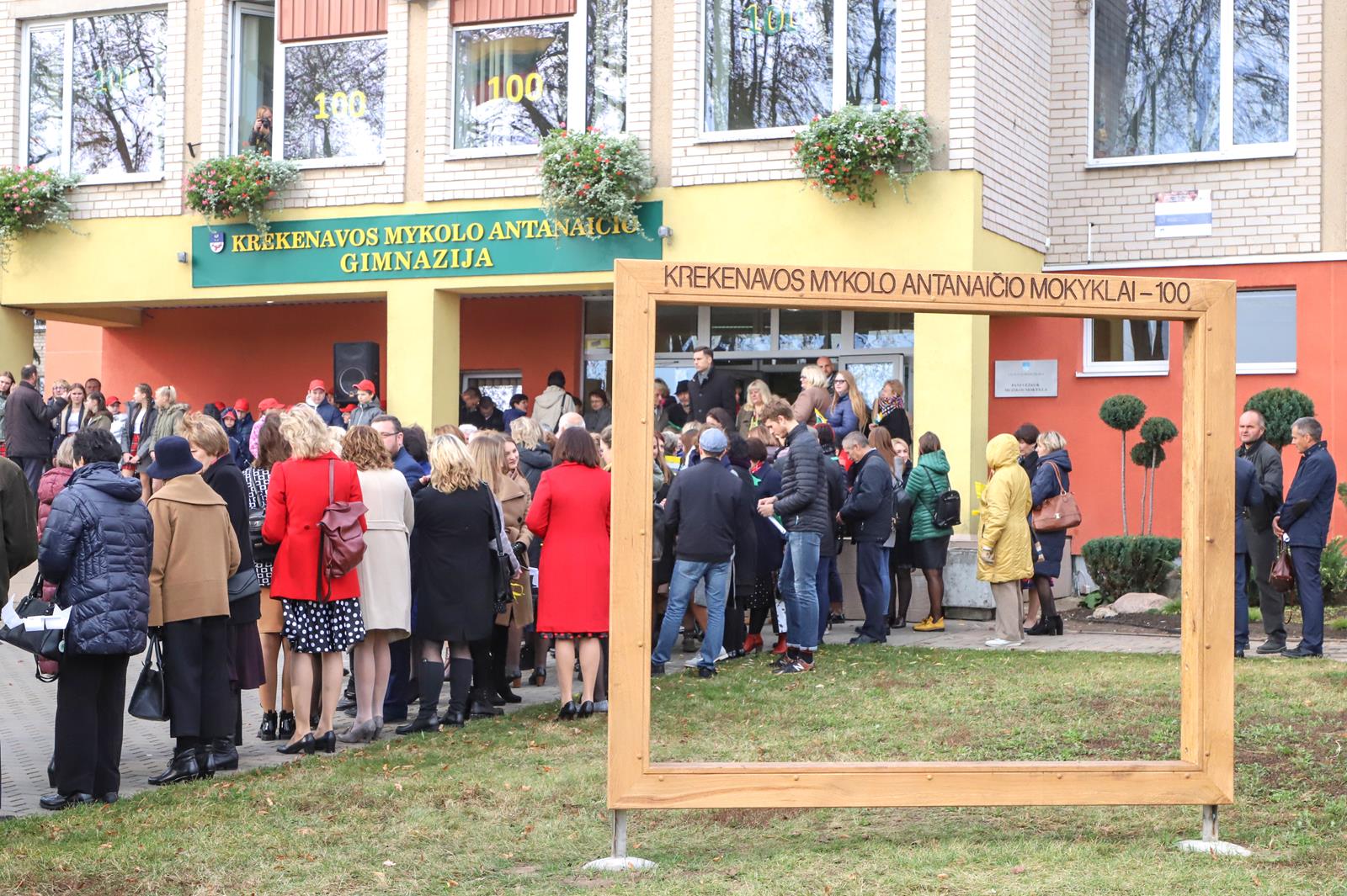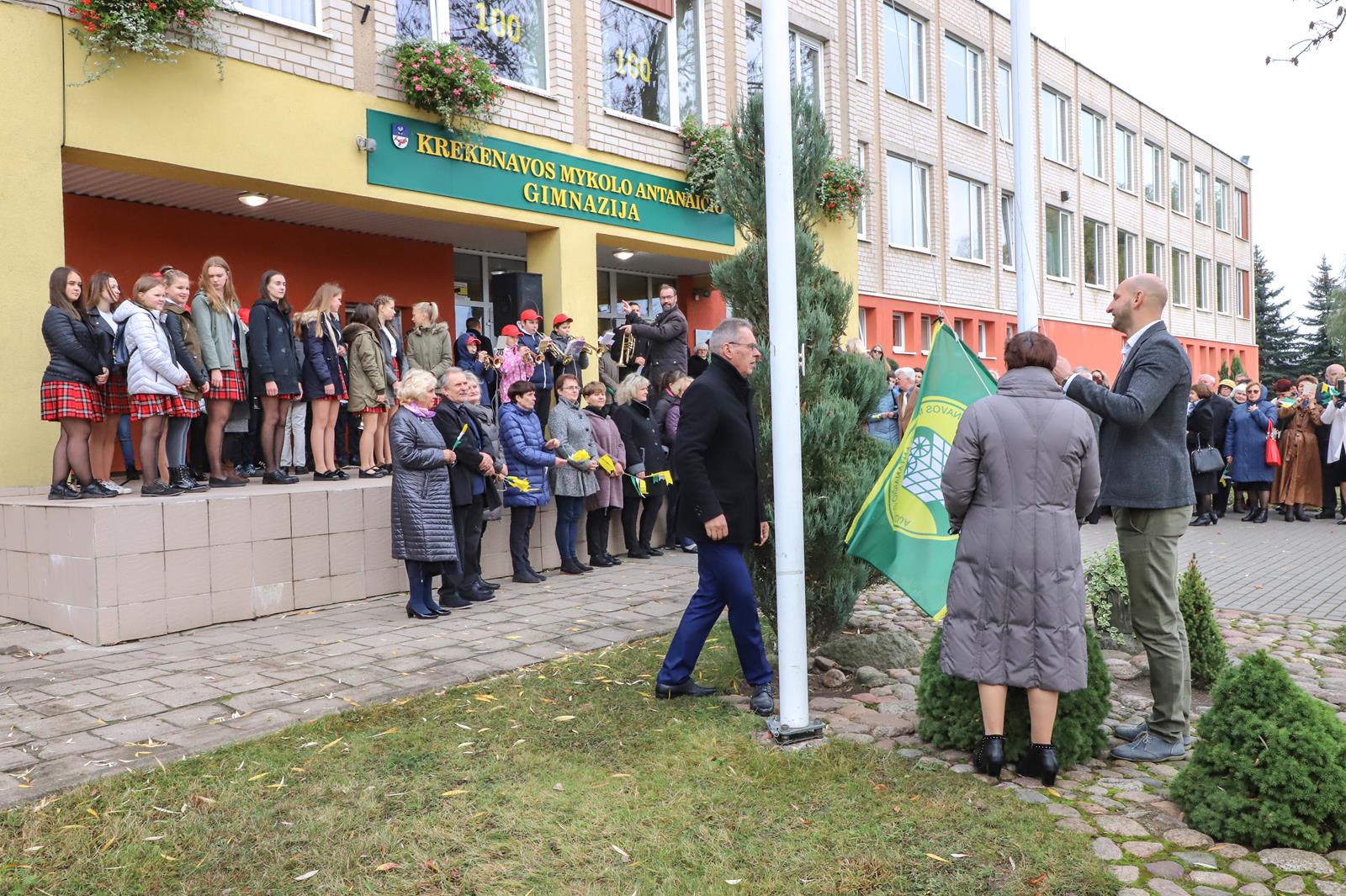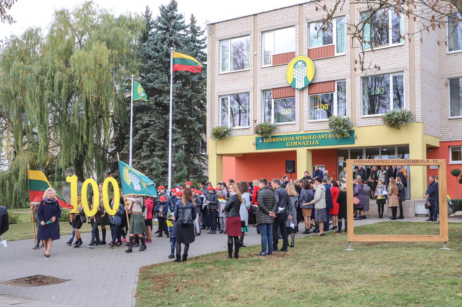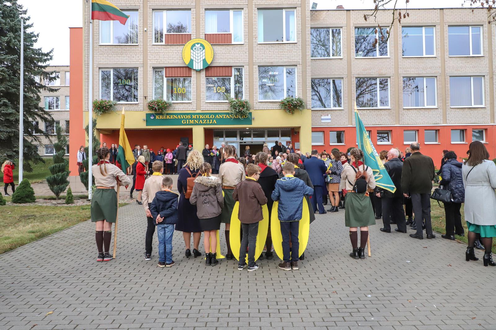 Šaltoką šeštadienį Krekenavoje aidi senokai besimačiusiųjų klasės draugų ir kolegų juokas, akimirkas sušildo bendri mokykliniai prisiminimai, o prieš vidurdienį prie M. Antanaičio gimnazijos iškėlus Krekenavos bendruomenės „Tiltai“ dovanotą šimtmečio vėliavą, per miestelį iki Kultūros centro nusidriekė spalvinga eisena.