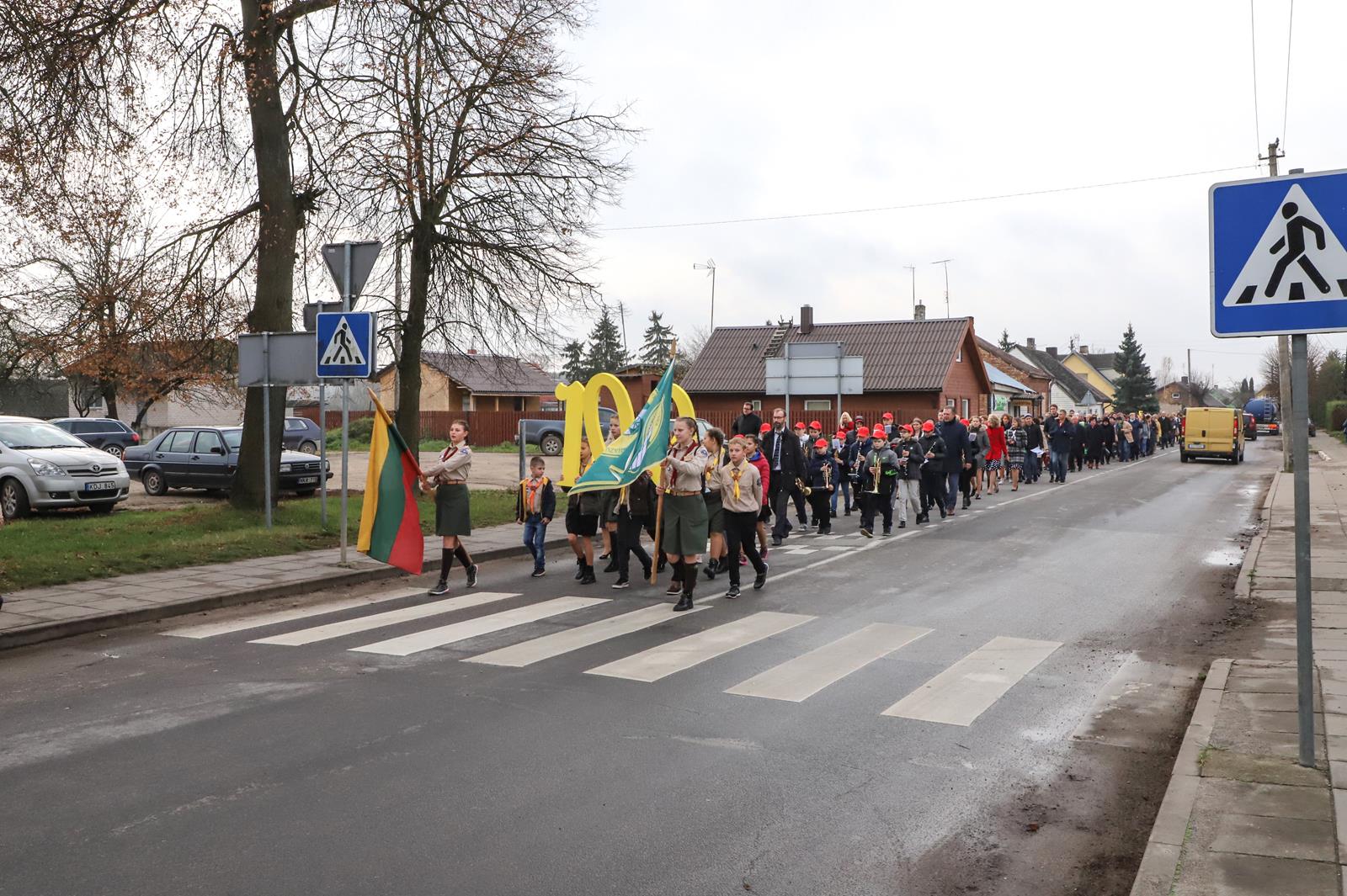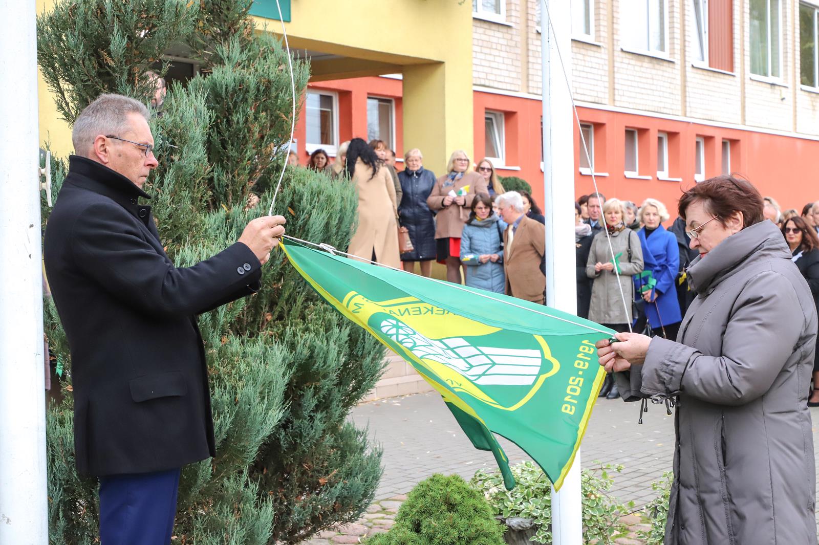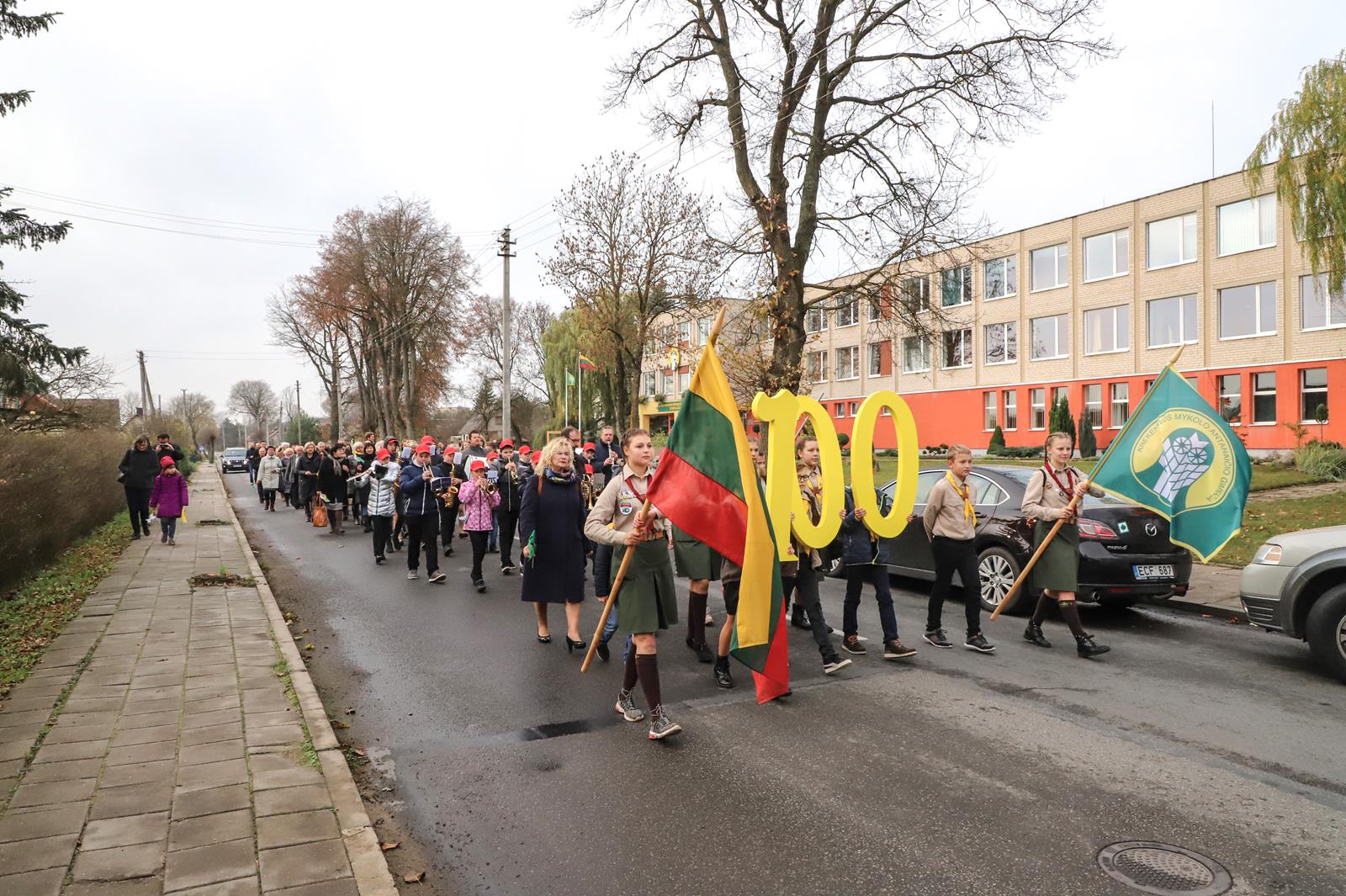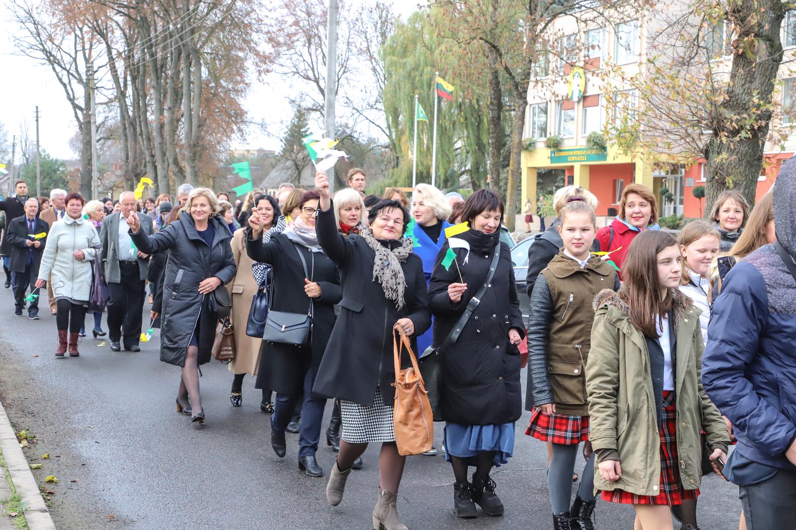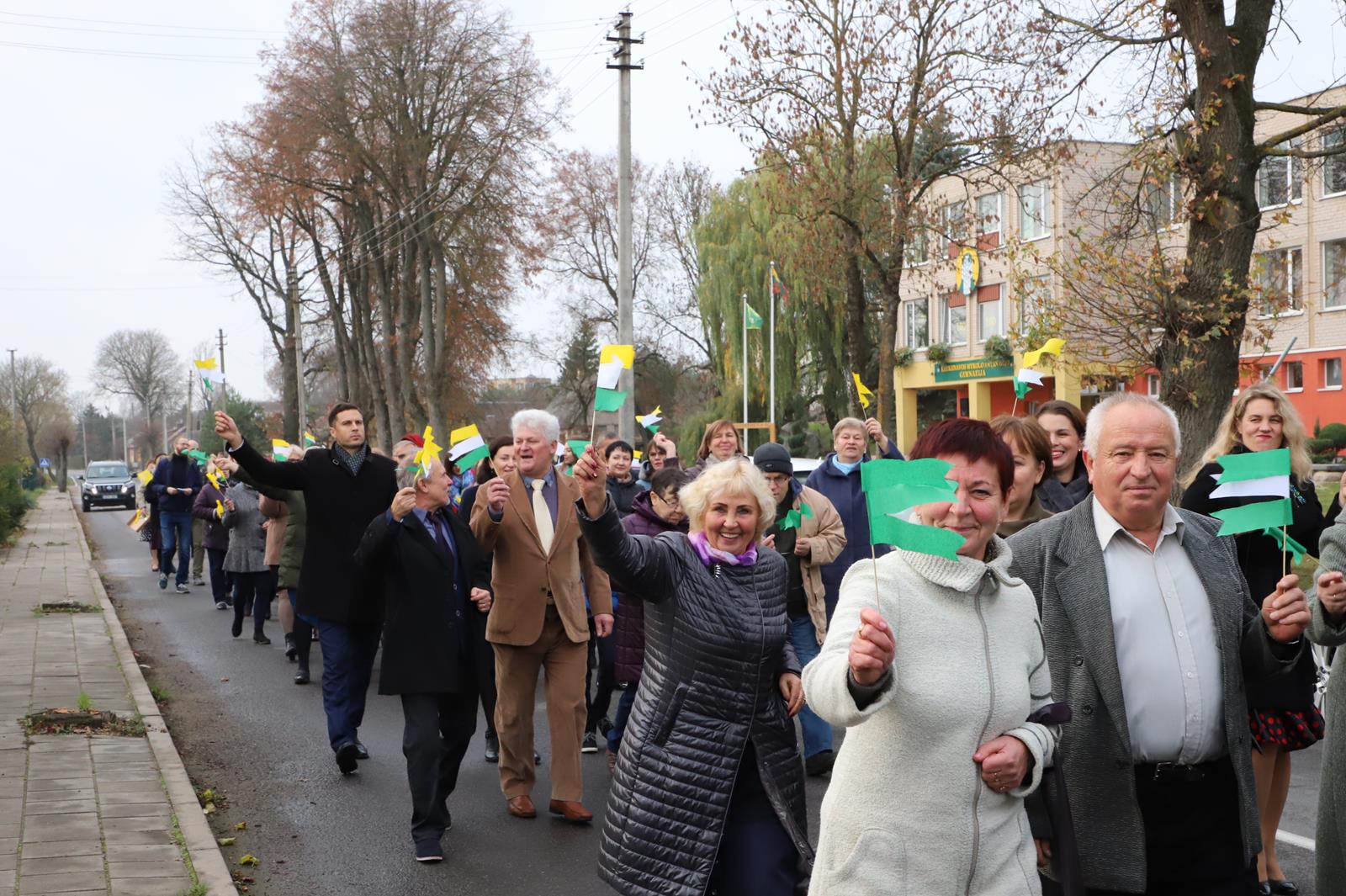 Šaltoką šeštadienį Krekenavoje aidi senokai besimačiusiųjų klasės draugų ir kolegų juokas, akimirkas sušildo bendri mokykliniai prisiminimai, o prieš vidurdienį prie M. Antanaičio gimnazijos iškėlus Krekenavos bendruomenės „Tiltai“ dovanotą šimtmečio vėliavą, per miestelį iki Kultūros centro nusidriekė spalvinga eisena.