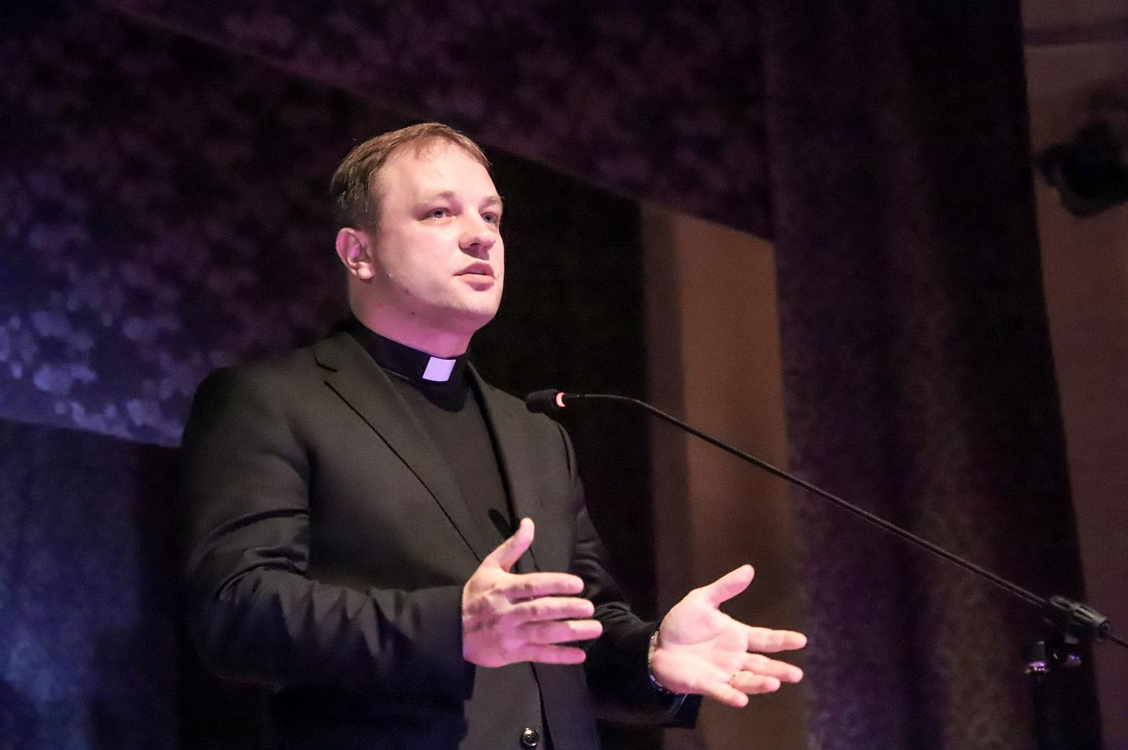 „Taigi, gimnazija pirmiausia yra treniruočių vieta. Ta vieta, kur ruošiamasi gyvenimo varžyboms“, – kalbėjo dvasininkas.