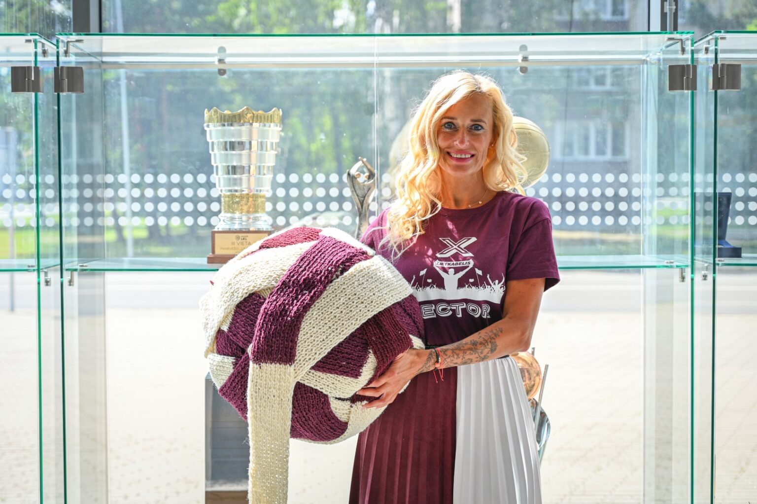 Visą vasarą krepšinio aistruoliai mezgė ilgiausią Lietuvoje „7bet-Lietkabelio“ klubo spalvų – bordinės ir baltos – daugiau nei kilometro ilgio šaliką.