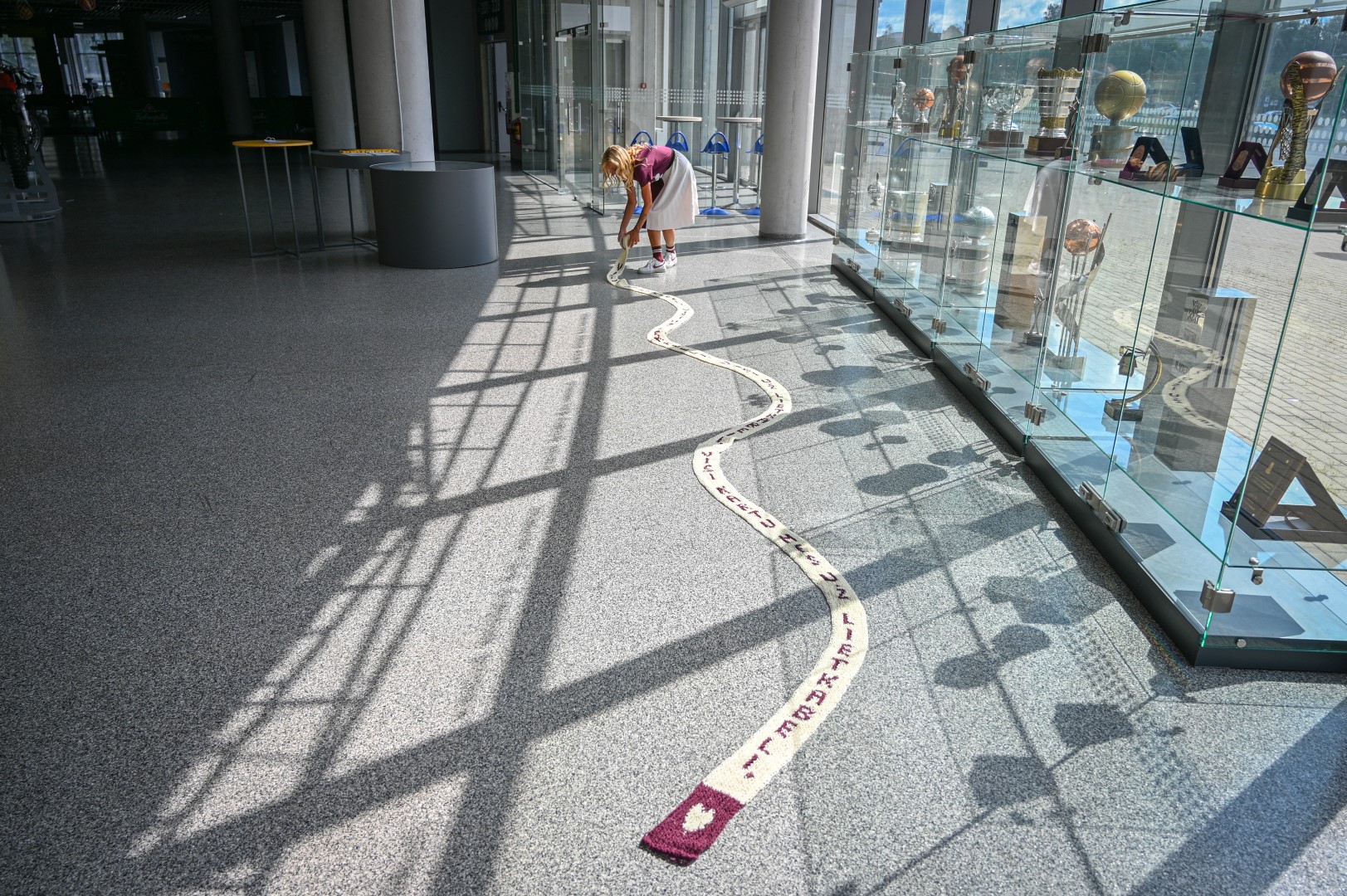 Visą vasarą krepšinio aistruoliai mezgė ilgiausią Lietuvoje „7bet-Lietkabelio“ klubo spalvų – bordinės ir baltos – daugiau nei kilometro ilgio šaliką.