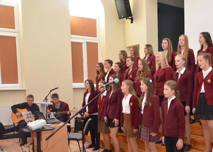 Konferencijos metu skambėjo K. Paltaroko gimnazijos choro giesmės, gitara pritariant A. Chalikovui.