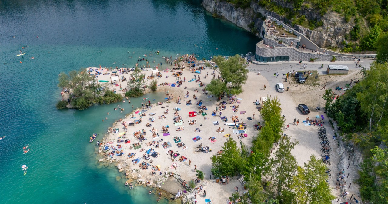 Virš ežero įrengtas apžvalgos takas, nuo kurio atsiveria įspūdingi vaizdai, baseinai, poilsio zonos.