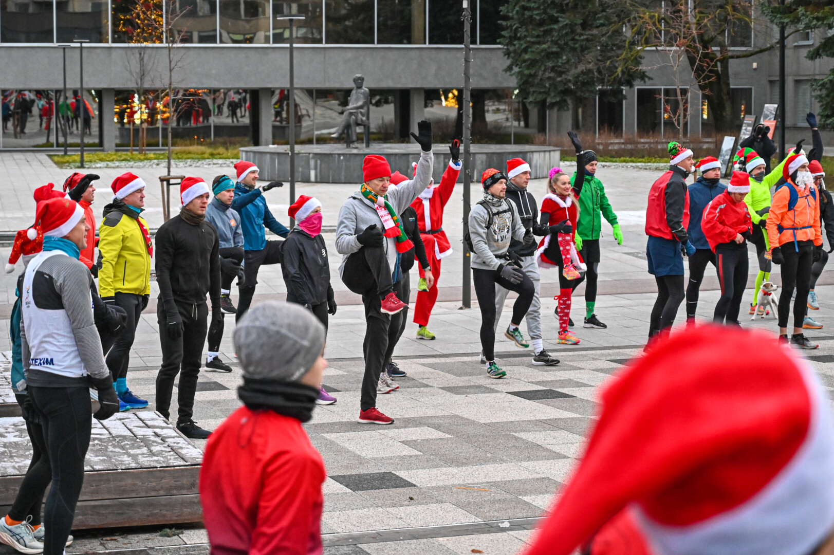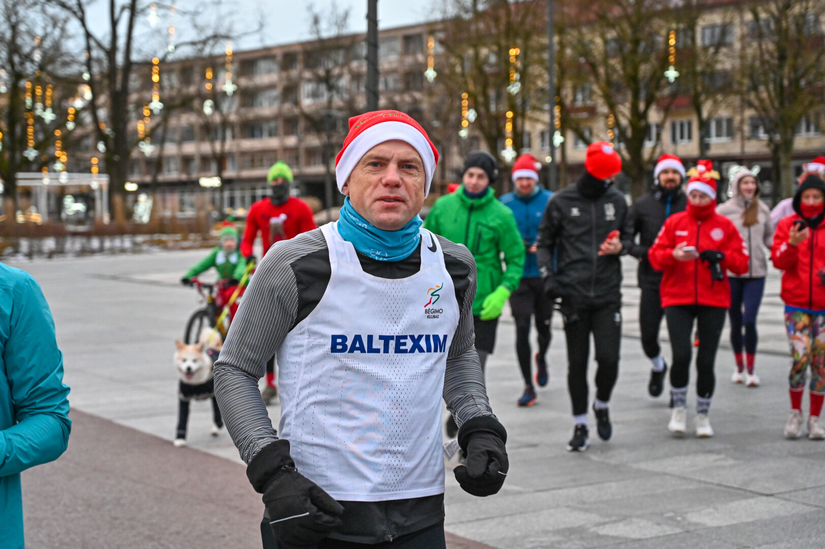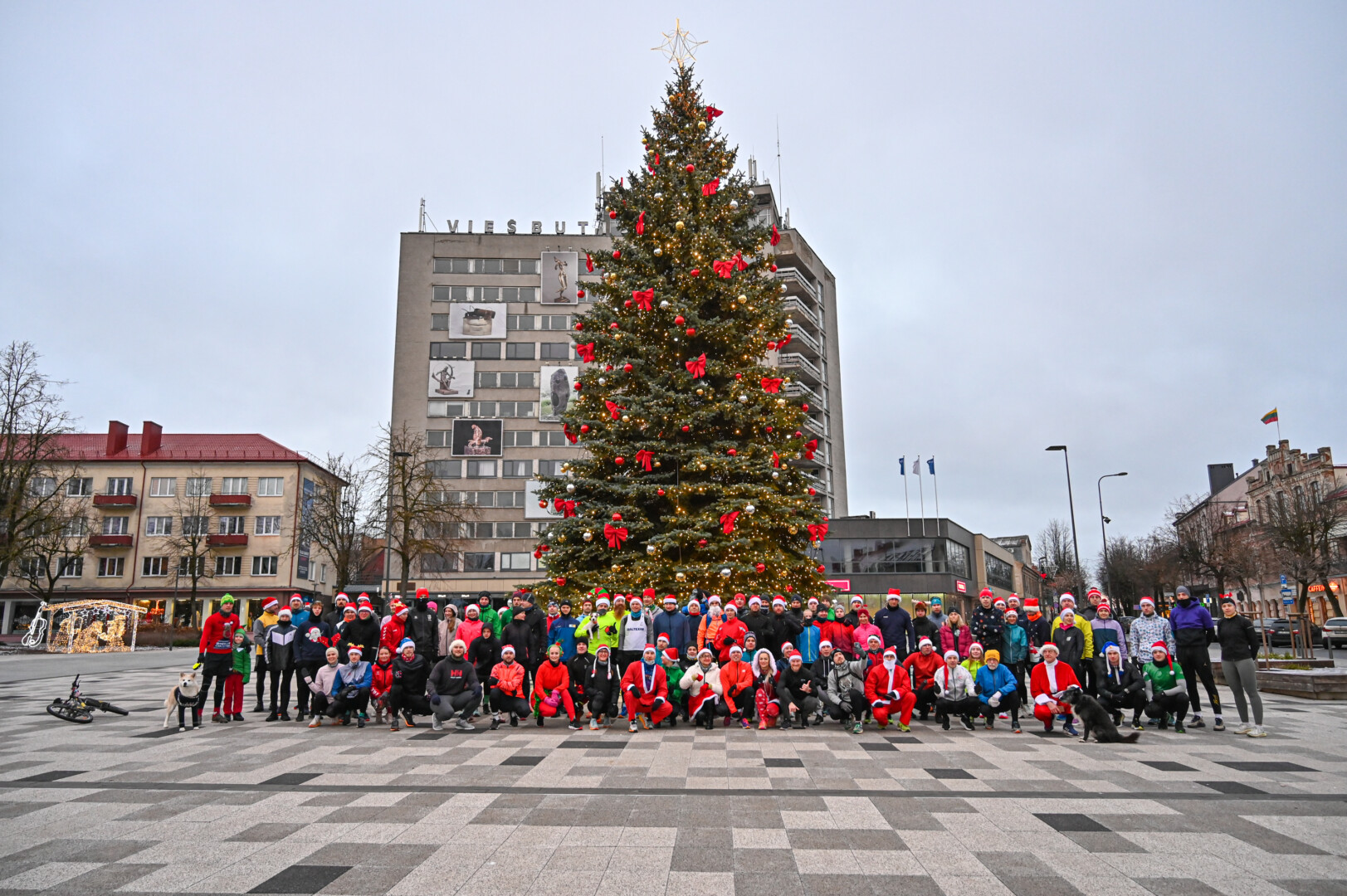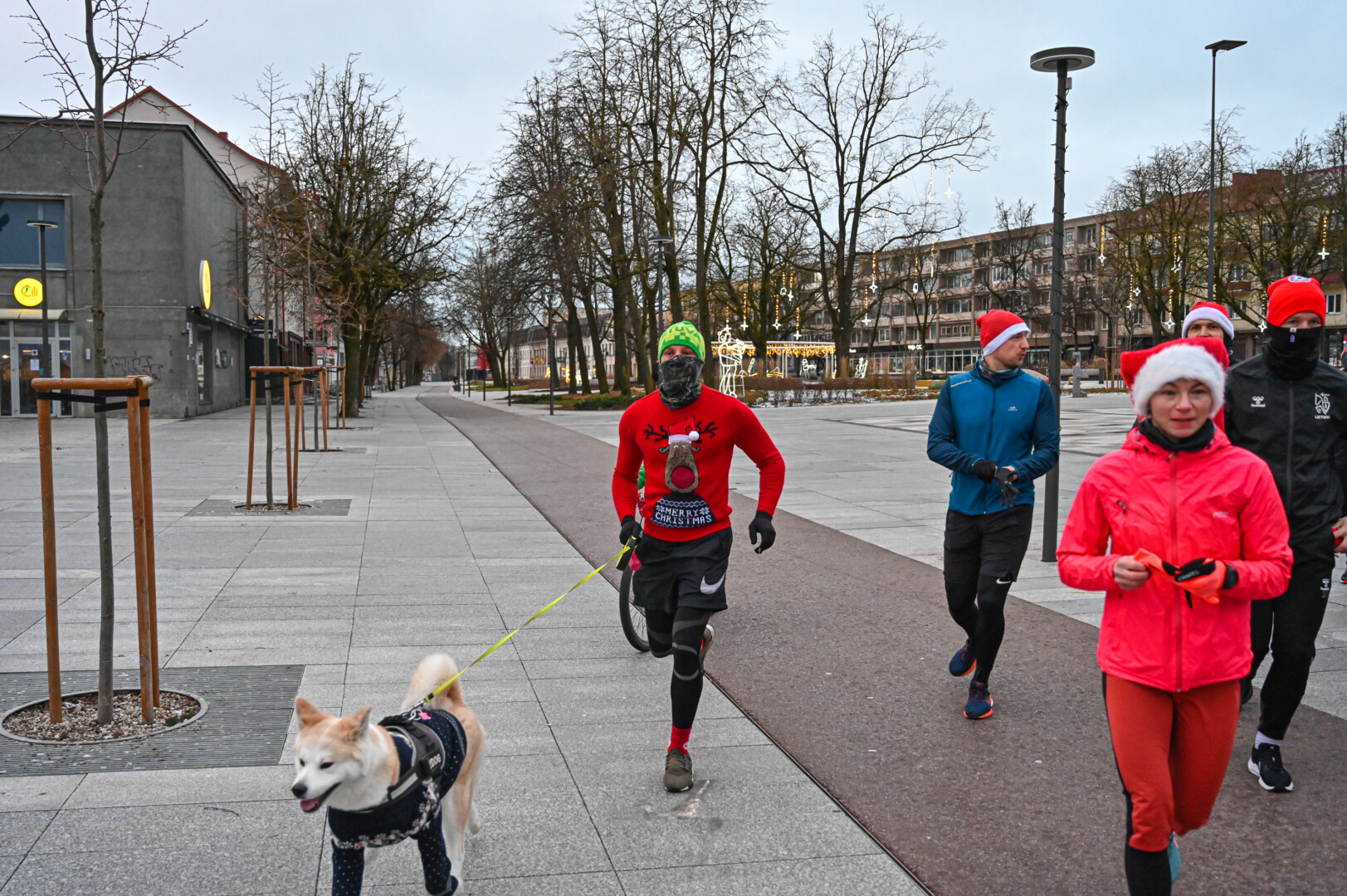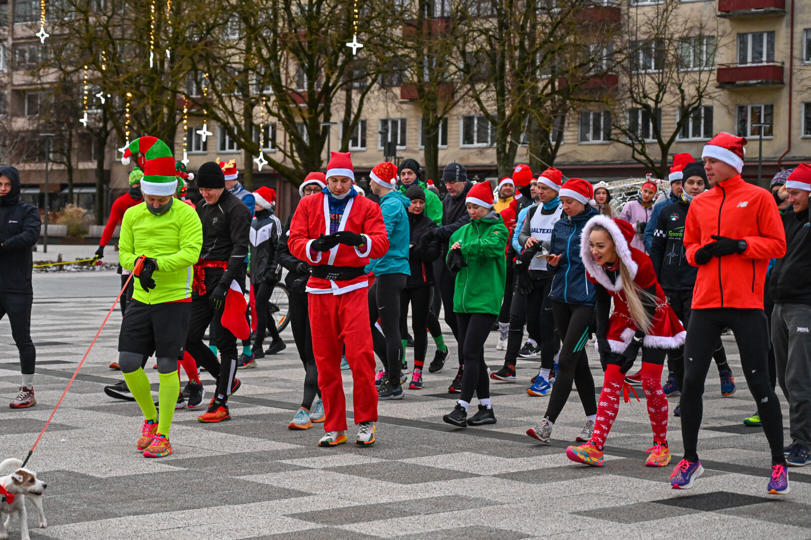 Kūčių dienos rytą kone šimtas entuziastų Laisvės aikštėje prie girliandomis mirgančios eglės startavo kalėdiniam bėgimui per miestą.