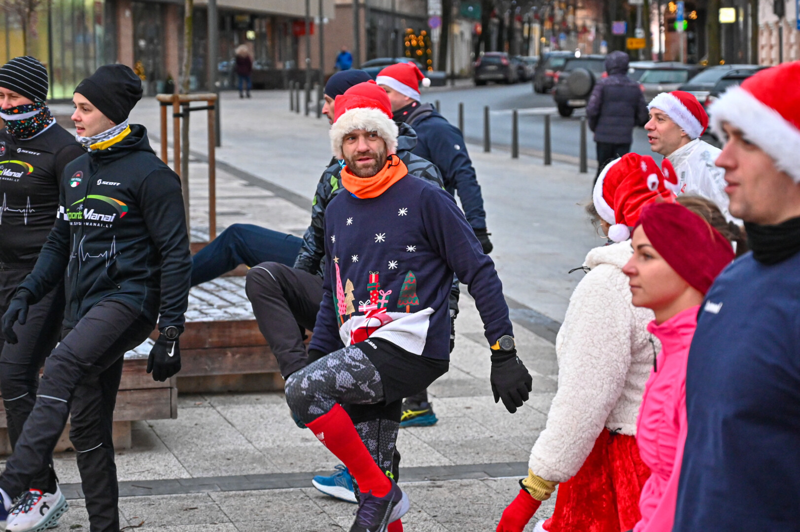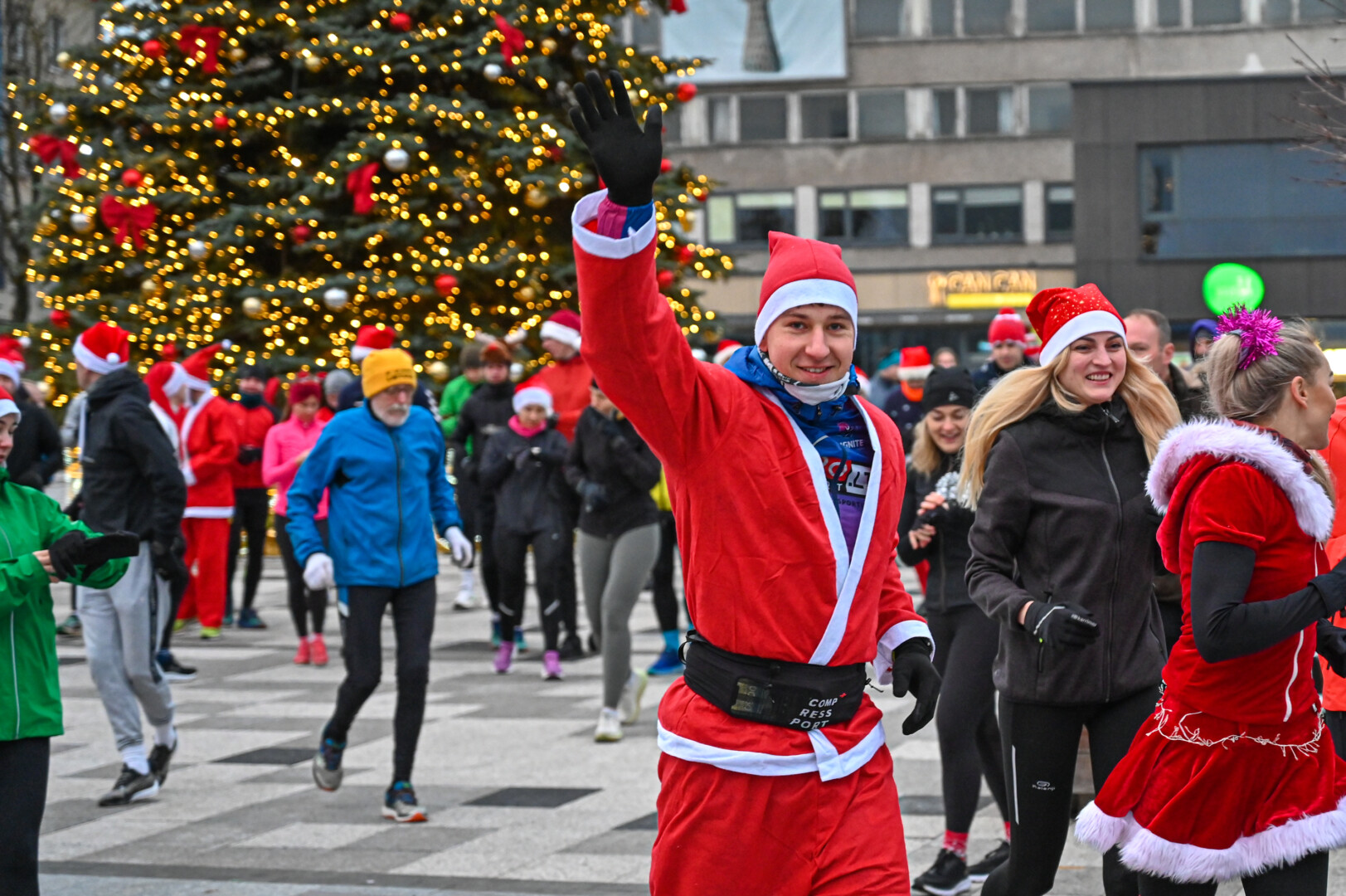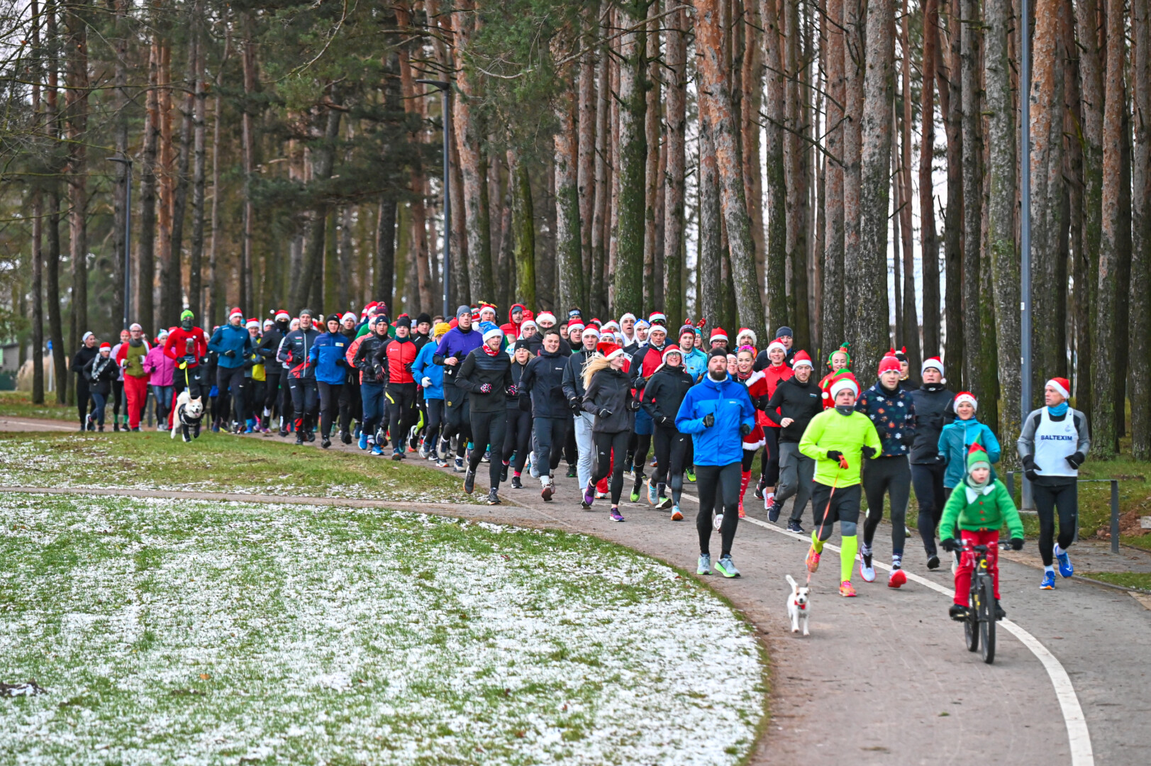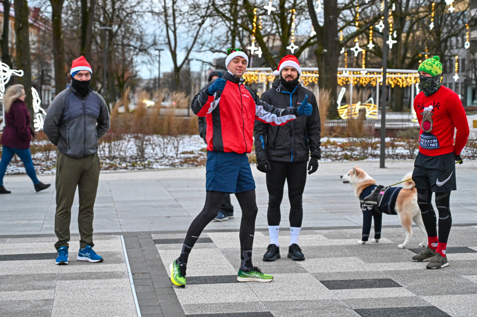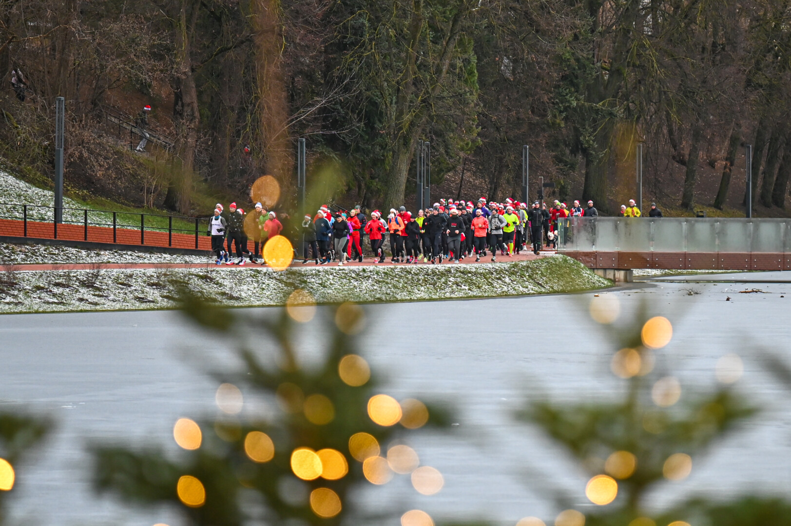 Kūčių dienos rytą kone šimtas entuziastų Laisvės aikštėje prie girliandomis mirgančios eglės startavo kalėdiniam bėgimui per miestą.