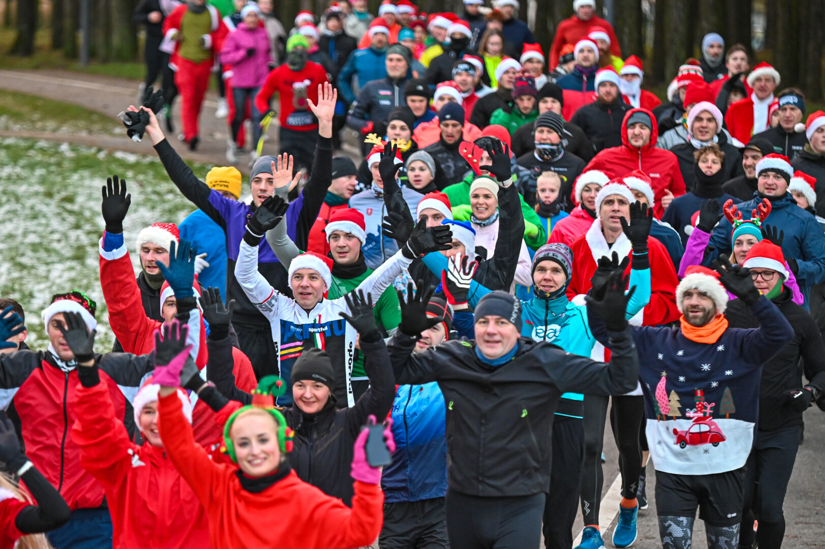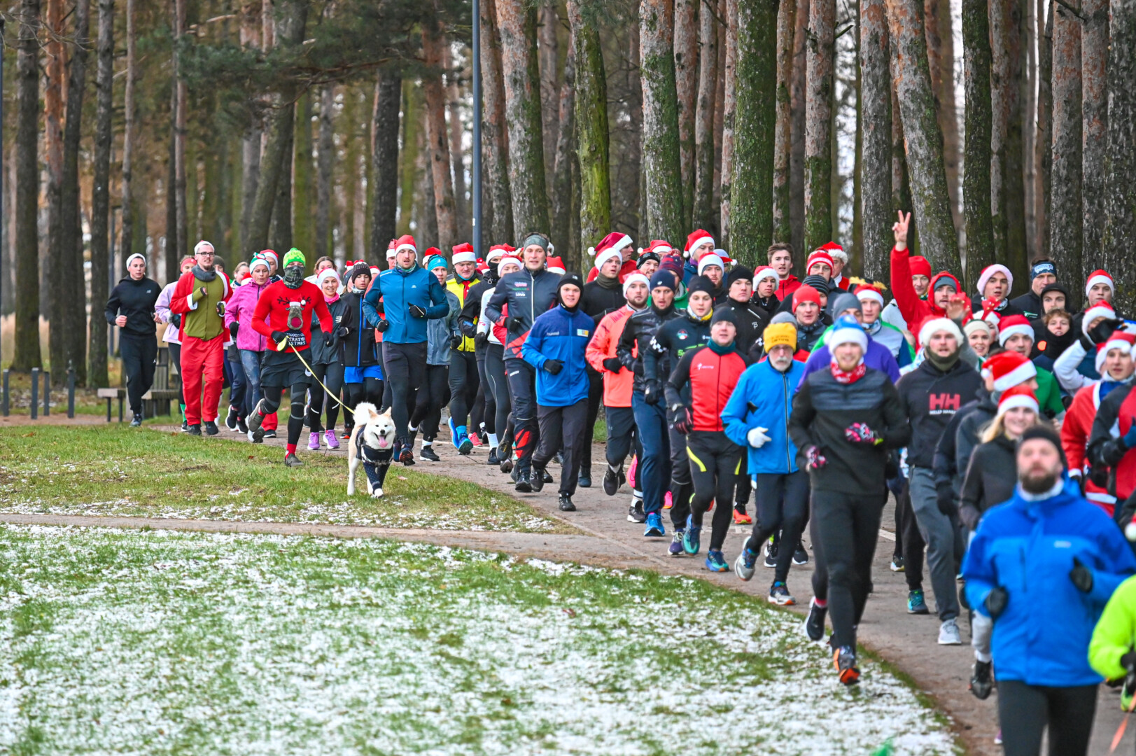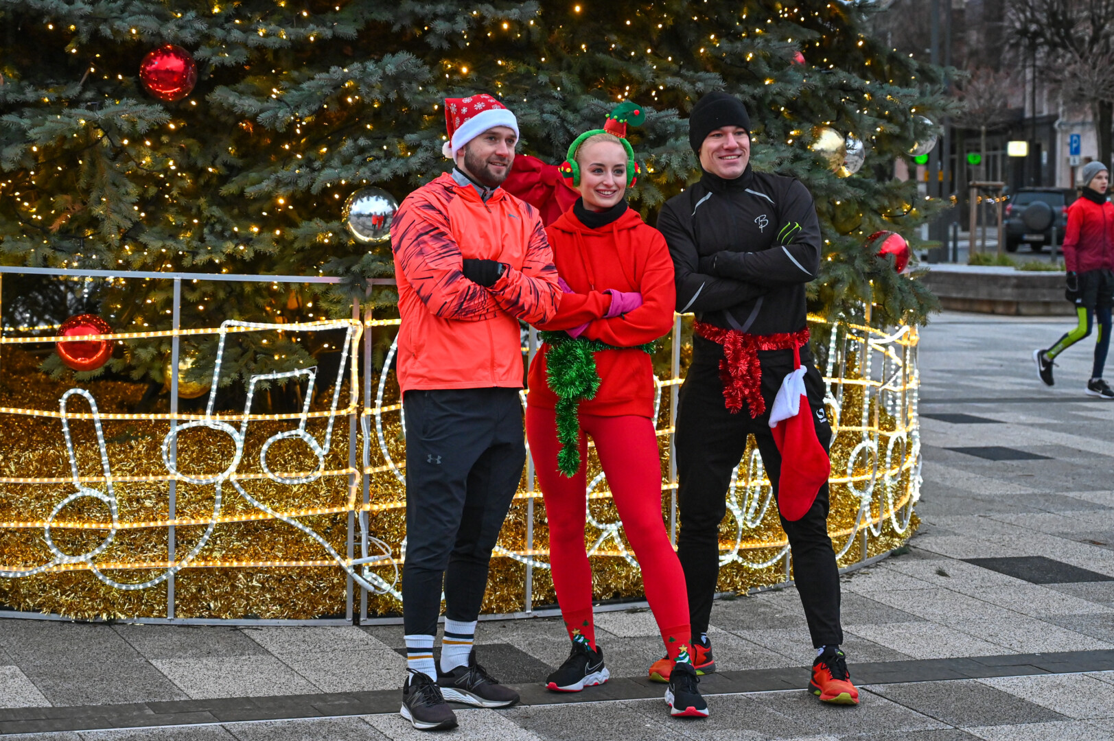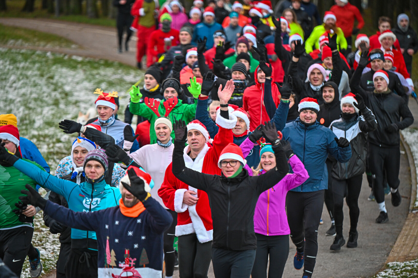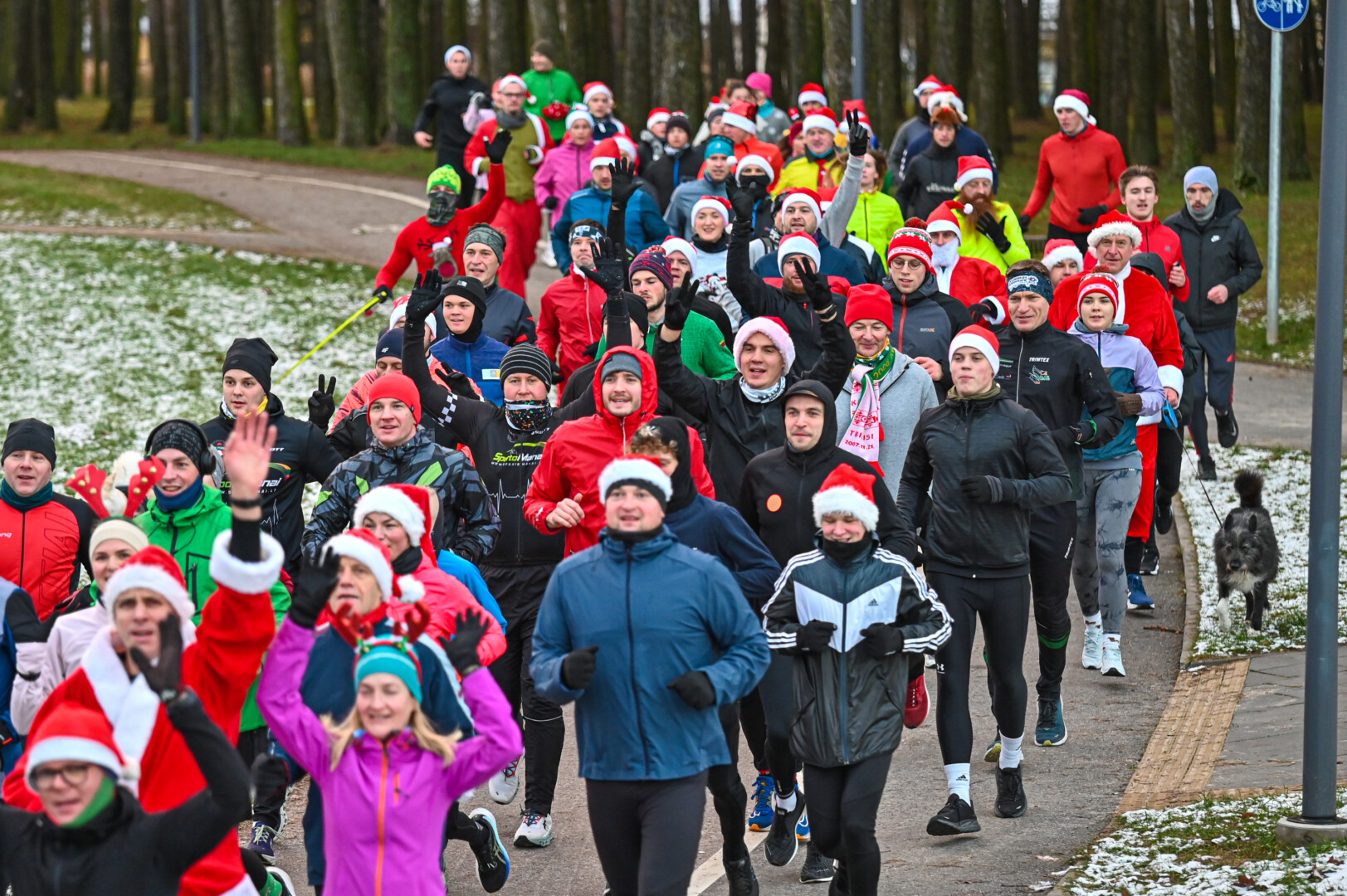 Kūčių dienos rytą kone šimtas entuziastų Laisvės aikštėje prie girliandomis mirgančios eglės startavo kalėdiniam bėgimui per miestą.