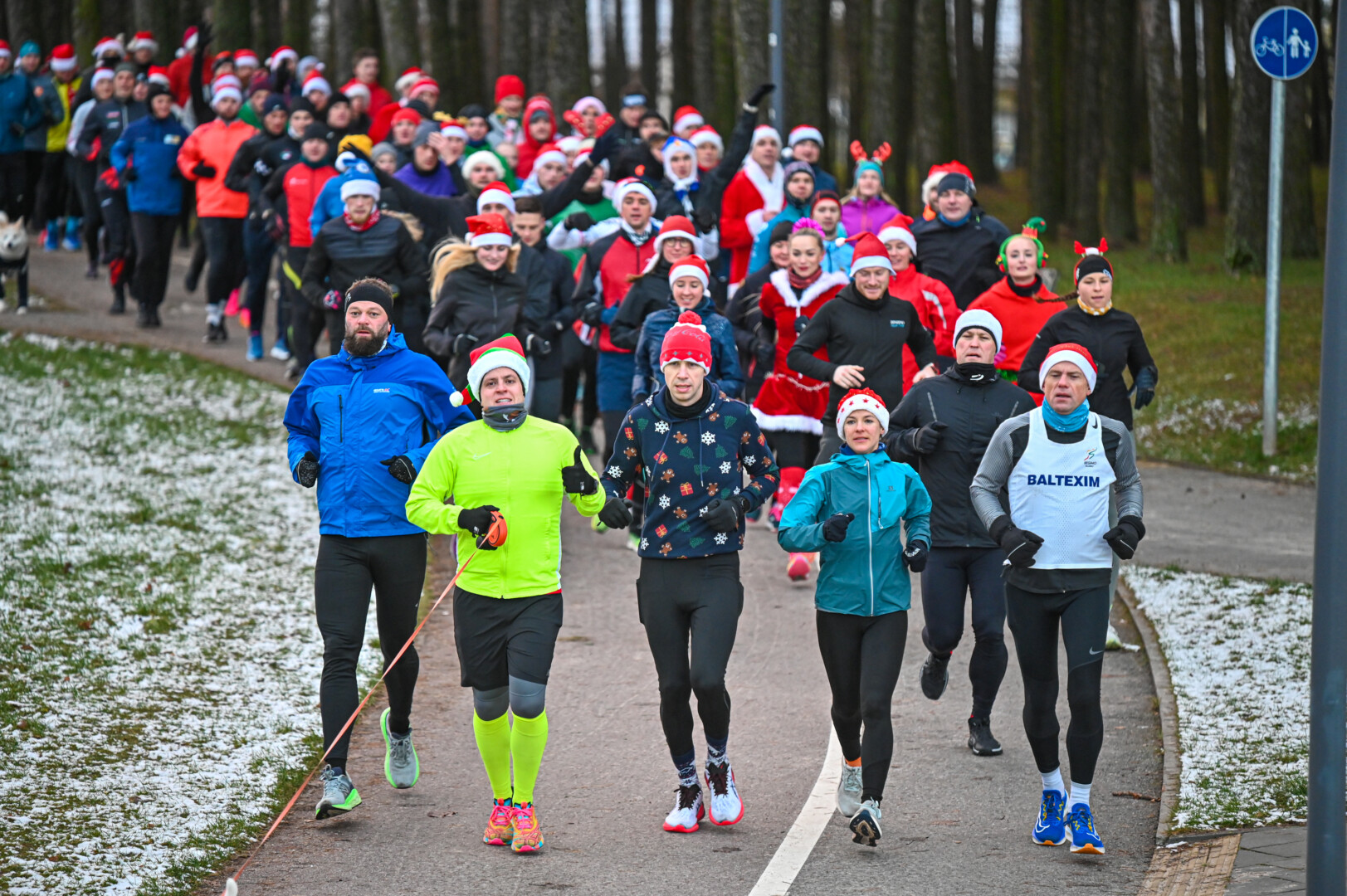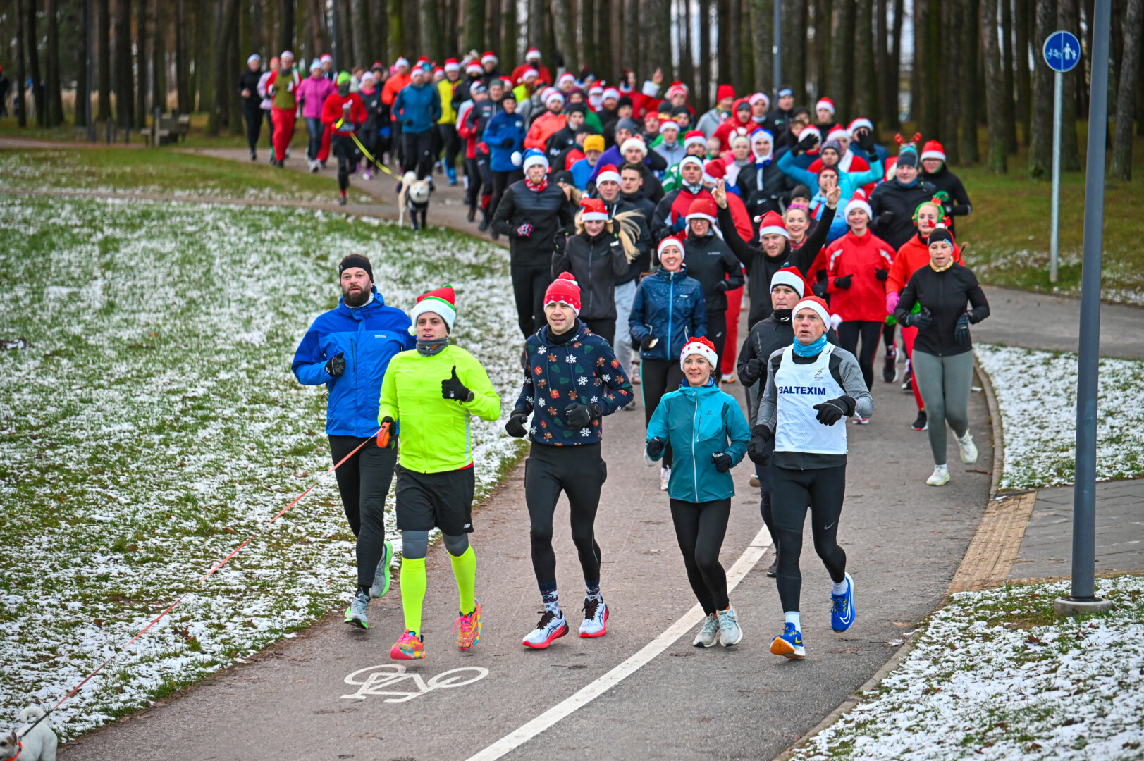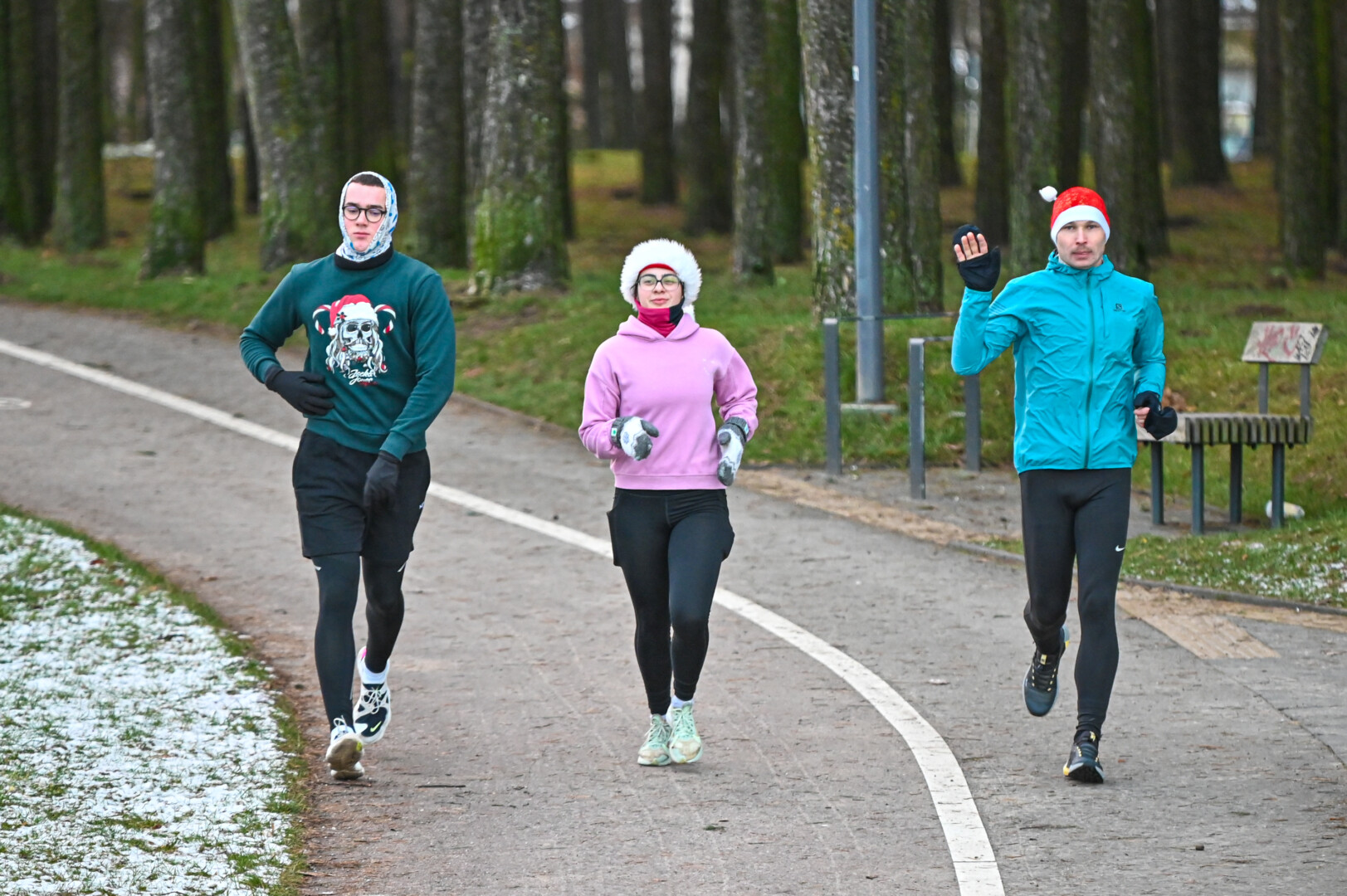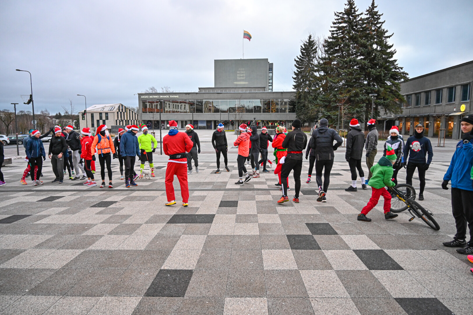 Kūčių dienos rytą kone šimtas entuziastų Laisvės aikštėje prie girliandomis mirgančios eglės startavo kalėdiniam bėgimui per miestą.