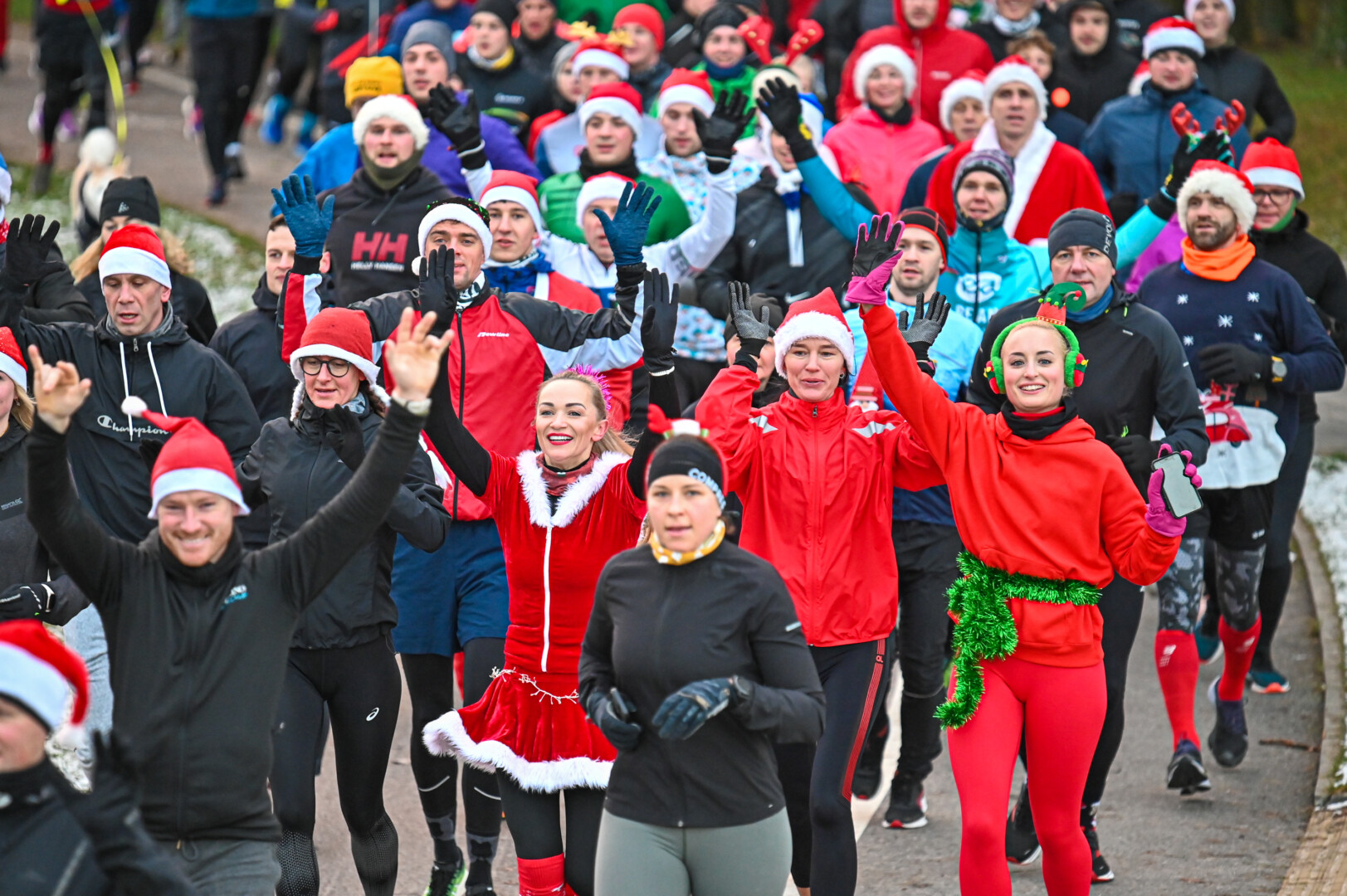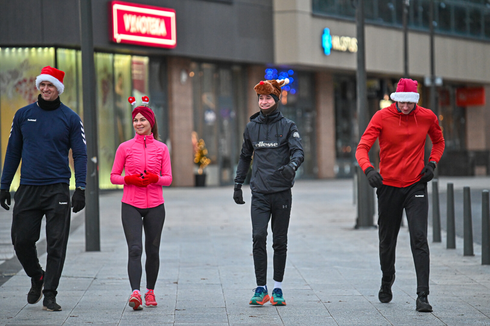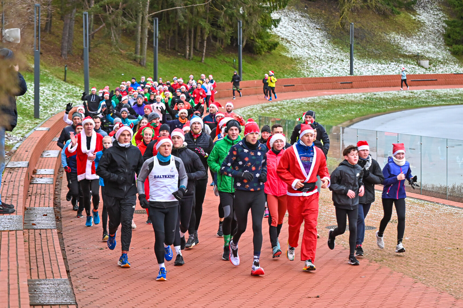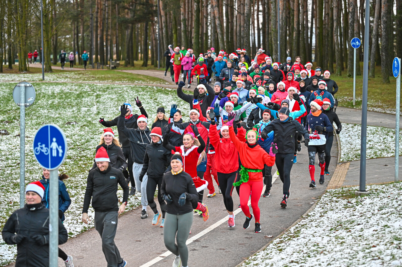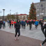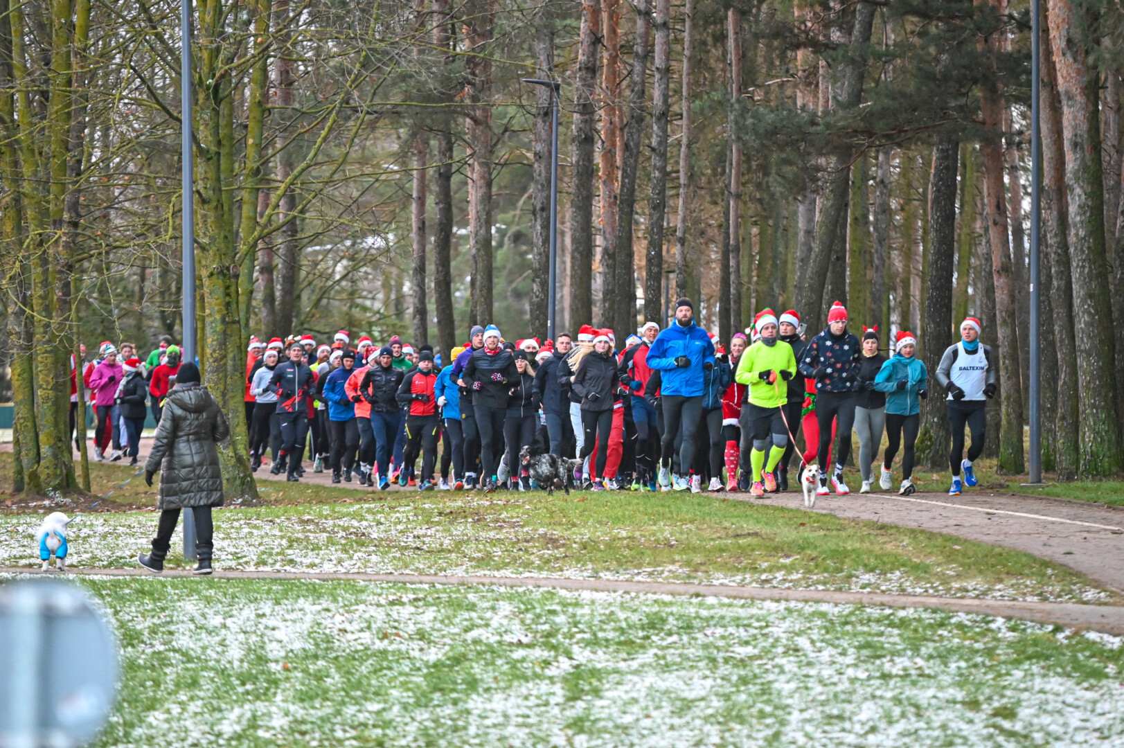 Kūčių dienos rytą kone šimtas entuziastų Laisvės aikštėje prie girliandomis mirgančios eglės startavo kalėdiniam bėgimui per miestą.