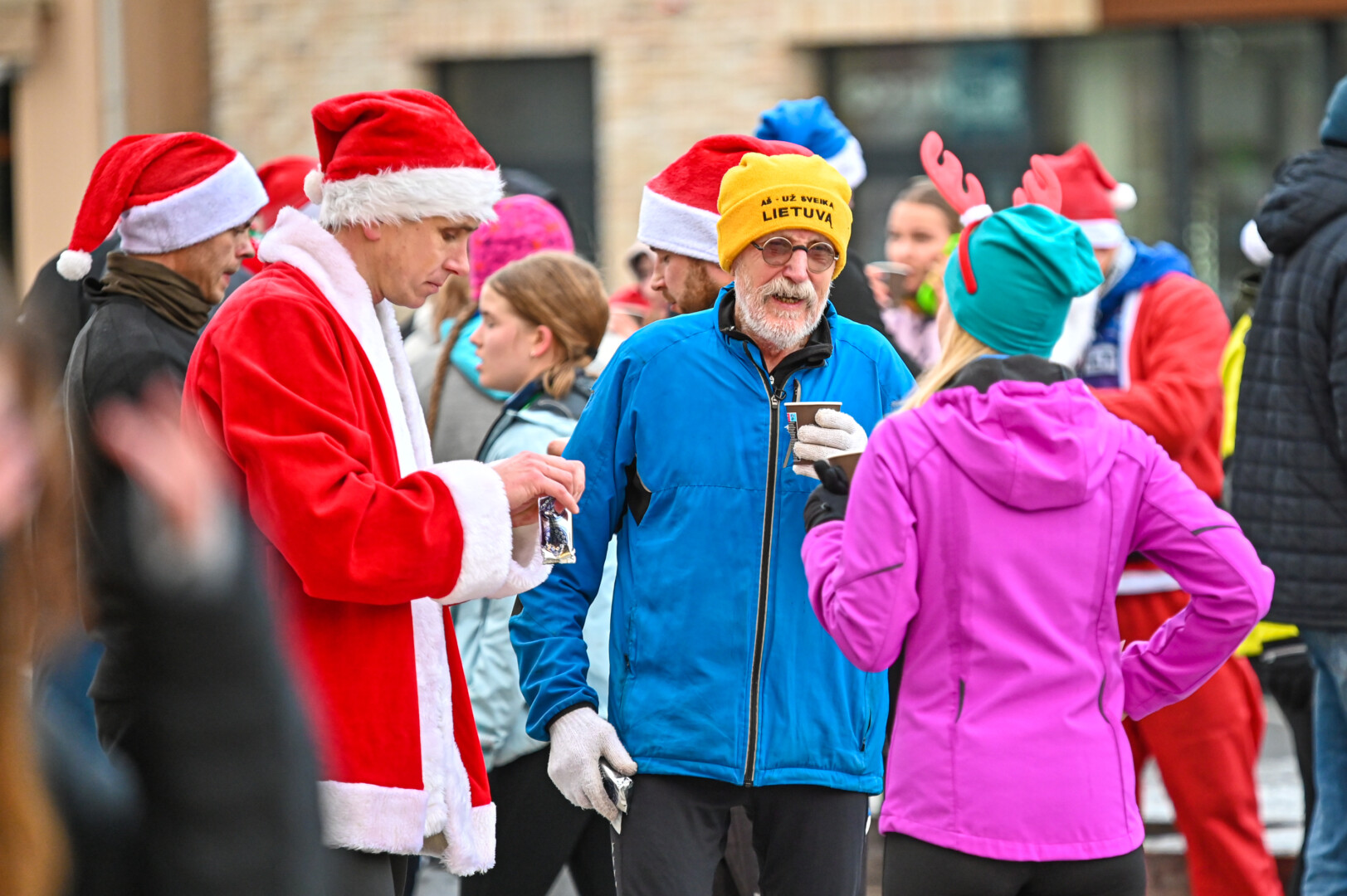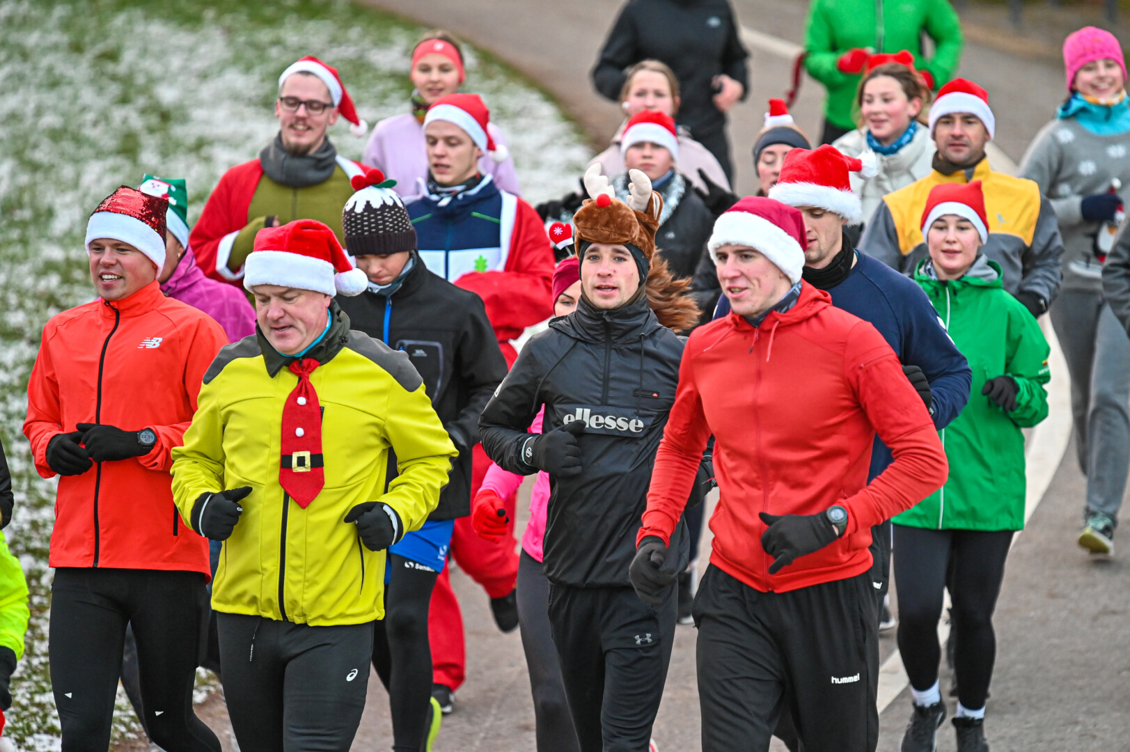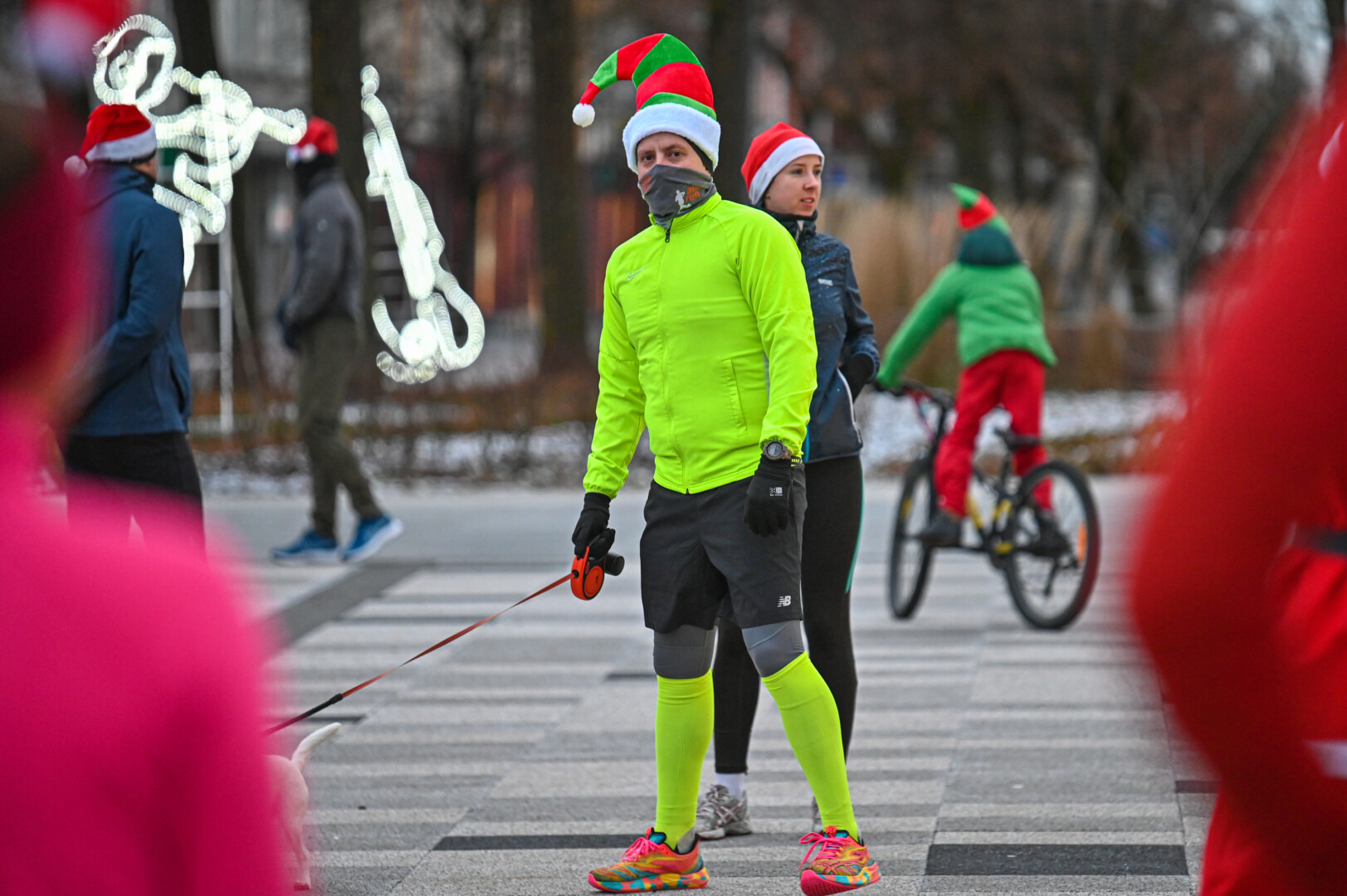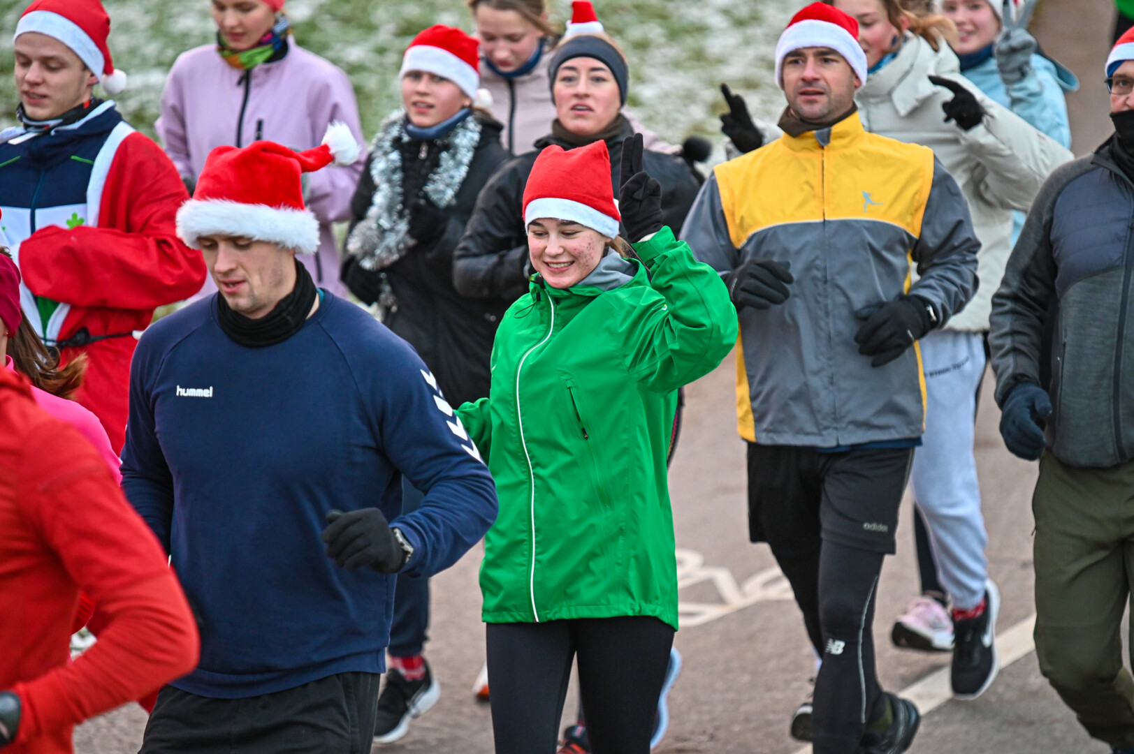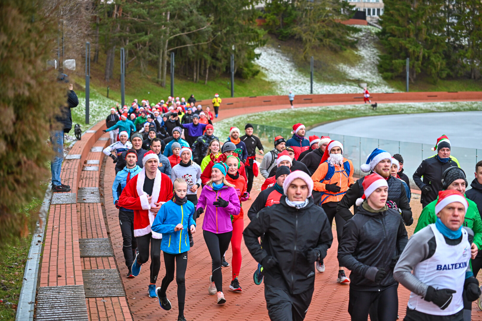 Kūčių dienos rytą kone šimtas entuziastų Laisvės aikštėje prie girliandomis mirgančios eglės startavo kalėdiniam bėgimui per miestą.