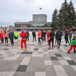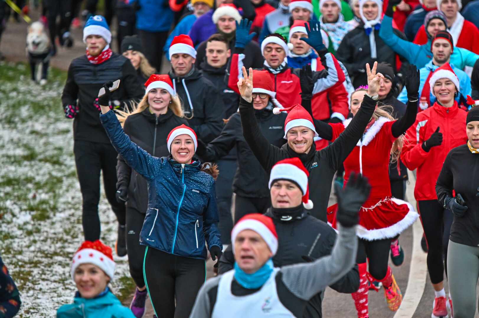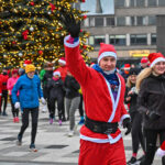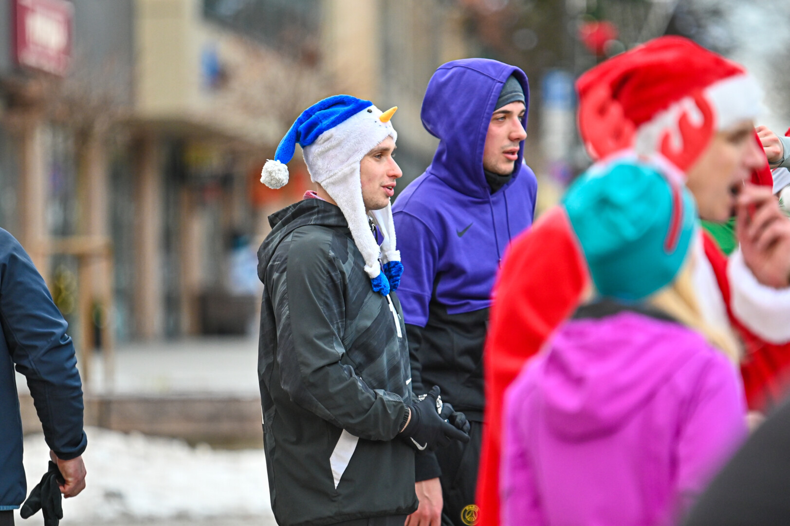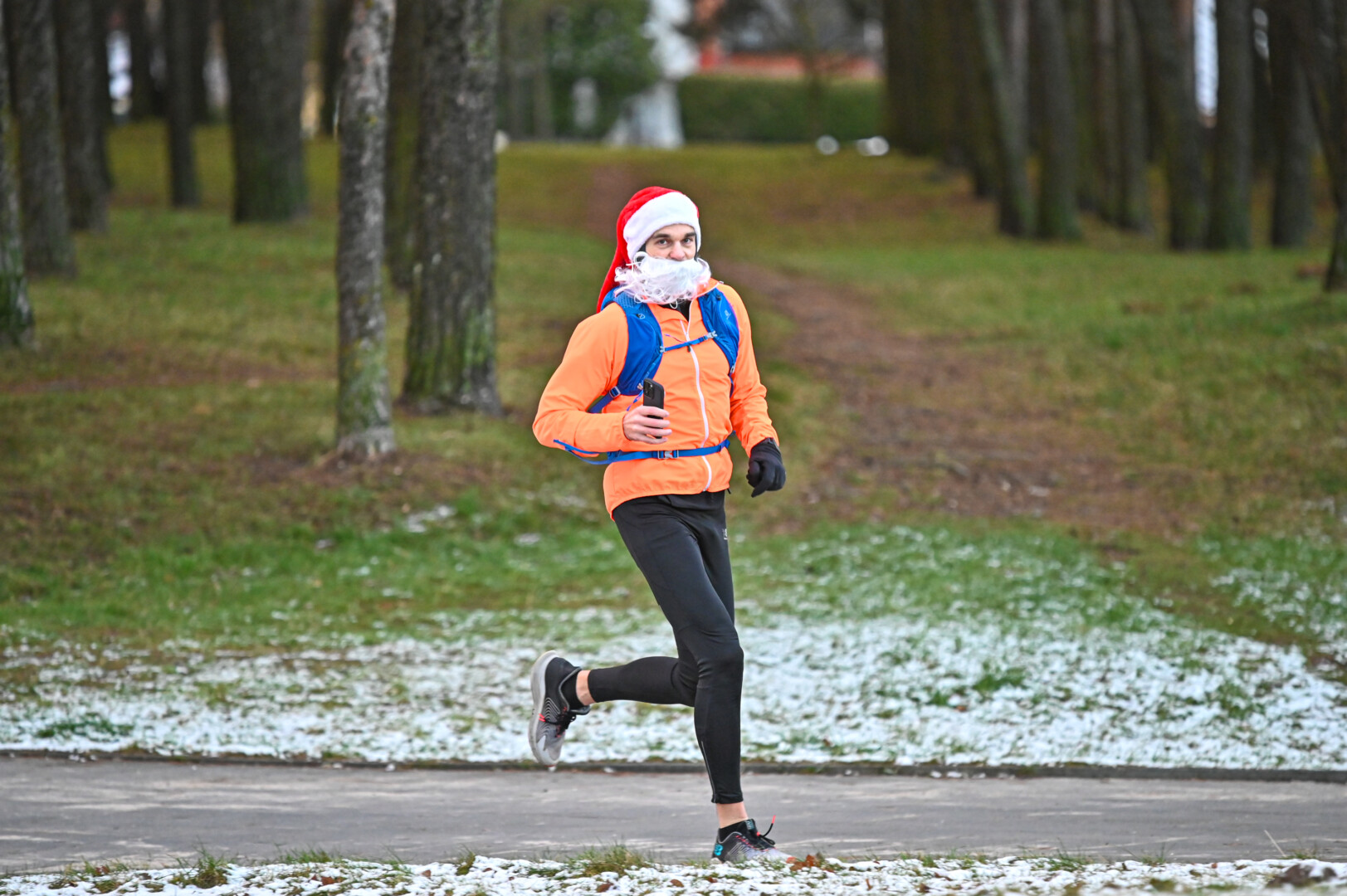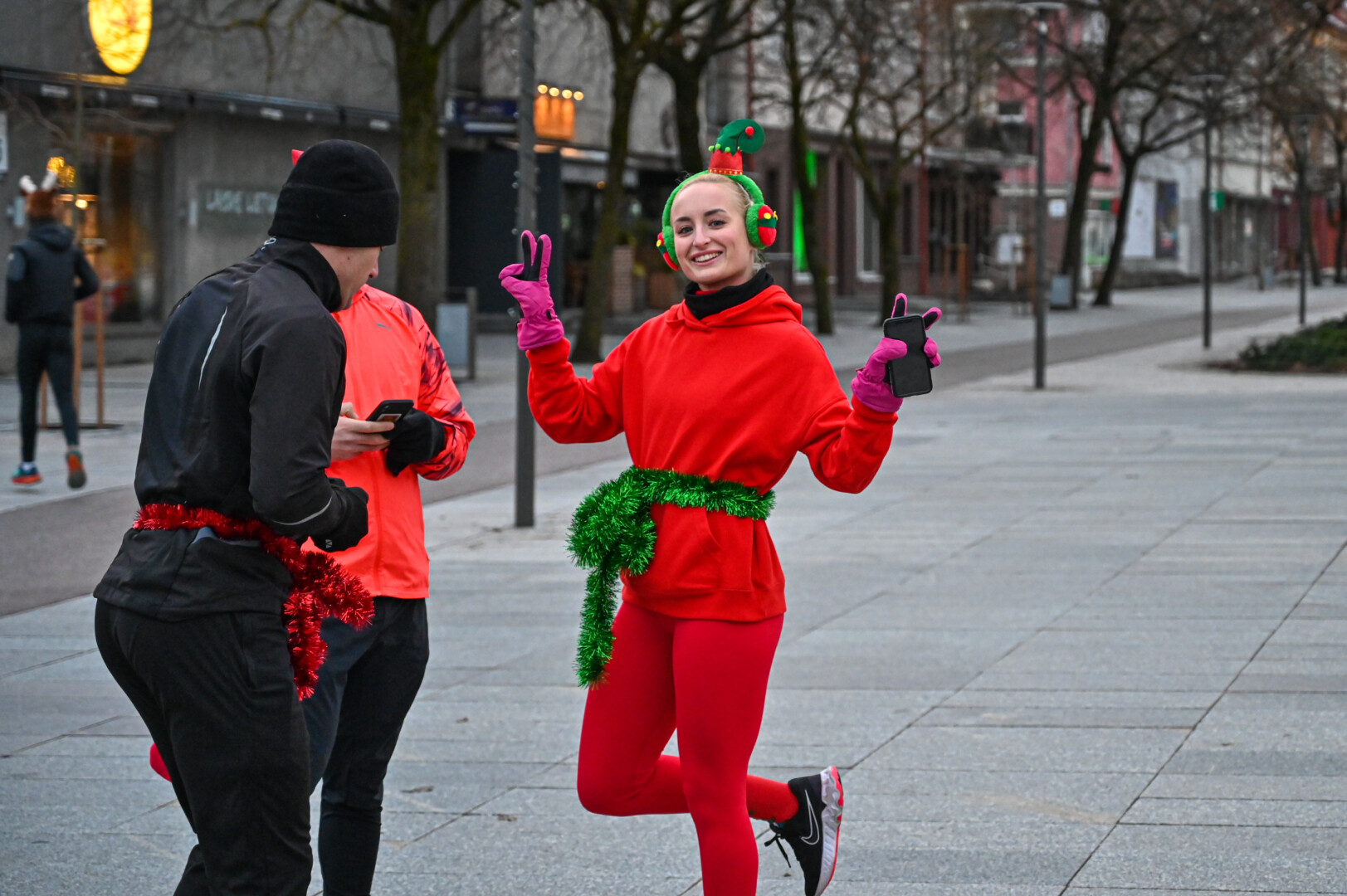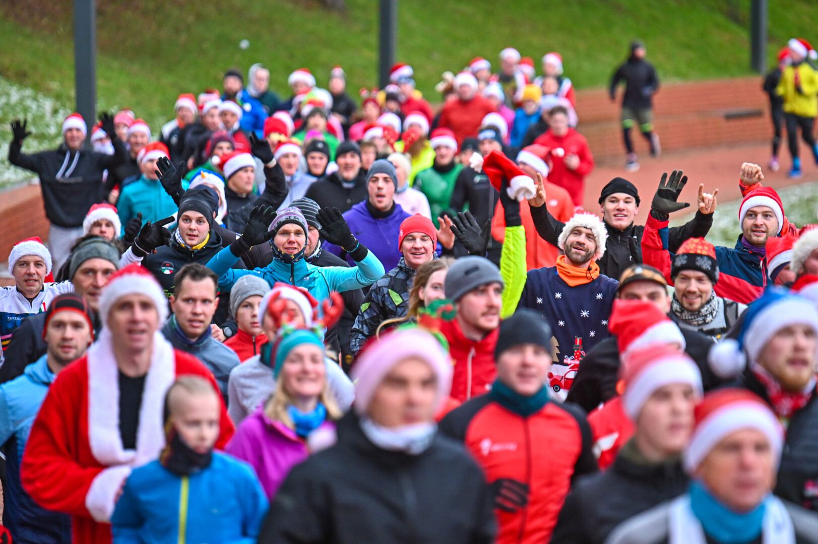 Kūčių dienos rytą kone šimtas entuziastų Laisvės aikštėje prie girliandomis mirgančios eglės startavo kalėdiniam bėgimui per miestą.