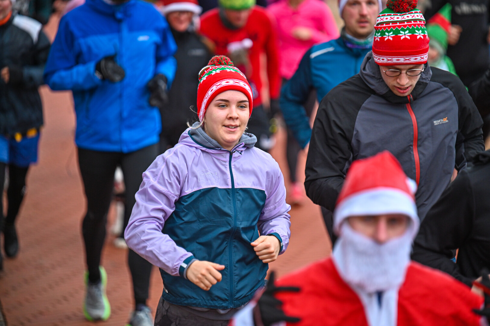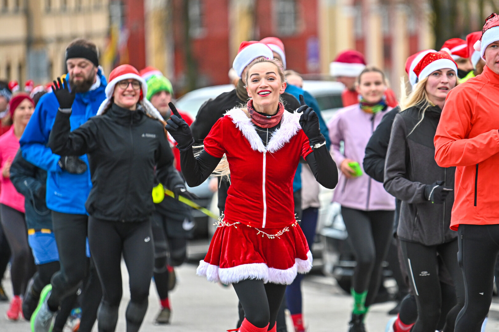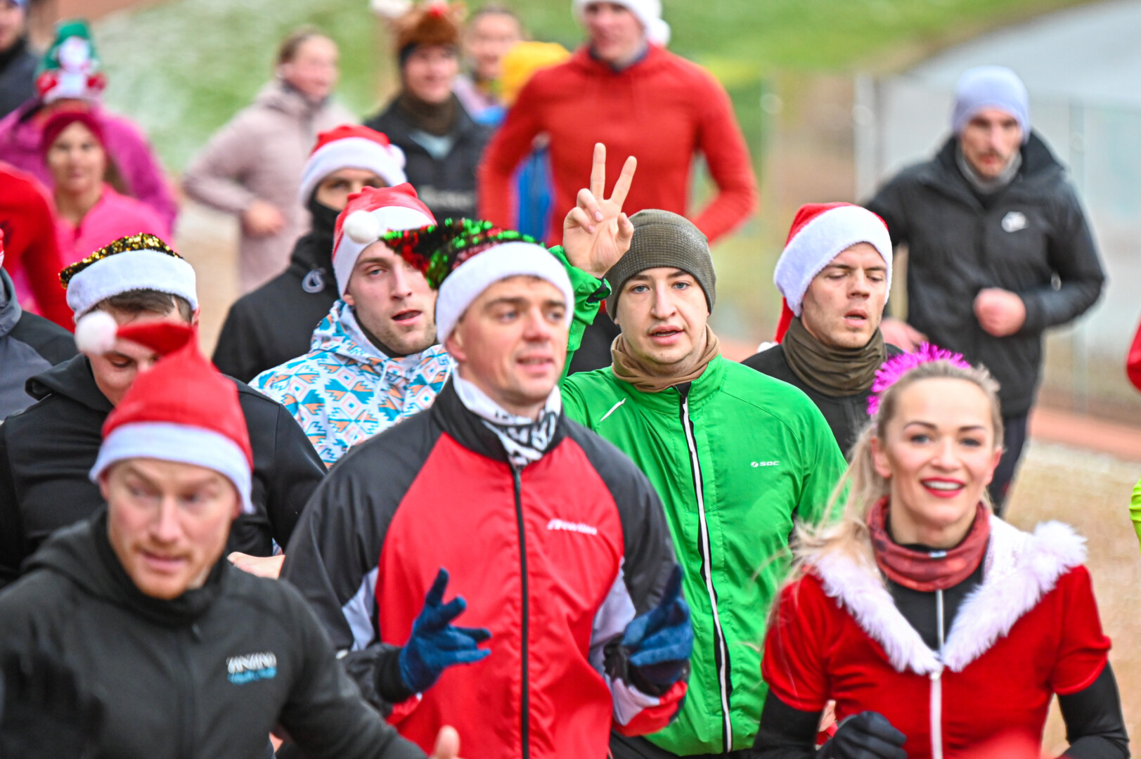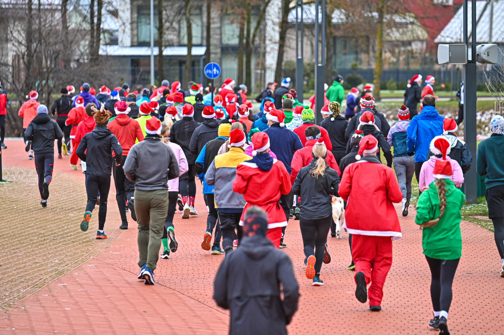 Nykštukų kepuraitėmis, Kalėdų senelio barzdomis ir rūbais bei kitais kalėdiniais atributais pasipuošę bėgikai iš aikštės leidosi per Senvagę, iš jos – Taikos alėja pagal Nevėžio upę iki Kultūros ir poilsio parko, ten apsukę ratą grįžo į aikštę įveikę 10 kilometrų.