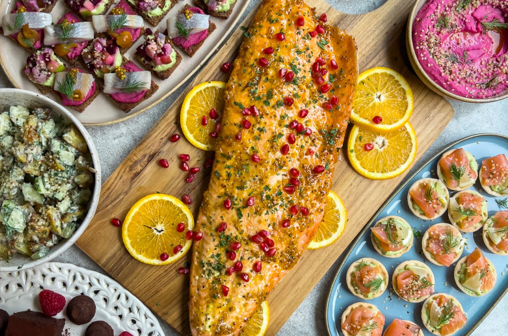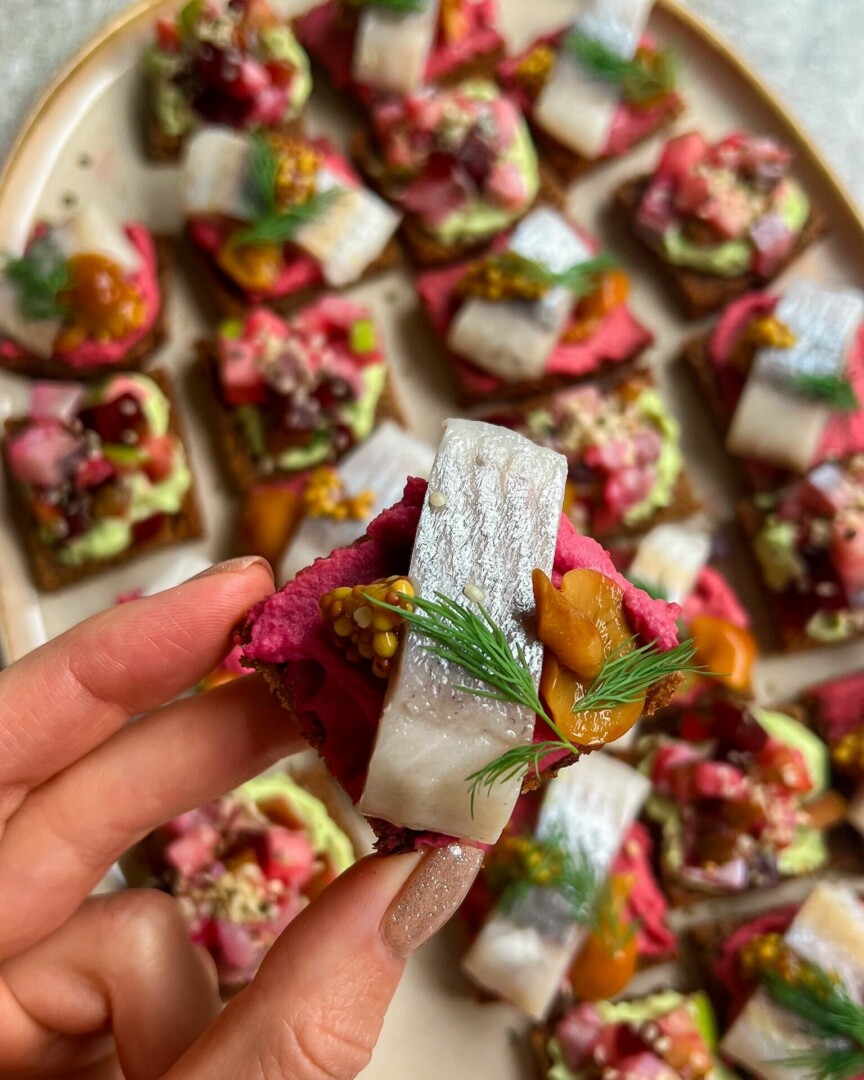 Sumuštinukai su burokėlių humusu ir silke