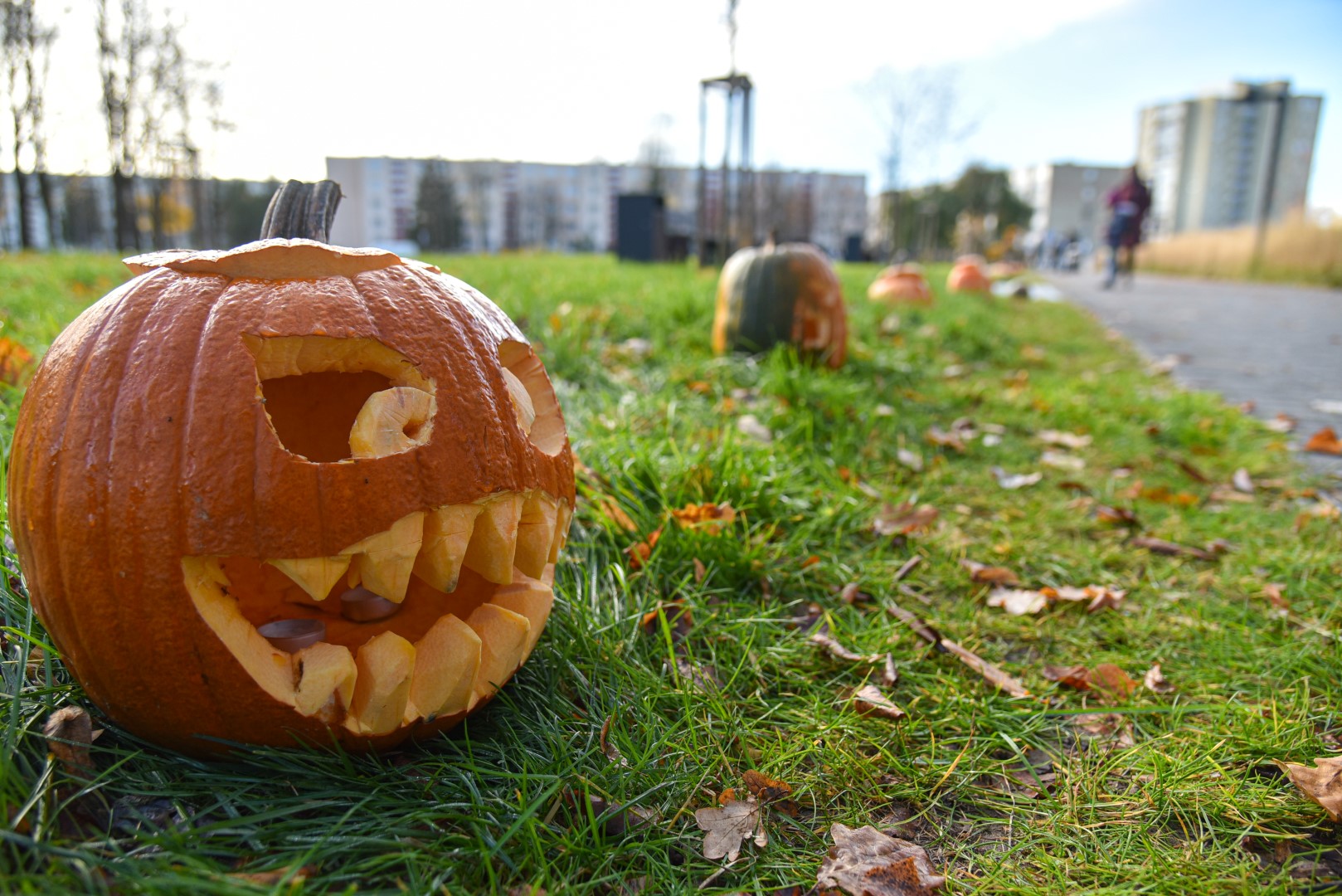 Viena lankomiausių Panevėžio vietų – Kultūros ir poilsio parkas – vakarais pasitinka panevėžiečius nušviestas žvakių šviesos, sklindančios iš moliūgų žibintų. Oranžiniai pūstažandžiai jau rikiuojasi šalia parko takų.
