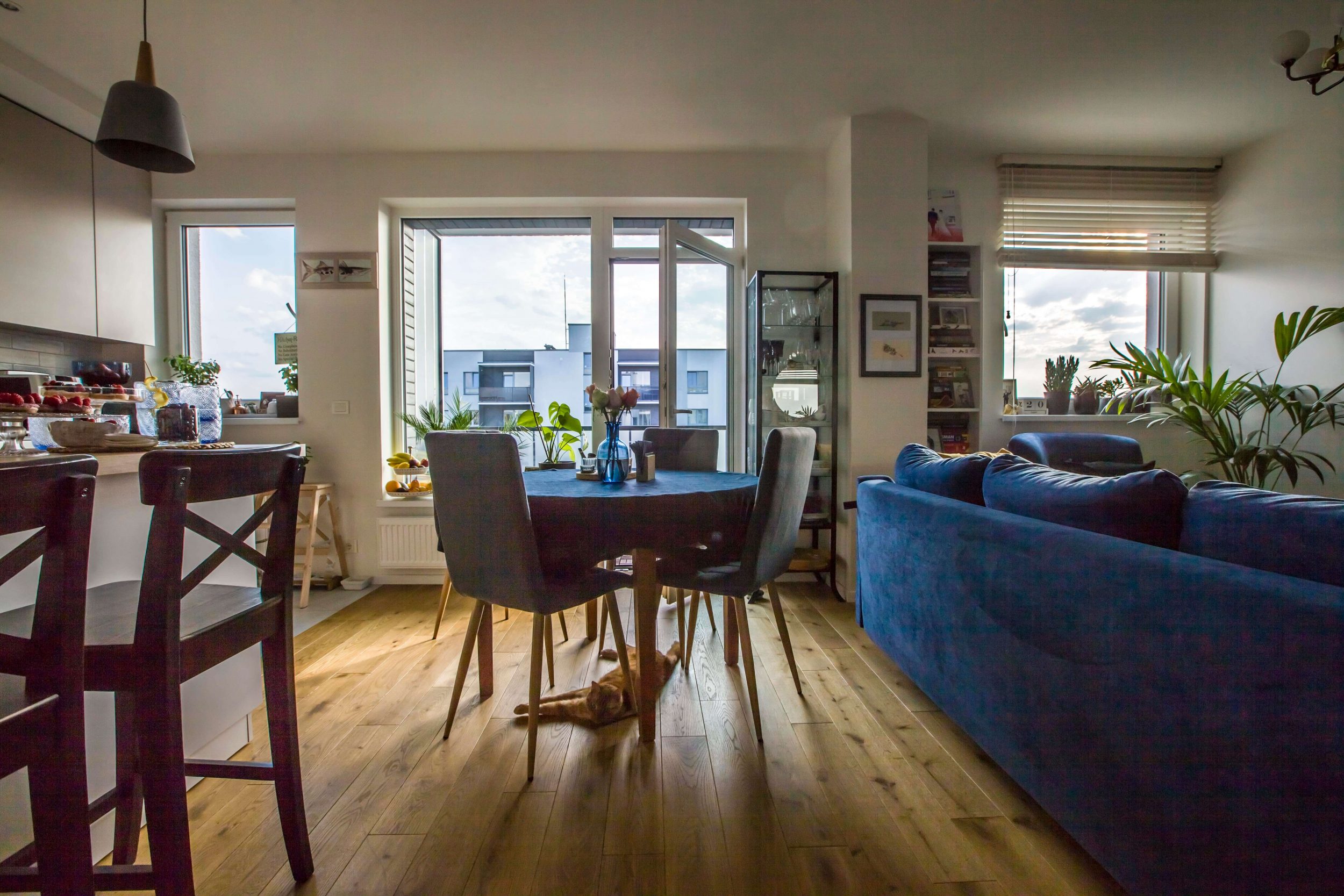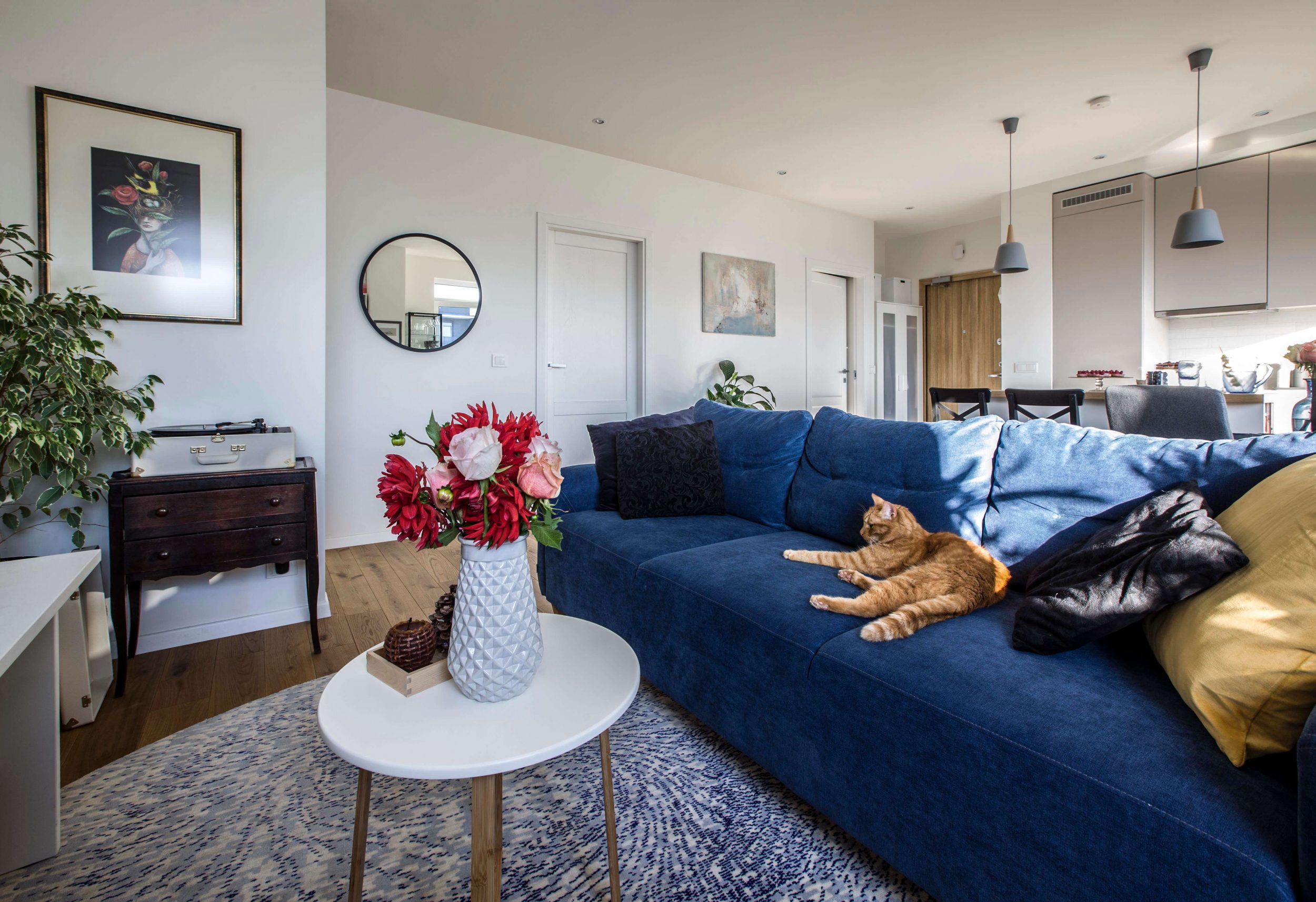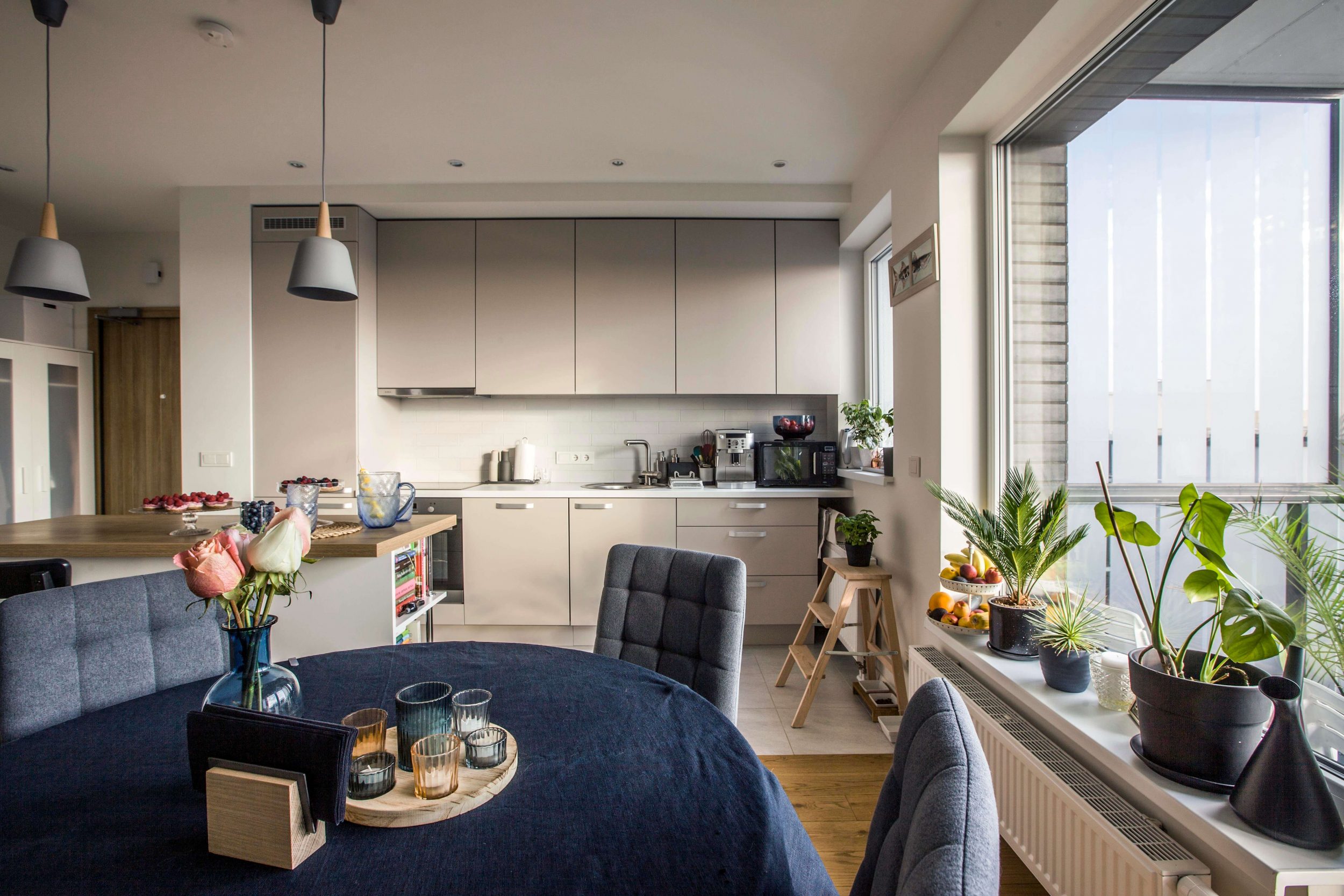 Į darnią visumą sugulusios knygos, gėlės, įrėminti kūriniai, stalo dekoro detalės ir namų kvapai gali suklaidinti, kad šeimininkai čia gyvena jau senokai. Iš tiesų Aistę ir Justą Strelčiūnus dar galima laikyti naujakuriais. Į būstą sostinės Naujamiesčio rajone pora su augintiniais – haskiu ir dviem katinais – įsikėlė praėjusių metų pabaigoje, prieš pat Naujuosius.