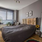 Beveik visus šiuose namuose esančius baldus – sienines spintas, sodrios mėlynos spalvos sofą ir fotelį, medinę konsolę, net apvalų veidrodį juodu rėmu – pagal užsakymą gamino lietuvių meistrai. Kai kas atkeliavo iš „Ikeos“, o štai staliuką patefonui pora aptiko sendaikčių parduotuvėje. Apvalus valgomojo stalas – artimųjų palikimas. Miegamojo lovą J. Strelčiūnas pats sumeistravo iš medinių palečių. „Galvojome – laikinai. Bet man dabar ji taip patinka, kad kol kas nesiruošiame nieko keisti“, – sako A. Strelčiūnė. Šalia miegamojo esantis mažasis kambarys, kurį jaukiai nušviečia vakarinės saulės spinduliai, skirtas pomėgiams – čia ant kėdės susirangoma su knyga arba išsitraukiama siuvimo mašina.