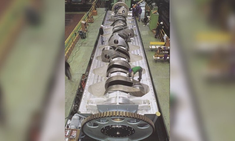 Vien alkūninis velenas sveria apie 300 tonų, o kiekvienas iš 14 stūmoklių – po 5 tonas, t. y. tiek, kiek sveria suaugęs dramblys.