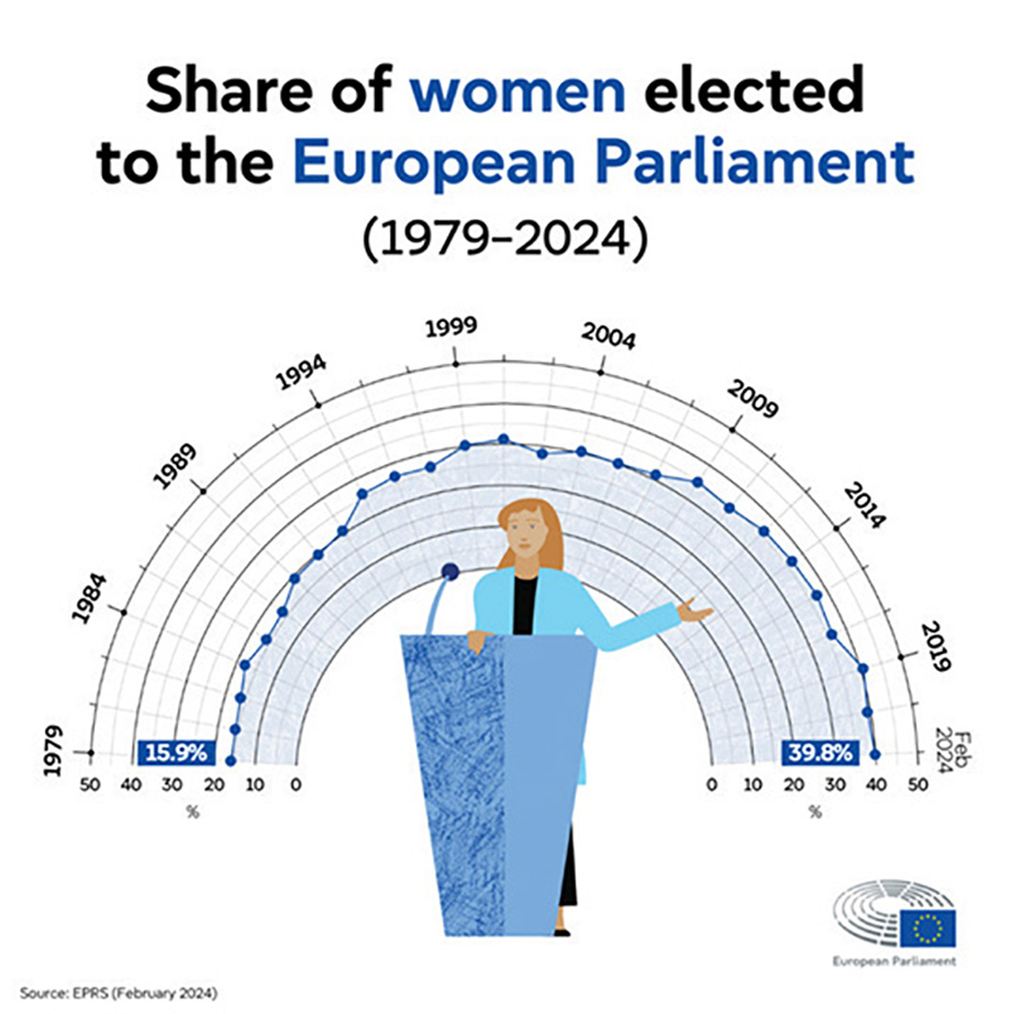 Europos Sąjunga deda daug pastangų siekdama skatinti lyčių lygybę, tačiau situacija yra sudėtingesnė, nei atrodo iš pirmo žvilgsnio – politikoje vis dar ryškus lyčių atotrūkis. Moterys išlieka nepakankamai atstovaujančios įvairiose politinėse institucijose. Pasak Europos Parlamento, 2024 m. vasario mėnesį moterys užėmė 39,9 proc. visų vietų, o tai yra daugiau nei nacionaliniuose parlamentuose valstybių narių lygmeniu (31,6 proc.).