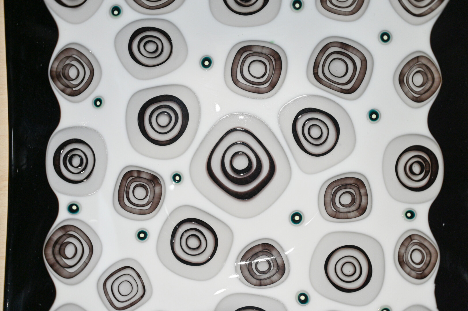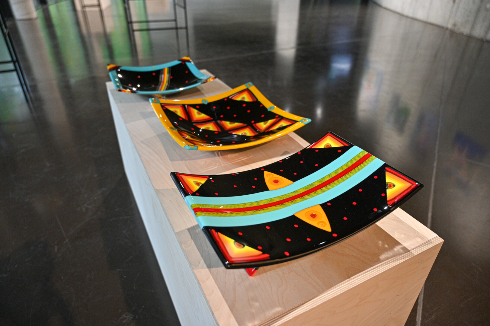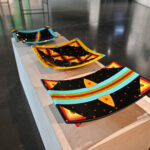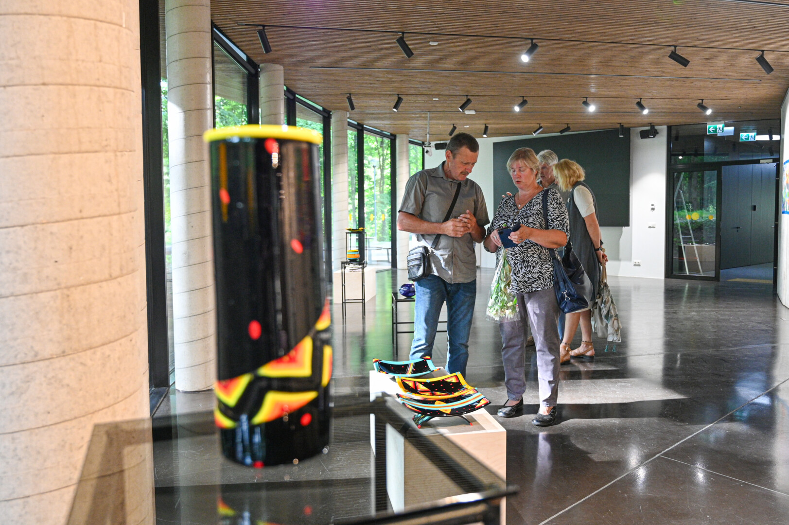 Į parodą atėjusius lankytojus pasitinka itin spalvingi dirbiniai: žaismingos vazos su gėlių akcentais ir smulkiais ornamentais papuoštos elegantiškos lėkštės.
