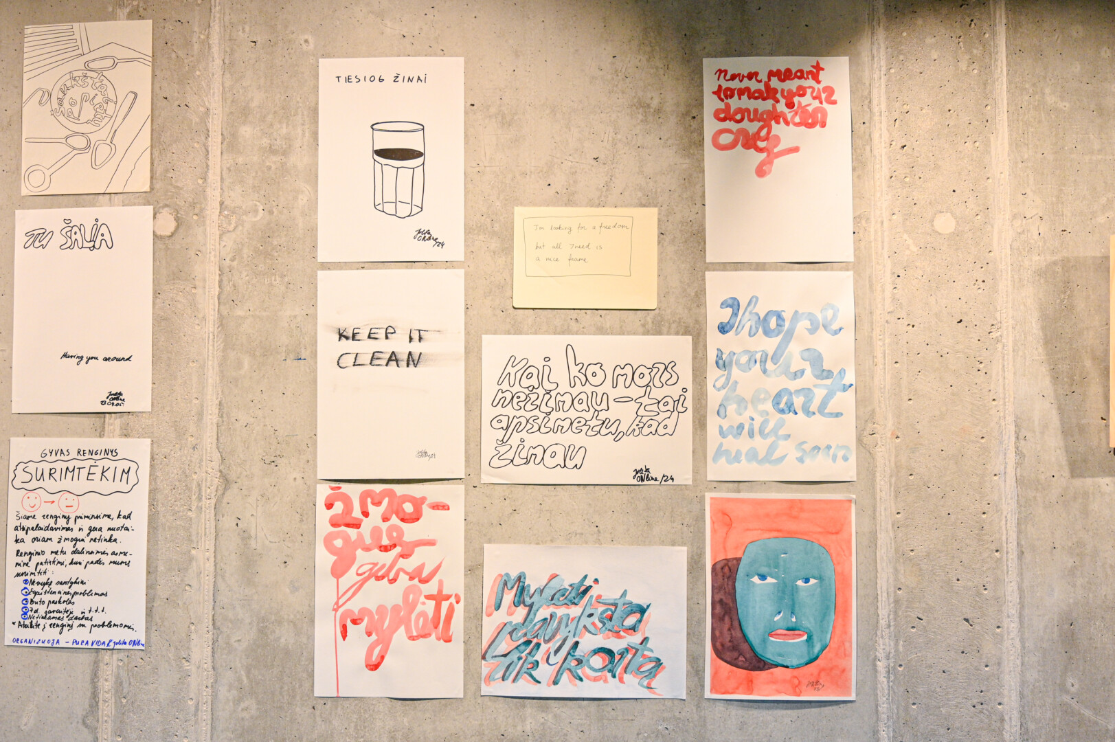 Parodoje pristatomi skirtingi meniniai darbai atskleidžia šio neįprasto dueto vienas kitam pažadėtą kūrybinę laisvę, nė vienam nereikėjo stengtis tilpti nubrėžtuose rėmuose ar parodos temoje. „Norėjau jaustis laisvas kurti tai, ką man norėjosi tą dieną kurti. Kadangi studijoje dažniausiai vienu metu dirbu su keliais stiklo dirbiniais, po sunkesnio ir daugiau kruopštumo pareikalavusio kūrinio man norisi pasirinkti paprastesnį“, – pasakoja Markas.